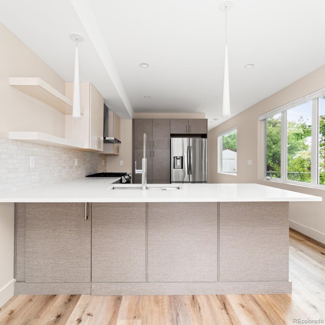 Modern design and exceptional livability come together in this stylish corner-unit townhome, perfectly positioned just moments from Sloan’s Lake and Denver’s favorite local amenities. Inside, an open and airy main level sets the tone for contemporary living, featuring a bright living area anchored by a cozy gas fireplace, a well-appointed kitchen with quartz counters and stainless steel appliances, and a functional mudroom with direct access to the attached garage. A convenient half bath completes the main floor. Upstairs, the primary suite offers a peaceful retreat with generous closet space and refined finishes. A secondary bedroom and an additional full bath provide flexibility for guests, office use, or shared living. The third level expands the home’s versatility with a bright bedroom, full bath, laundry, and a wet bar that enhances the indoor-outdoor flow to the rooftop deck. From here, enjoy sweeping city and mountain views, creating an ideal setting for morning coffee, sunset gatherings, or effortless entertaining. The private basement level adds even more functionality with an additional bedroom, full bath, and second laundry area, creating the perfect setup for guests, roommates, or multi-generational living. Throughout the home, large windows, modern finishes, and thoughtful spatial planning contribute to an elevated yet comfortable lifestyle. Unbeatable proximity adds to the appeal: approximately 0.4 miles to Sloan’s Lake, 0.5 miles to the Perry Light Rail Station, 0.6 miles to retail and dining at Sloans Lake Market, and just 3 miles to Downtown Denver. With its spacious layout, contemporary style, and central location, this residence offers turnkey urban living in one of Denver’s most vibrant corridors.