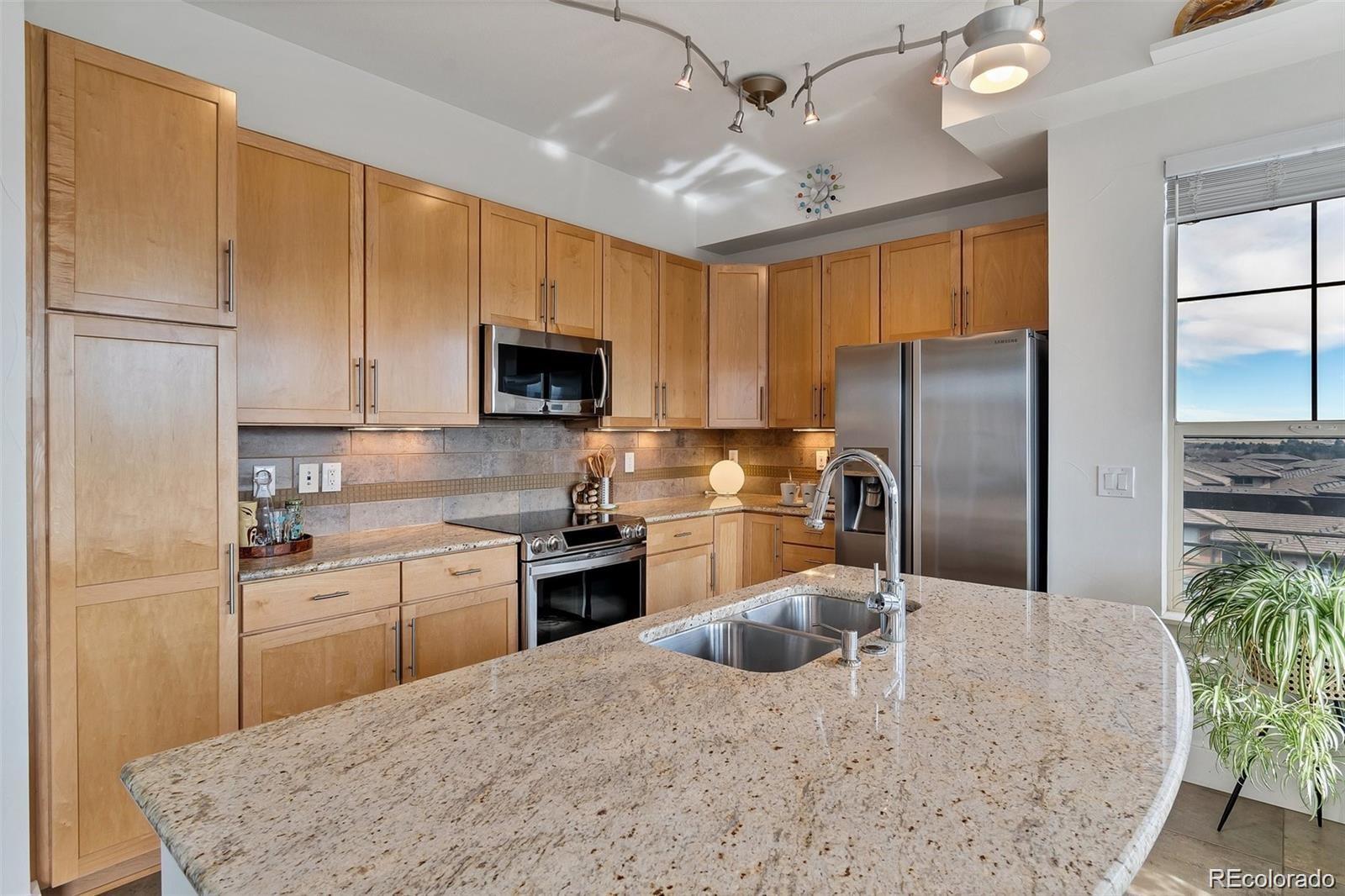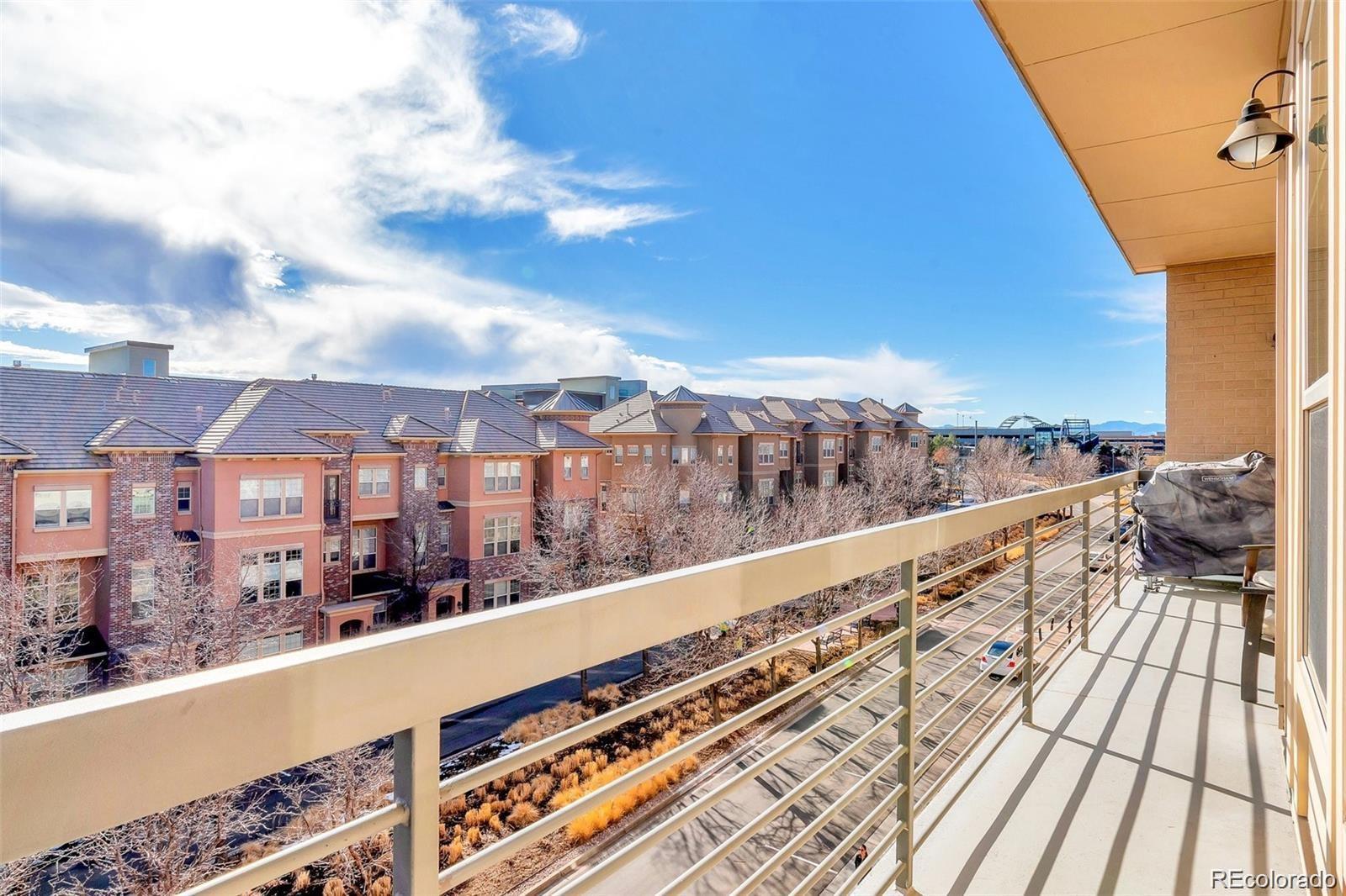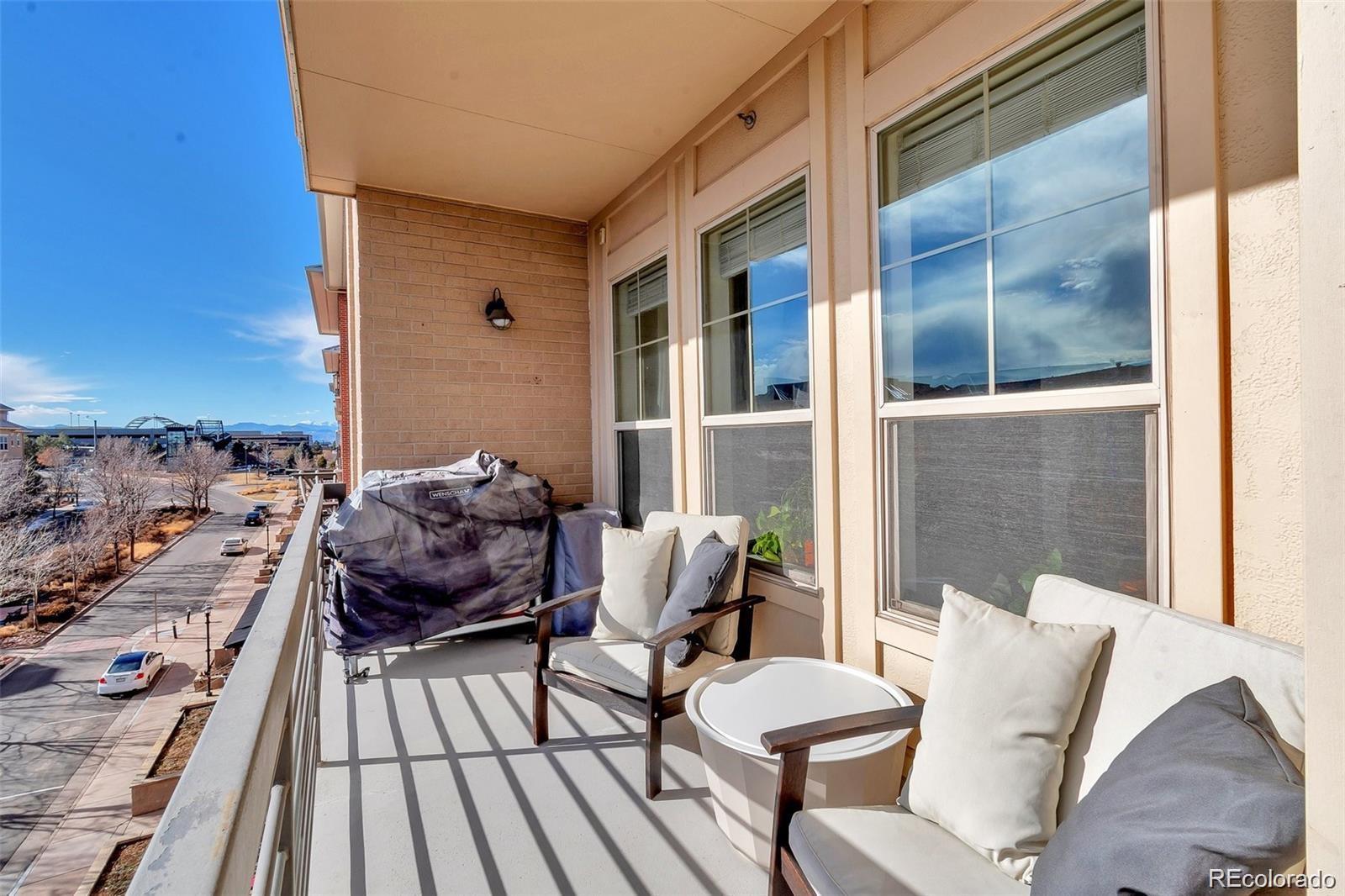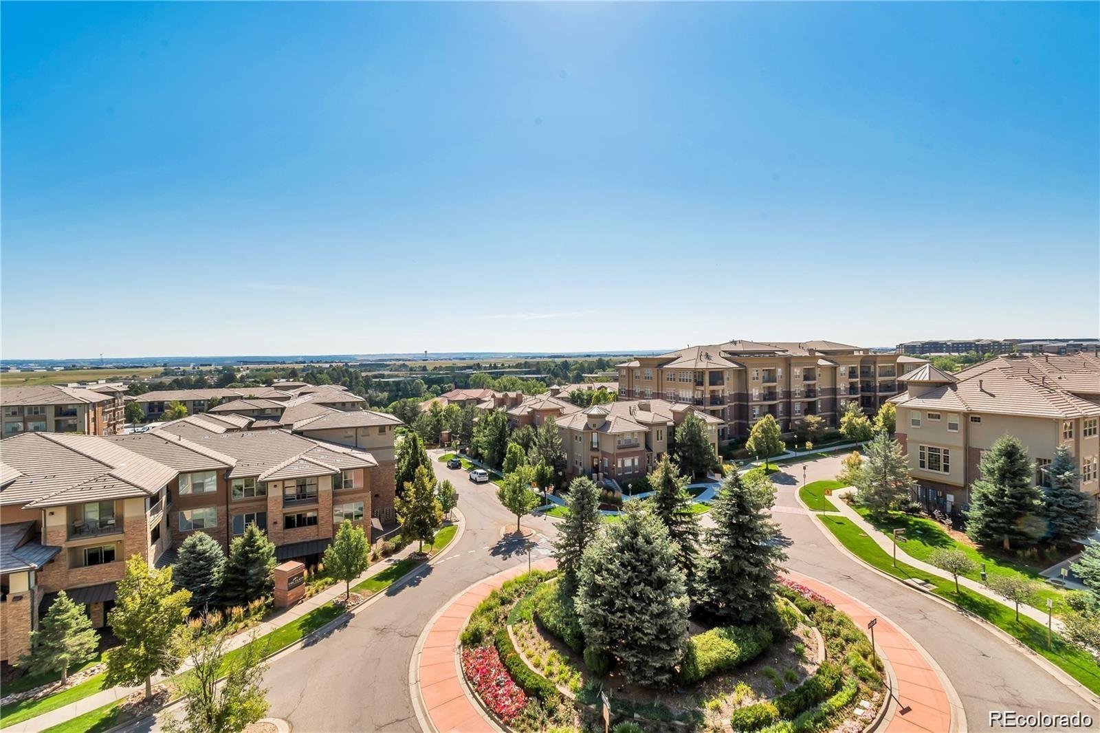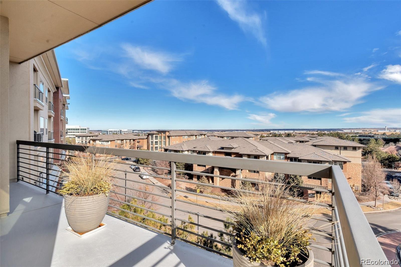UPDATED END UNIT VALLAGIO LOFT — SOUTHEAST CORNER WITH PANORAMIC 270° VIEWS! Enjoy maintenance-free living in the largest of only three units in the building. This spacious 2-bedroom, 2-bath plus den/office home offers single-level living and a private laundry room. The open kitchen features a large center island, 42” cabinets with roll-out drawers, stainless steel appliances, and an updated range, microwave, and dishwasher. Cozy up by the gas fireplace or relax on the expansive wrap-around patio with unbeatable views. Both bedrooms include walk-in closets—don’t miss the extra-large primary suite with a beautiful bath featuring dual sinks. Additional highlights include a custom brick accent wall in the foyer, low utility costs, and secure building entry with two elevators. This home comes with two of the most convenient underground parking spaces (non-tandem) plus four large storage cages. Walk to Dry Creek Light Rail Station, coffee shops, restaurants, yoga, nail salon, and urgent care—all just steps away. Perfectly located in the Inverness/Tech Center area with quick access to I-25. Vallagio residents enjoy optional discounted memberships at Inverness Golf Club (buyer to verify). Experience the vibrant Vallagio lifestyle—this one has it all!