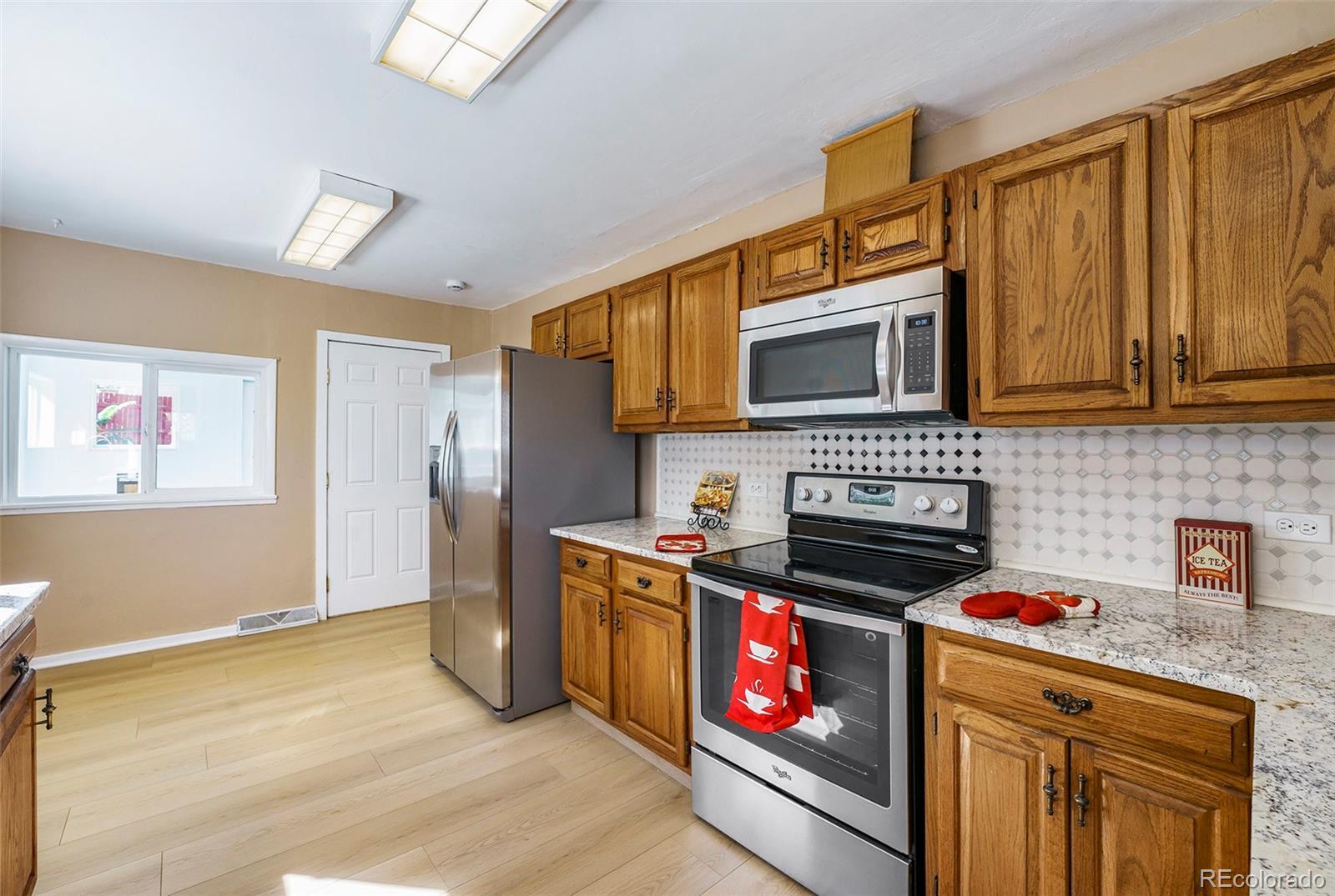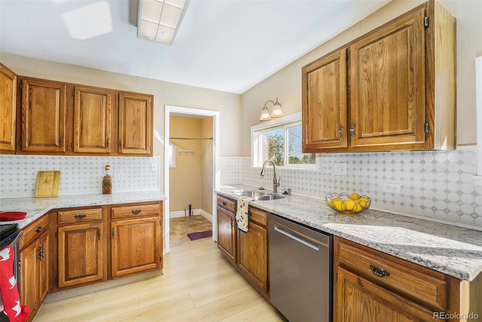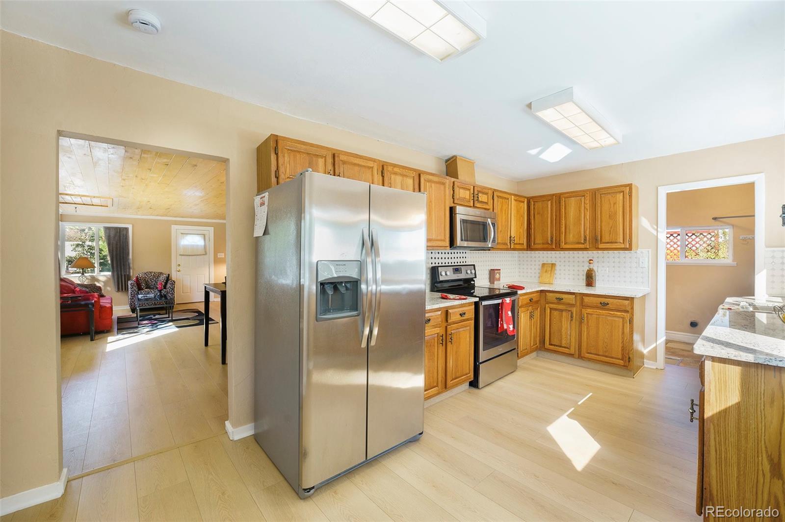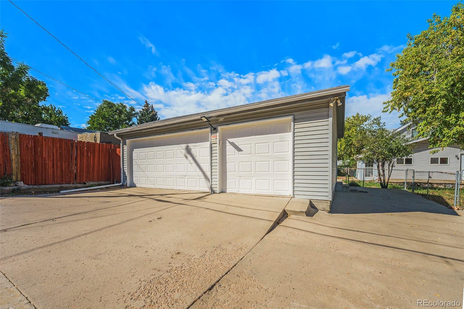 Spacious City Lot with 3-Car Garage and Mountain Views! Looking for extra space in the city? This fantastic 2-story home sits on a generous 1/3-acre lot and features a rare 3-car detached garage—perfect for vehicles, storage, or hobbies. Step into a sun-drenched living room with mountain views, brand new luxury vinyl plank flooring, and fresh interior paint. The main level offers two spacious bedrooms and a full bath, along with an updated kitchen featuring granite countertops, ss appliances and classic wood cabinetry. A convenient laundry area is located just off the kitchen. Upstairs, you’ll find a large third bedroom complete with a walk-in closet—ideal as a primary suite or flexible space. The basement offers a den and a dedicated storage room. Additional highlights include newer vinyl windows, a fenced yard with a dedicated gardening area, extra parking, a storage shed, and of course, the oversized 3-car garage. Centrally located with easy access to 6th Ave, you’re just minutes from downtown Denver or a quick drive to the mountains. Don’t miss this rare opportunity—schedule your private showing today!