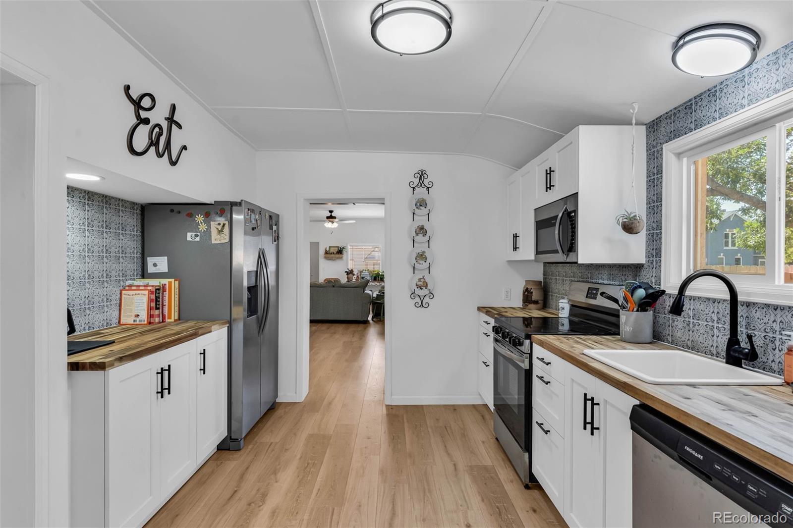Back on market due to Buyer's loan falling through. House is in great shape and inspection report is on file!! This beautifully renovated residence has been thoughtfully redesigned from top to bottom. Offering 1,543 square feet on the main floor, the home features 3 bedrooms, 1.5 bathrooms, a spacious living room, and a dedicated dining area, all laid out in a functional and inviting floorplan you're sure to love. Step inside to find brand-new luxury flooring and updated baseboards throughout, complemented by fresh interior paint and modern window blinds. A brand new furnace ensures year round comfort and energy efficiency. The fully remodeled kitchen is a true highlight, showcasing crisp white cabinetry, butcher block countertops, a vintage inspired tile backsplash, and all new appliances. A designated coffee bar adds both charm and functionality to the space. Both bathrooms have been completely updated with new vanities, toilets, lighting, and flooring. The full bath also features a beautifully tiled tub surround for a clean, modern touch. Even the sewer line has been recently replaced. Beyond the main living spaces, the home offers a dedicated laundry room with a brand-new washer and dryer, a versatile office, and a convenient mudroom with direct access to the backyard. Outside, you’ll find a fully fenced backyard oasis with a new wood privacy fence, lush green lawn, raised garden beds, and a thriving pumpkin patch. The detached garage currently fits one vehicle and includes an extended workshop with newly installed electrical outlets. With a larger garage door, it may be converted to accommodate two vehicles. Ideally located near downtown Canon City and several local schools, this home offers the perfect balance of convenience, privacy, and move-in-ready comfort. Don’t miss your chance to own this beautifully upgraded property. Schedule your private showing today.