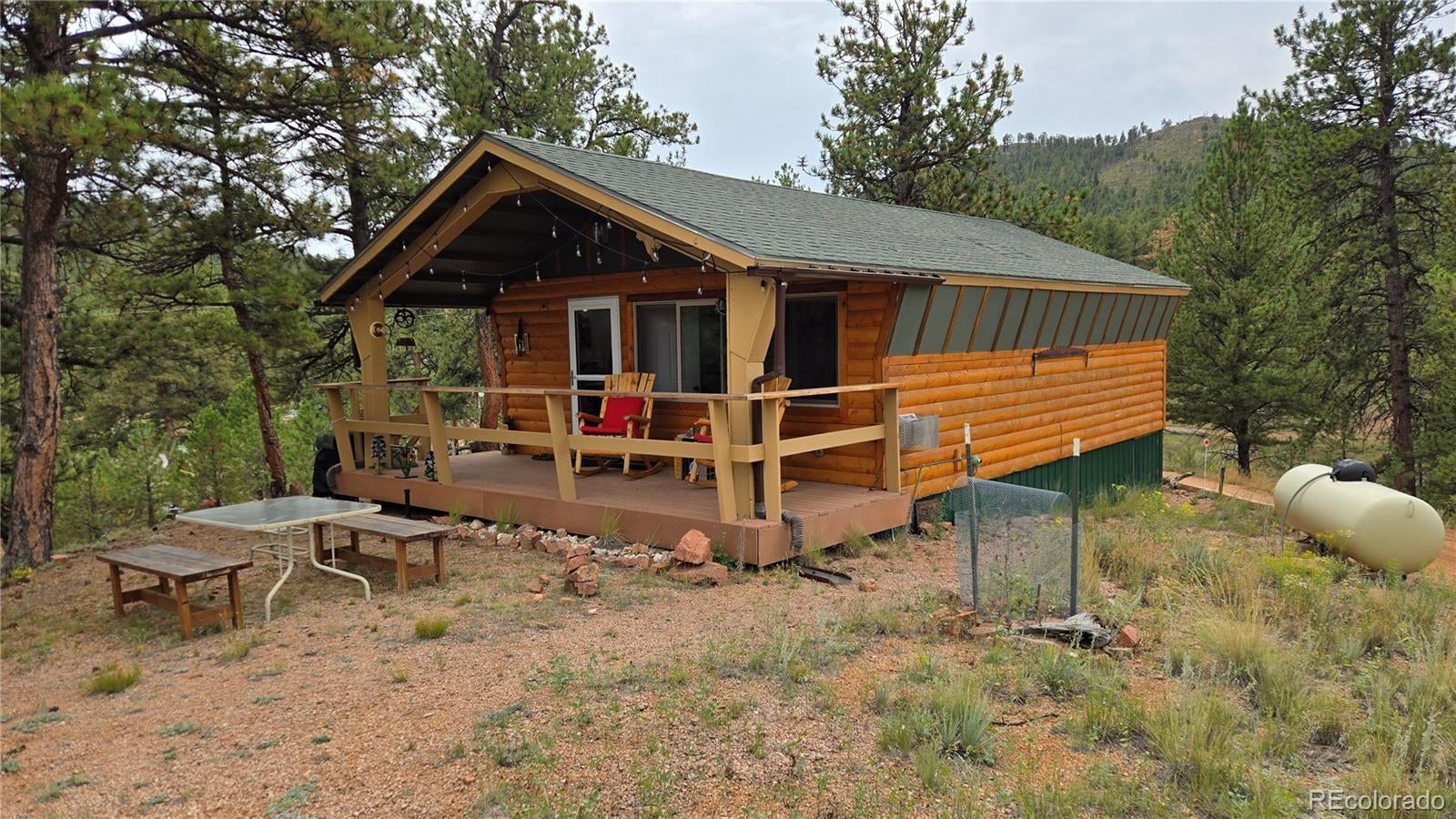 Welcome to Sportsman’s Paradise, a private, gated mountain community where the great outdoors is your backyard. Tucked among the tall pines and natural rock outcroppings of Lake George, this charming 600 sq ft FULLY FURNISHED, log cabin is the ideal getaway for those seeking peace, recreation, and Colorado’s mountain lifestyle. Step inside and immediately feel the warmth and character this cabin offers. With 2 comfortable bedrooms and 1 full bath, there’s plenty of room for family and guests. The vaulted tongue-and-groove ceilings with wood accents create a cozy yet spacious atmosphere. The family room invites you to unwind after a day of fishing or hiking, with big windows framing the forest views and filling the space with natural light. The kitchen has been tastefully updated, blending modern convenience with rustic charm. You’ll find granite countertops, knotty wood cabinetry, updated lighting, and full-size appliances—a true luxury in a cabin setting. The thoughtful layout makes it easy to cook, entertain, or simply gather for a meal at the end of the day. The bathroom features modern finishes, a full tub/shower combination, and efficient use of space. Every detail has been cared for, making this cabin move-in ready and immediately enjoyable. The covered front porch is the highlight of the property—perfect for sipping coffee in the crisp morning air, watching wildlife roam, or gathering with friends at sunset. Residents enjoy private access to some of Colorado’s finest trout fishing on the South Platte, as well as hiking, wildlife viewing, and the pleasure of fresh mountain air. You’re less than 20 minutes to Woodland Park and under an hour from Colorado Springs, easy access to shopping, dining, and services while still enjoying the solitude of a gated mountain retreat. Eleven Mile State Park and Reservoir, Tarryall, and the Florissant Fossil Beds National Monument are all just a short drive away, adding to the endless list of adventures at your doorstep.