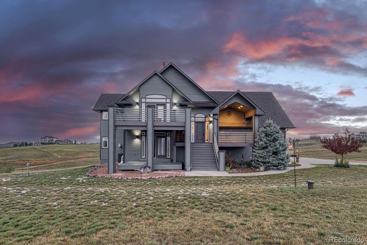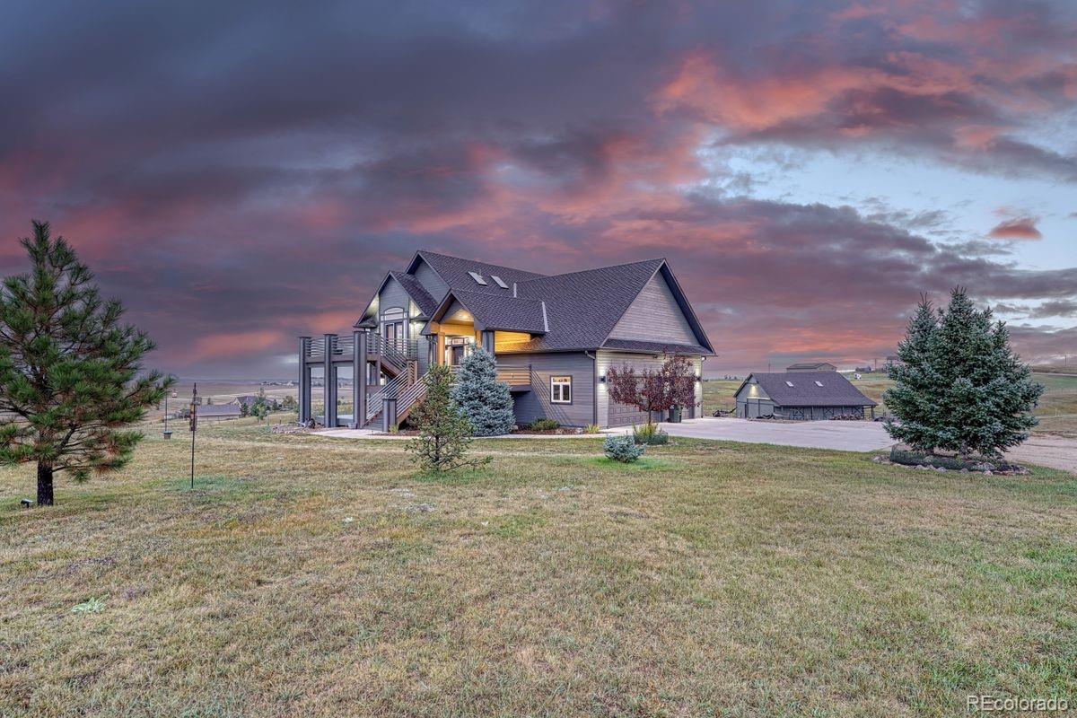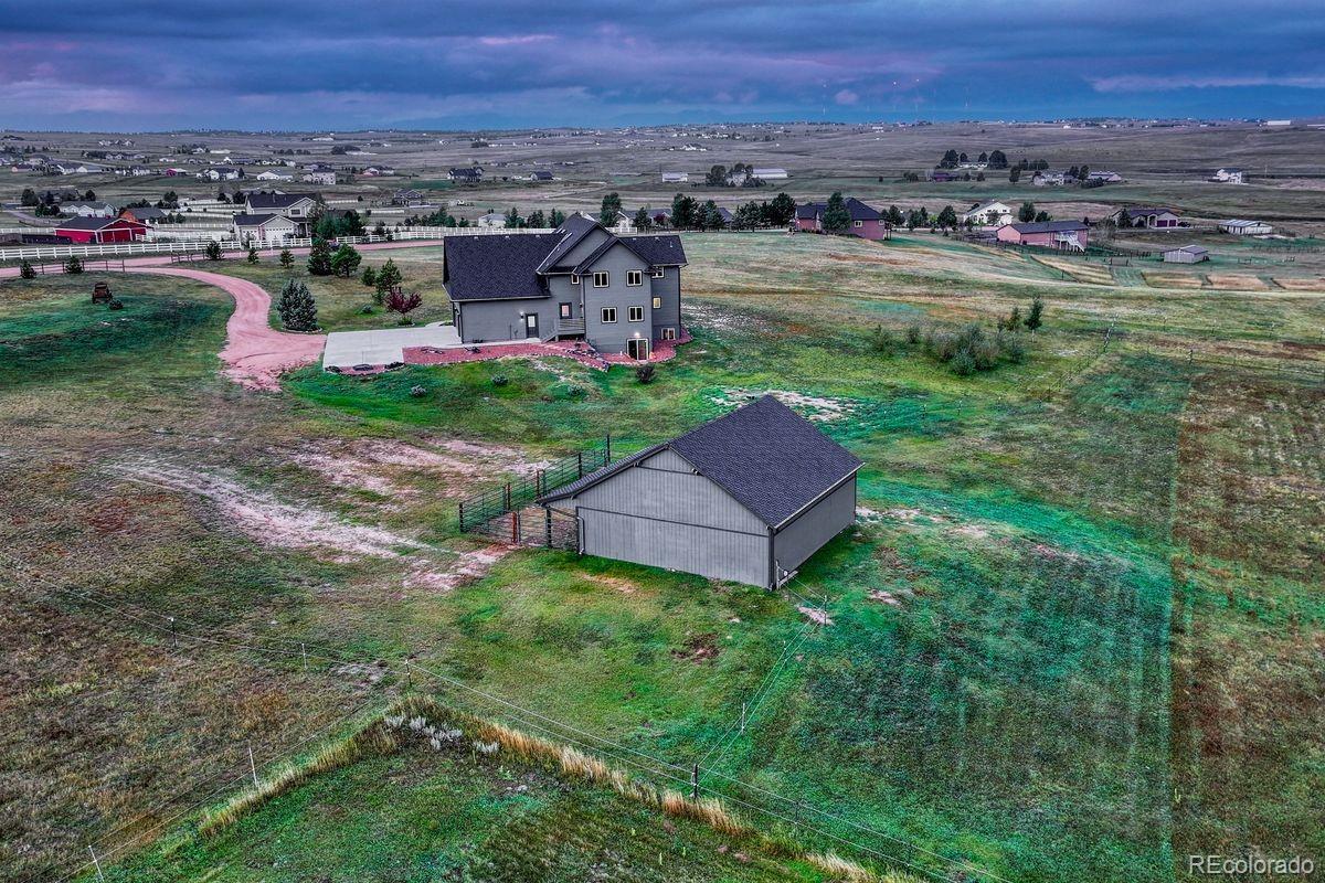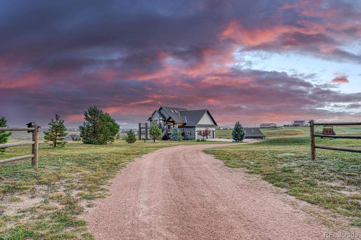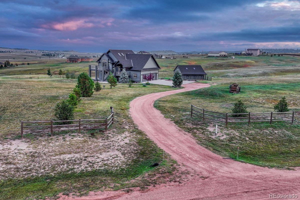 Custom built home with almost 4,000 square feet, spectacular mountain views and a 34x36 barn located in sought after Black Forest and situated on a sprawling 5 acre parcel on a quiet cul-de-sac providing you the perfect blend of privacy and convenience to amenities. Tremendous views of Pikes Peak, the front range and the rolling hillsides of Black Forest perfectly viewed from the multiple outdoor composite decks with metal railings. The home is well cared for and remodeled w/ new 5 ton AC, new furnace, new exterior paint, new composite deck, new 2,500 gallon septic system. 6 bedrooms, 4 bathrooms most bathrooms have heated floors and a 3 car garage. The great room is bright with large windows that perfectly frame Pikes Peak and provide an abundance of natural light. The great room has vaulted ceilings, a gas fireplace w/ stacked stone surround, walk-out to a deck. Open kitchen with granite counters, pendant lighting, a downdraft gas cook-top, shaker cabinets, breakfast bar, pantry, and newer oven and convection microwave. Two ensuite bedrooms. The expansive master bedroom has a private walk-out, a walk-in closet and a 5 piece bath w/ a spacious shower w/ dual showerheads. The lower level family room is styled as a theater room with sound dampening ceiling, black out reclaimed wood shutters with metal accents. Amazing home gym room with tons of space and could be used for multiple purposes including a bedroom. The 34x36 barn has water, electric, 3 Priefert stalls, a hay storage area and tack room. Zoned for horses, allowing you to indulge in your equestrian passions. Class 4 impact resistant 50 year high end roof. The garage is a show piece - it is oversized finished, insulated, painted and has upgraded electrical. Award winning School District 38. Only 45 mins to Denver or 15 mins to Colorado Springs. Fantastic access to I-25 and Highway 83. Commercial marketing video and Matterport virtual tour available.