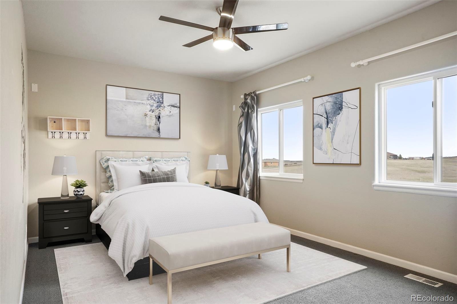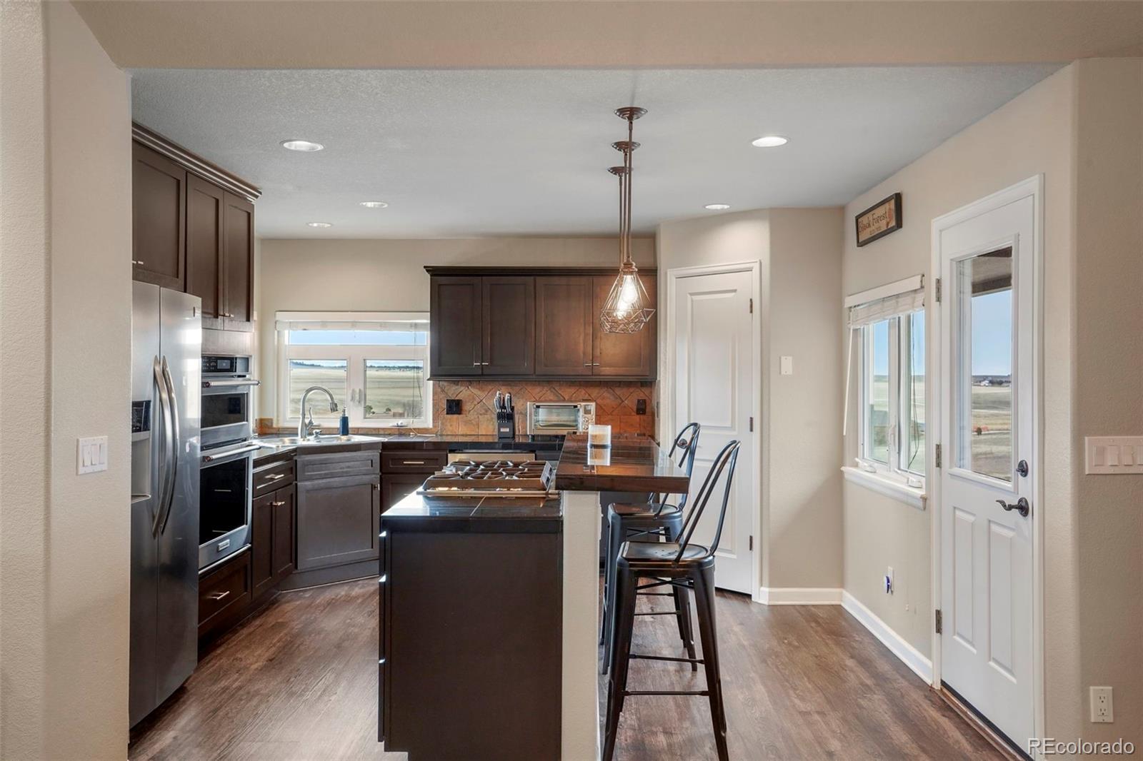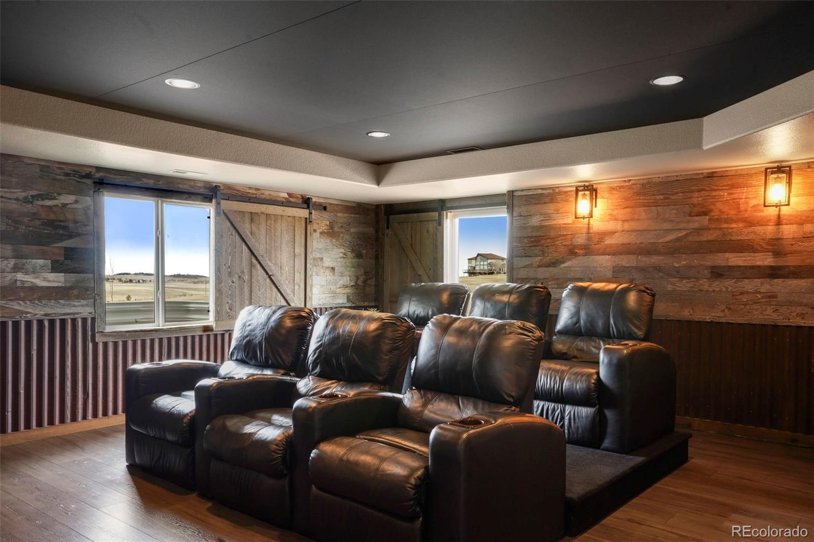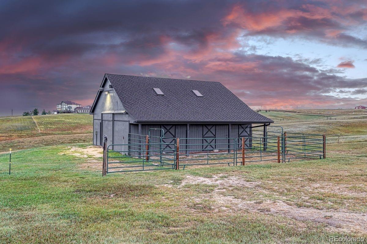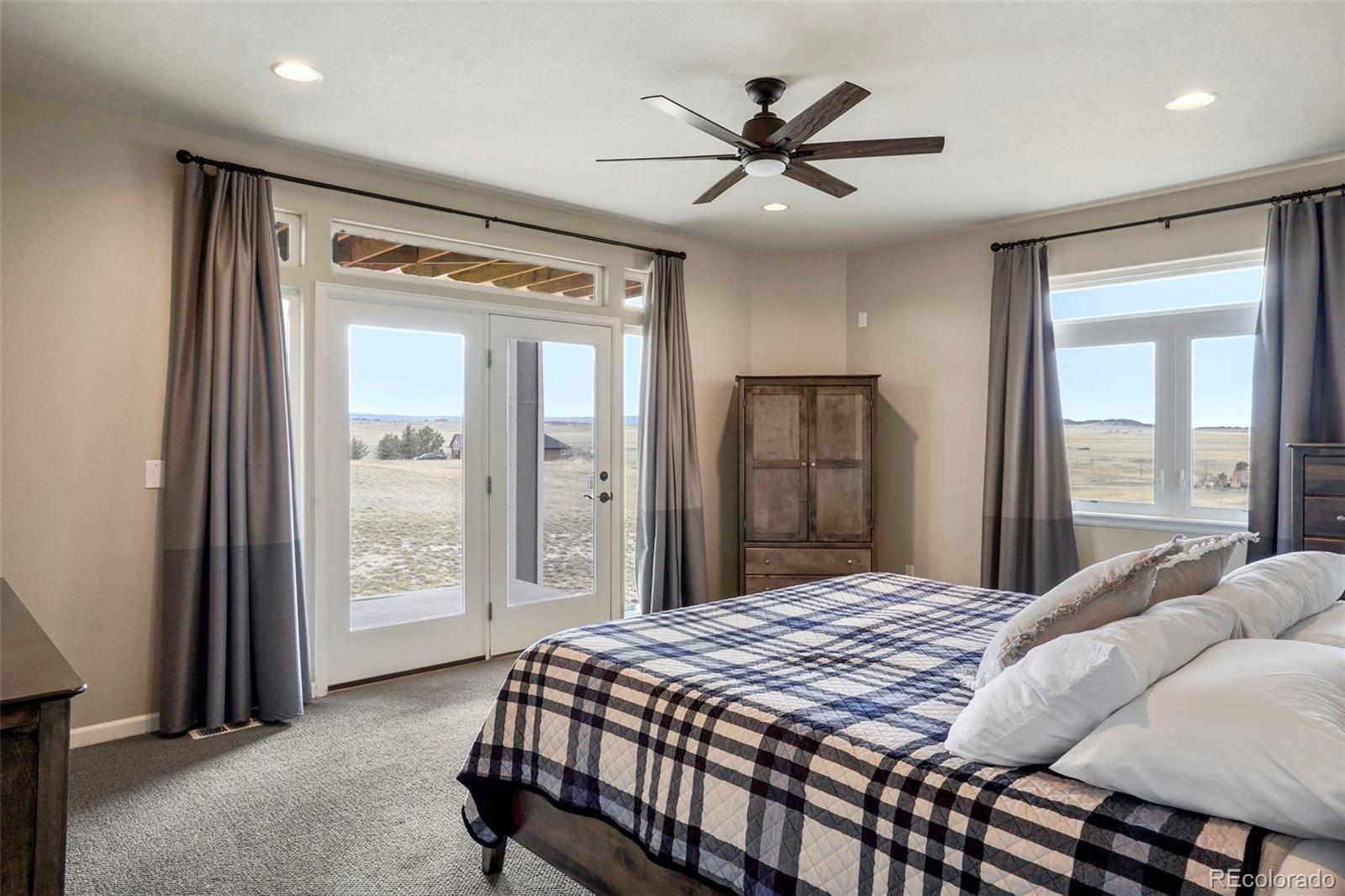 Custom built home with almost 4,000 square feet, spectacular mountain views and a 34x36 barn located in sought after Black Forest and situated on a sprawling 5 acre parcel on a quiet cul-de-sac providing you the perfect blend of privacy and convenience to amenities. Tremendous views of Pikes Peak, the front range and the rolling hillsides of Black Forest perfectly viewed from the multiple outdoor composite decks with metal railings. The home is well cared for and remodeled w/ new 5 ton AC, new furnace, new exterior paint, new composite deck, new 2,500 gallon septic system. 6 bedrooms, 4 bathrooms most bathrooms have heated floors and a 3 car garage. The great room is bright with large windows that perfectly frame Pikes Peak and provide an abundance of natural light. The great room has vaulted ceilings, a gas fireplace w/ stacked stone surround, walk-out to a deck. Open kitchen with granite counters, pendant lighting, a downdraft gas cook-top, shaker cabinets, breakfast bar, pantry, and newer oven and convection microwave. Two ensuite bedrooms. The expansive master bedroom has a private walk-out, a walk-in closet and a 5 piece bath w/ a spacious shower w/ dual showerheads. The lower level family room is styled as a theater room with sound dampening ceiling, black out reclaimed wood shutters with metal accents. Amazing home gym room with tons of space and could be used for multiple purposes including a bedroom. The 34x36 barn has water, electric, 3 Priefert stalls, a hay storage area and tack room. Zoned for horses, allowing you to indulge in your equestrian passions. Class 4 impact resistant 50 year high end roof. The garage is a show piece - it is oversized finished, insulated, painted and has upgraded electrical. Award winning School District 38. Only 45 mins to Denver or 15 mins to Colorado Springs. Fantastic access to I-25 and Highway 83. Commercial marketing video and Matterport virtual tour available.