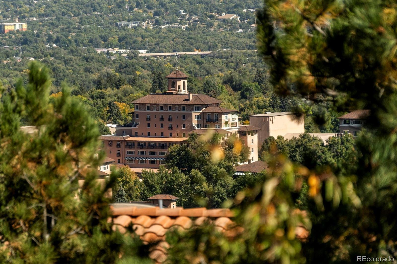 A serene hillside retreat tucked away in the trees just moments from the Broadmoor hotel. This exceptional residence in Broadmoor Heights sits on nearly half an acre, blending indoor comfort and outdoor living. Step outside to expansive outdoor living areas and private gardens, all surrounded by towering pines that embrace the mountain terrain. The open, flowing main level has rich hardwood floors, floor-to-ceiling windows, and a walkout to an expansive deck ideal for entertaining and outdoor living. The primary suite is a true retreat complete with a stone fireplace, dual walk-in closets, and a spa-like bathroom. The chef’s kitchen is outfitted with high-end appliances, custom cabinetry, and two granite islands, and is ideal for hosting or quiet evenings. Main level office with custom built-ins and wraparound windows. Lower-level guest suites with private walk-out access and a media room. Two garages with EV charger and carport, plus an additional free-standing garage or workshop. This 4,189 square foot home is ideal for the buyer seeking privacy, elegance, and a lifestyle anchored in an iconic Broadmoor neighborhood. Buyer has the option to join the Broadmoor Golf Club.