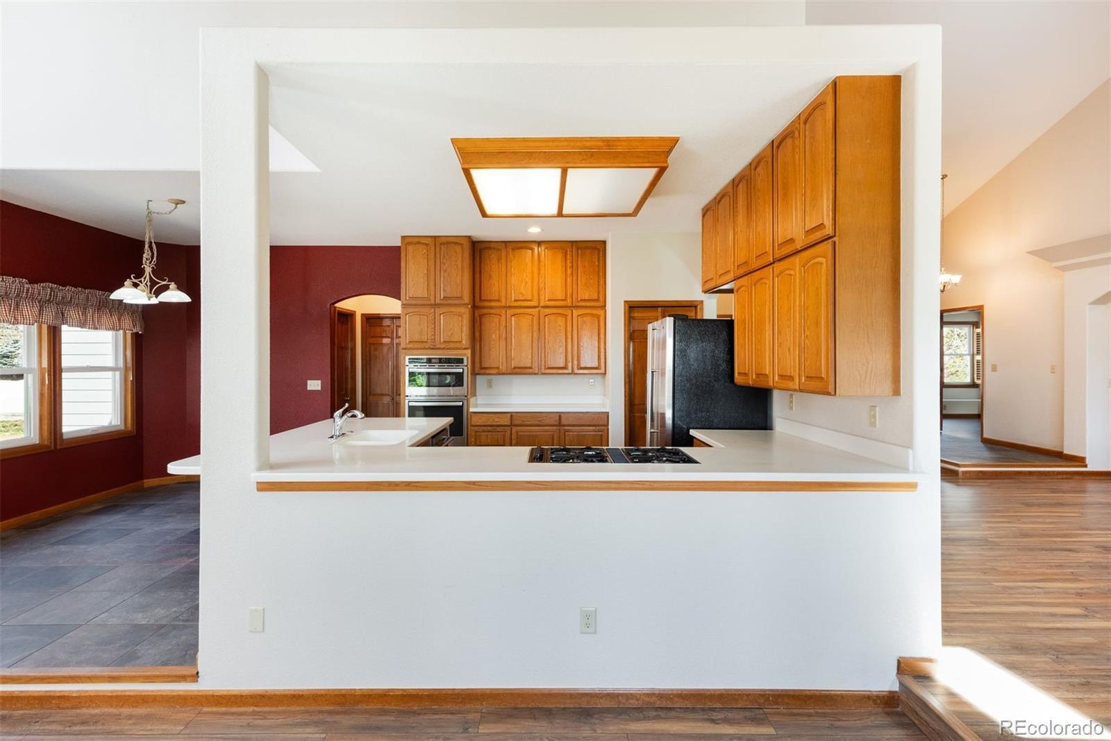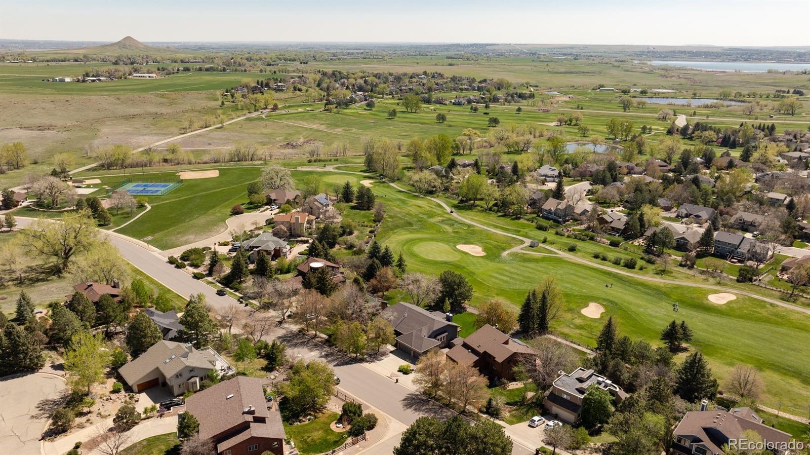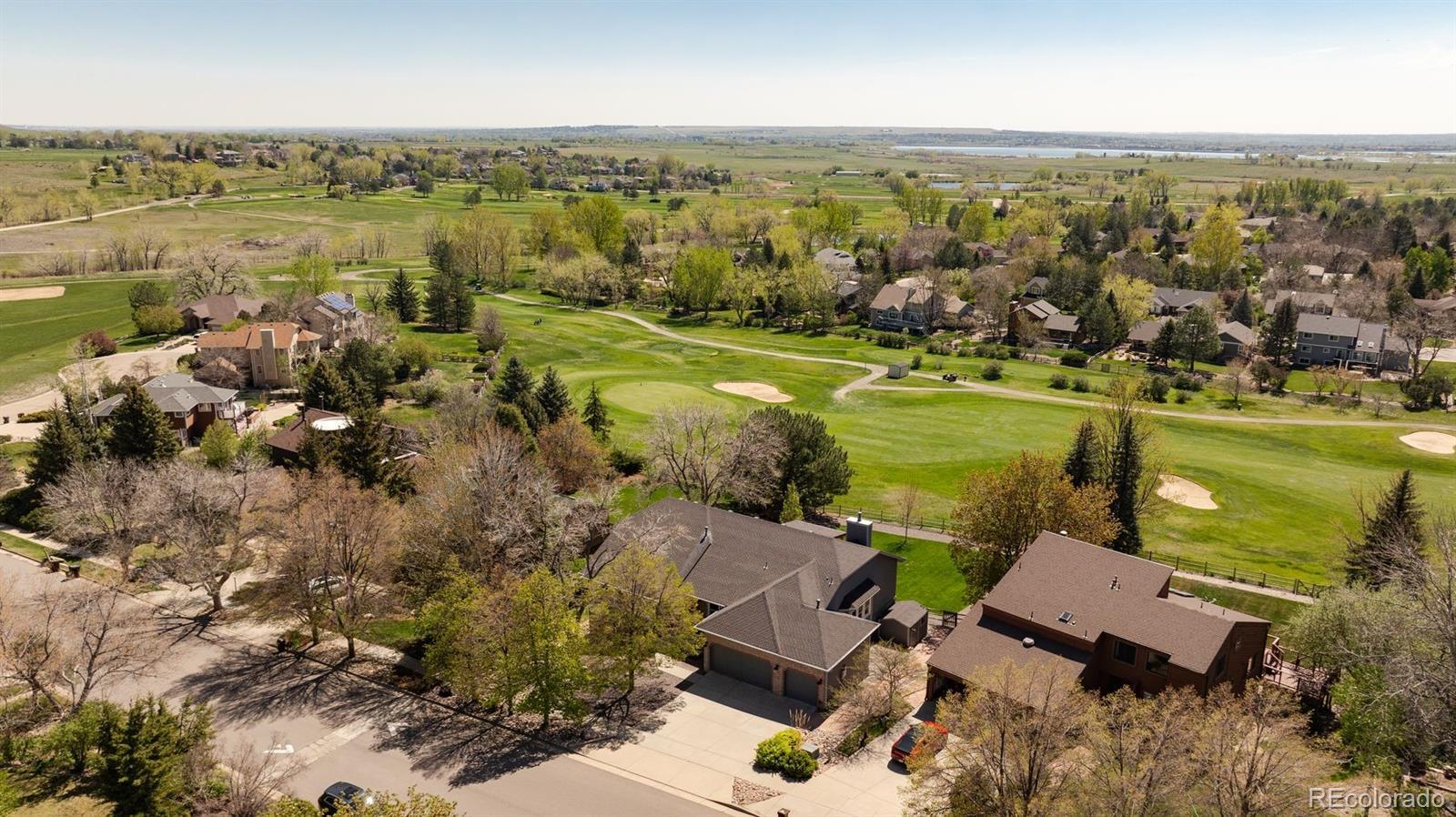 Set along the 6th hole of Lake Valley's private golf course, this 4,948 sq. ft. home sits 0.36-acre lot in one of Longmont's most sought-after communities. With sweeping golf course views, thoughtful updates, and access to top-tier amenities, including a private swimming lake, clubhouse, and tennis courts, this home offers an unparalleled Colorado lifestyle. Step inside to soaring vaulted ceilings & sun-filled living spaces, where updated luxury vinyl tile flooring spans the entire main level. The kitchen features stainless steel appliances & a cozy breakfast nook. Entertain in the formal dining room, or relax by the brick-surround gas fireplace in the living room, where windows frame lush fairway views.The sunroom, a recent addition offers the perfect spot to unwind year-round. From here, step onto a new partially covered deck, ideal for morning coffee or evening gatherings, complete with fan & stairs leading to the backyard.The main level primary suite is a private sanctuary, boasting golf course views, a sitting area, large walk-in closet, and partially updated bathroom with walk-in shower. A guest bedroom with full bath, powder room, dedicated office with built-ins, and a laundry room with utility sink complete the main level. The walk-out lower level offers flexible living with two expansive bedrooms-one en-suite which includes an updated oversized shower & dual-access, gym or flex room, and another with walk-in closet & built-in vanity. A spacious media room with wet bar opens to a patio with hot tub, surrounded by mature landscaping and recent stonework. Additional highlights include a 3-car oversized garage with built-in storage & workbenches, separate storage shed, whole-house custom window treatments, updated HVAC systems, modern lighting, and an upgraded sprinkler system. Recent renovations include a new deck, skylights, LVT flooring, expanded concrete entry, and more-offering a move-in-ready lifestyle in one of Boulder County's premier golf communities.