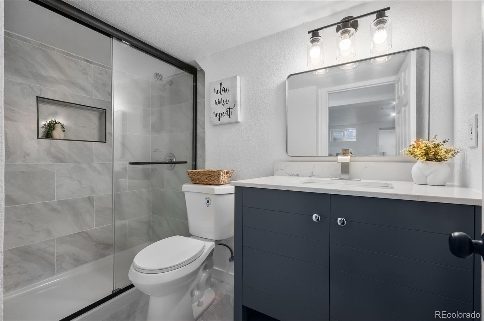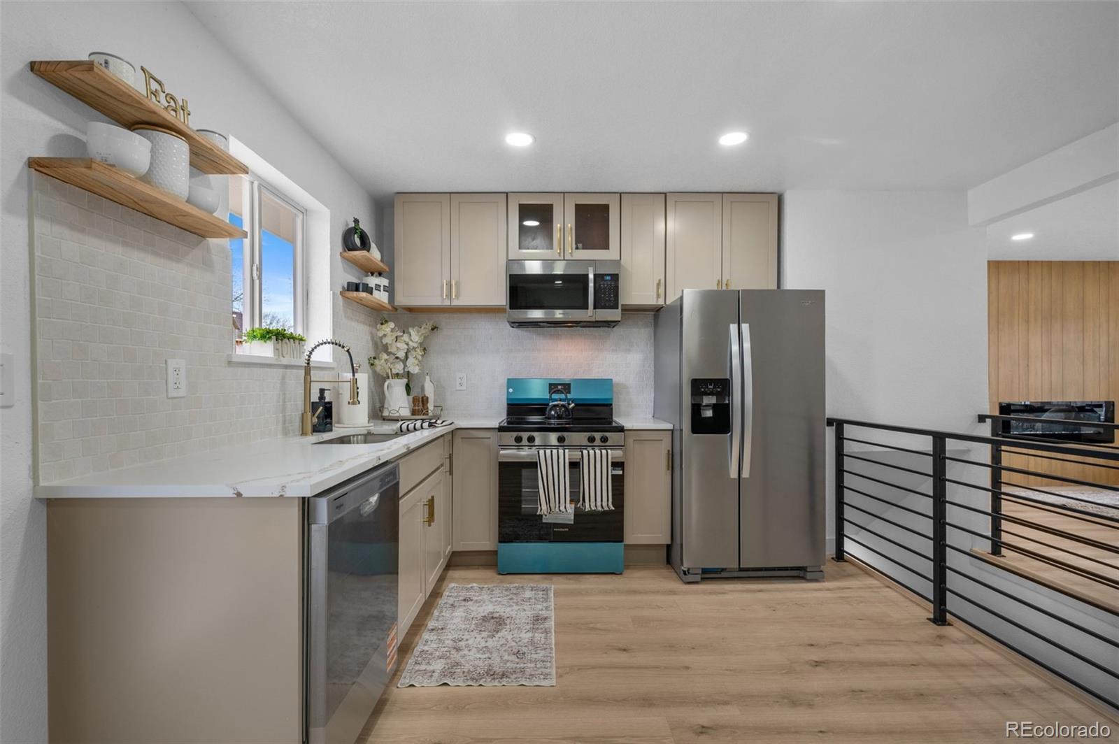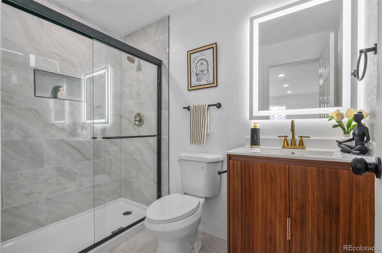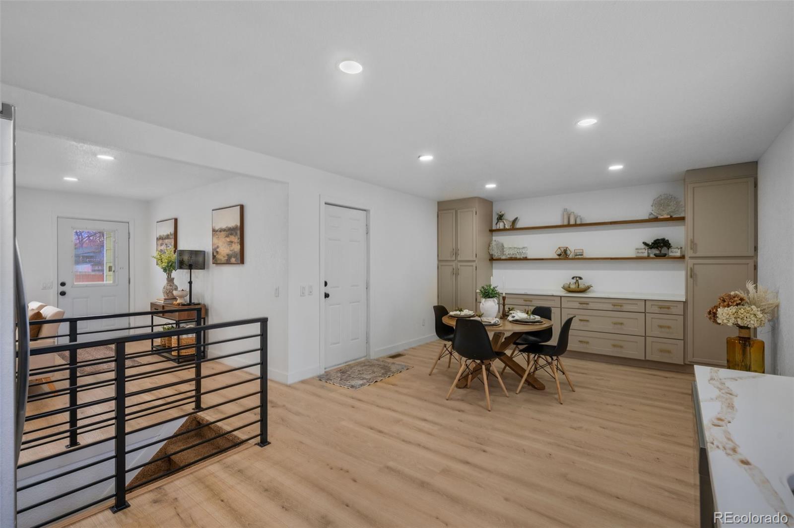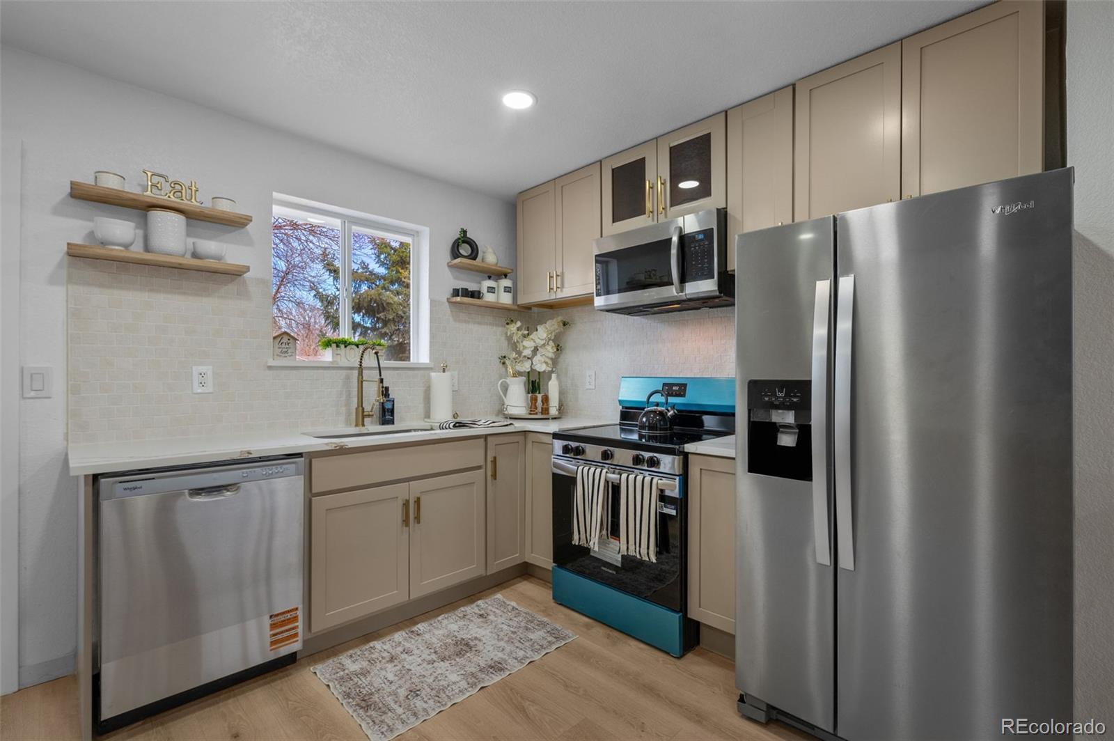 Welcome to this beautifully remodeled ranch-style residence, ideally situated in one of Arvada’s most desirable neighborhoods. Thoughtfully updated throughout, this home offers an open and inviting floor plan highlighted by a custom black metal railing and a sleek, newly installed electric fireplace that anchors the living space with modern elegance. The kitchen has been upgraded with brand-new stainless steel appliances, quartz countertops, and a stylish tiled backsplash—perfect for both everyday living and entertaining. The main-level primary suite provides comfort and privacy with its own beautifully finished en-suite bathroom. Downstairs, the fully finished basement expands the living space with two additional bedrooms, a full bathroom, a spacious family room, and a versatile study or home office—ideal for today’s lifestyle and multi-generational living. Step outside to a newly installed concrete patio and a generous utility shed, offering both outdoor enjoyment and practical storage. Just steps from Trailside Park and playground, this home also provides quick access to Standley Lake, Big Dry Creek Trail, and Lake Arbor Golf Course—placing recreation and nature right at your doorstep. Conveniently located between Denver and Boulder with easy access to US-36, this exceptional home offers a rare combination of space, modern updates, and an active outdoor lifestyle in the highly sought-after 80005 area. Opportunities in Trailside are limited—this is one not to miss.