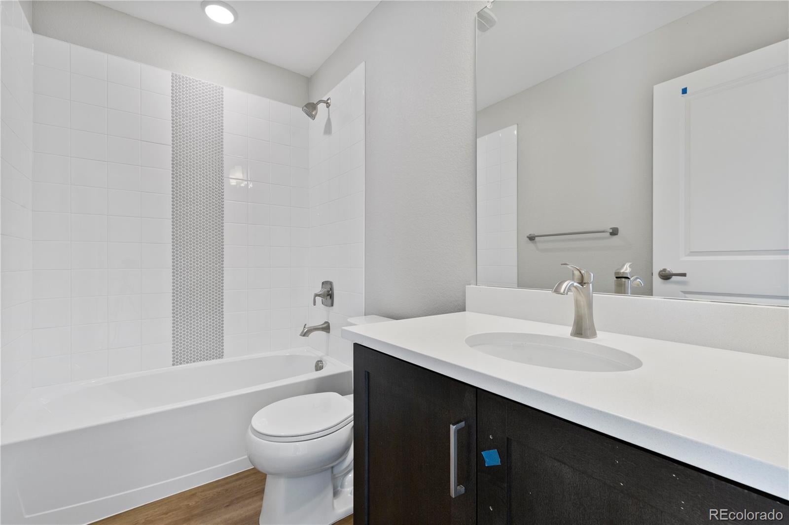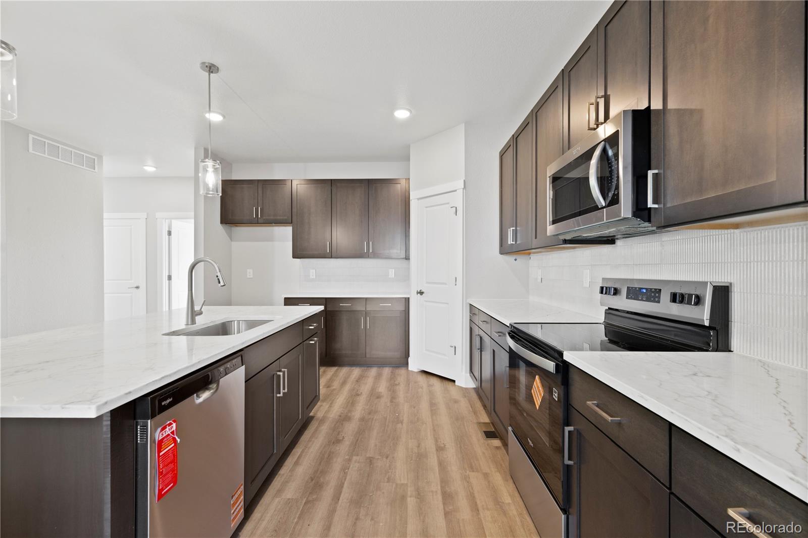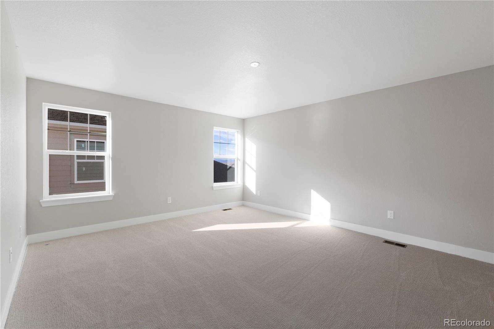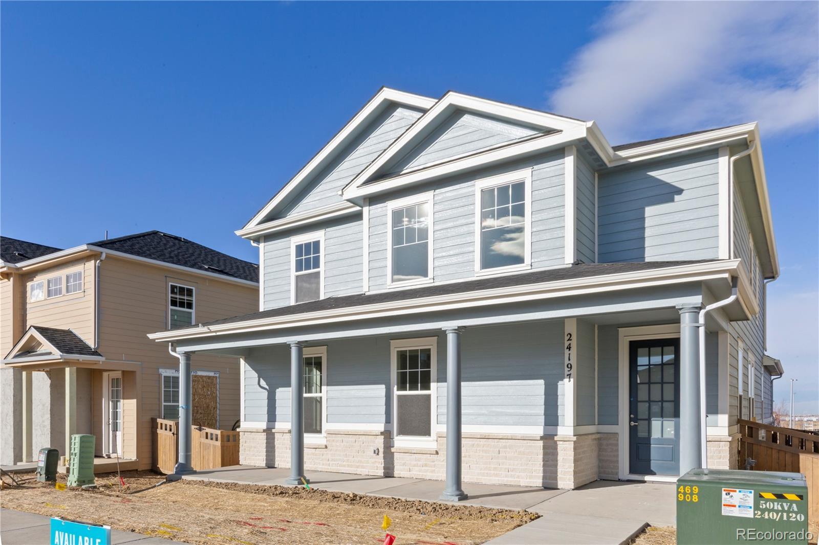 READY NOVEMBER/DECEMBER 2025! COVERED PATIO EXTENDING ALONG FRONT OF HOME - SOUTHERN EXPOSURE! Welcome to 24197 E 53rd Drive, where modern elegance meets functional design in this captivating residence. This home offers three bedrooms and 2.5 bathrooms, all conveniently situated on the upper level for optimal privacy and convenience. As you enter, you're greeted by a stylish study/office space on the main floor, perfect for remote work or quiet contemplation. The main level seamlessly transitions into an open kitchen, casually blending into the dining area and great room, creating an inviting space for gathering and entertaining. A two-car garage provides ample parking and storage space. Upstairs, the laundry room adds to the convenience, while the unfinished basement offers potential for future expansion. Experience modern comfort and personalized living. This flourishing community comes packed with all the amenities including pickleball courts, basketball courts, multiple dog parks and is located just off Pena Blvd, just 5 minutes from DIA.