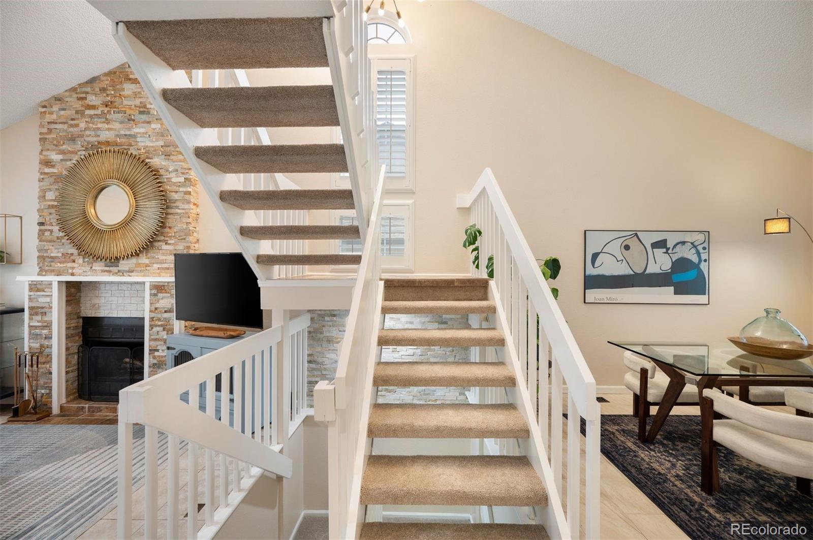 Airy and bright, this fully updated home is walkable to Stott Elementary and only 10 minutes from Olde Town Arvada! Teeming with natural light and spectacular vaulted ceilings, this charmer sits on a prime lot on a sweet block. Inside you'll discover it is fully move-in ready with newer systems, appliances, brand new carpet, updated kitchen, baths, fixtures and finishes. With plantation shutters, three skylights, impressive closet space in every room, and an oversized garage with even more storage, this home has it all. The rare main floor primary suite and large upper bedrooms let this home live large. The unfinished basement boasts a rough-in for another bathroom and is ready for storage or to add finished square footage done as you wish. The fully landscaped and tidy lot has a super private backyard with room to play, entertain, and garden. Don't miss the adorable loft area in the upper bedroom. This home will charm you at every turn. Welcome home!