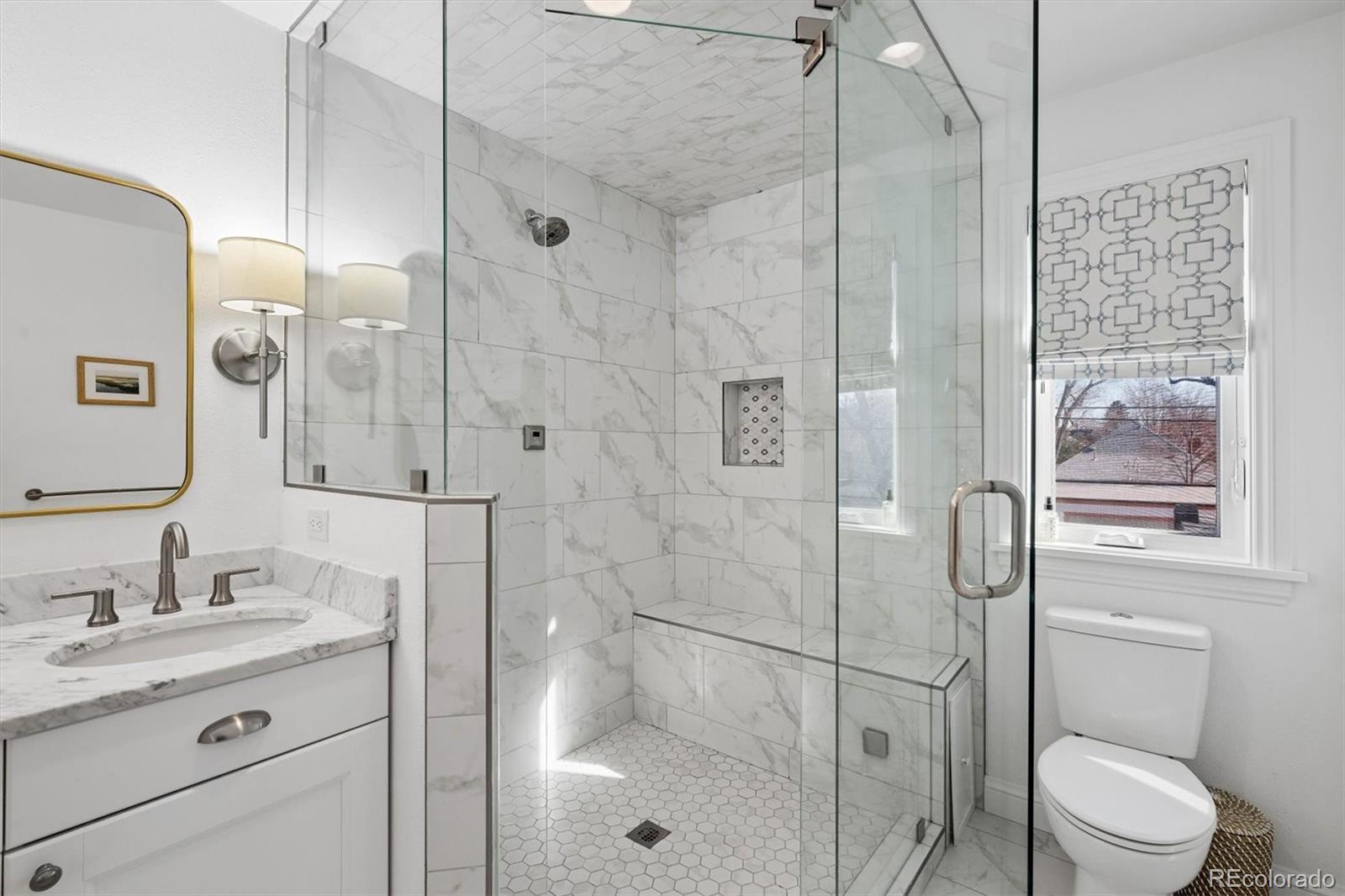 City energy meets classic charm in this West Wash Park bungalow….your opportunity to live right in the heart of urban Denver. Completely reimagined and remodeled in 2020 with modern finishes and features, yet still retains all of the characteristics one would expect from this beloved era. From the moment you step inside, the open-concept layout creates an easy, connected feel between the living, dining, and kitchen spaces—perfect for hosting friends or enjoying a cozy night in. Natural light pours into the cheerful & crisp white kitchen, where a charming sunroom and eat-in counter set the scene for slow mornings with coffee or casual weeknight dinners. The gorgeous primary suite is a true retreat, complete with a generous walk-in closet and a crisp, spa-like bathroom with steam shower - designed for relaxation. Both additional bedrooms feature spacious closets, and the secondary bedroom includes a flexible bonus space ready to become your home office, creative studio, or peaceful reading retreat. Original hardwood floors add warmth and personality throughout, blending timeless character with an easy yet refined vibe. Outside, the generous yard offers room to garden, entertain, or simply soak up Colorado sunshine. A detached one-car garage plus an additional covered carport provide convenient and flexible parking options. Stress-free living with a newer sewer line, newer roof with warranty, new hot water heater and a/c unit! All of this in an unbeatable location—just steps from Wash Park's beloved park, shops, restaurants, and active lifestyle this neighborhood offers, with easy access to public transportation and major highways. This is your opportunity to own a classic Wash Park bungalow - this is urban living in Denver at its best - vibrant, walkable and full of character.