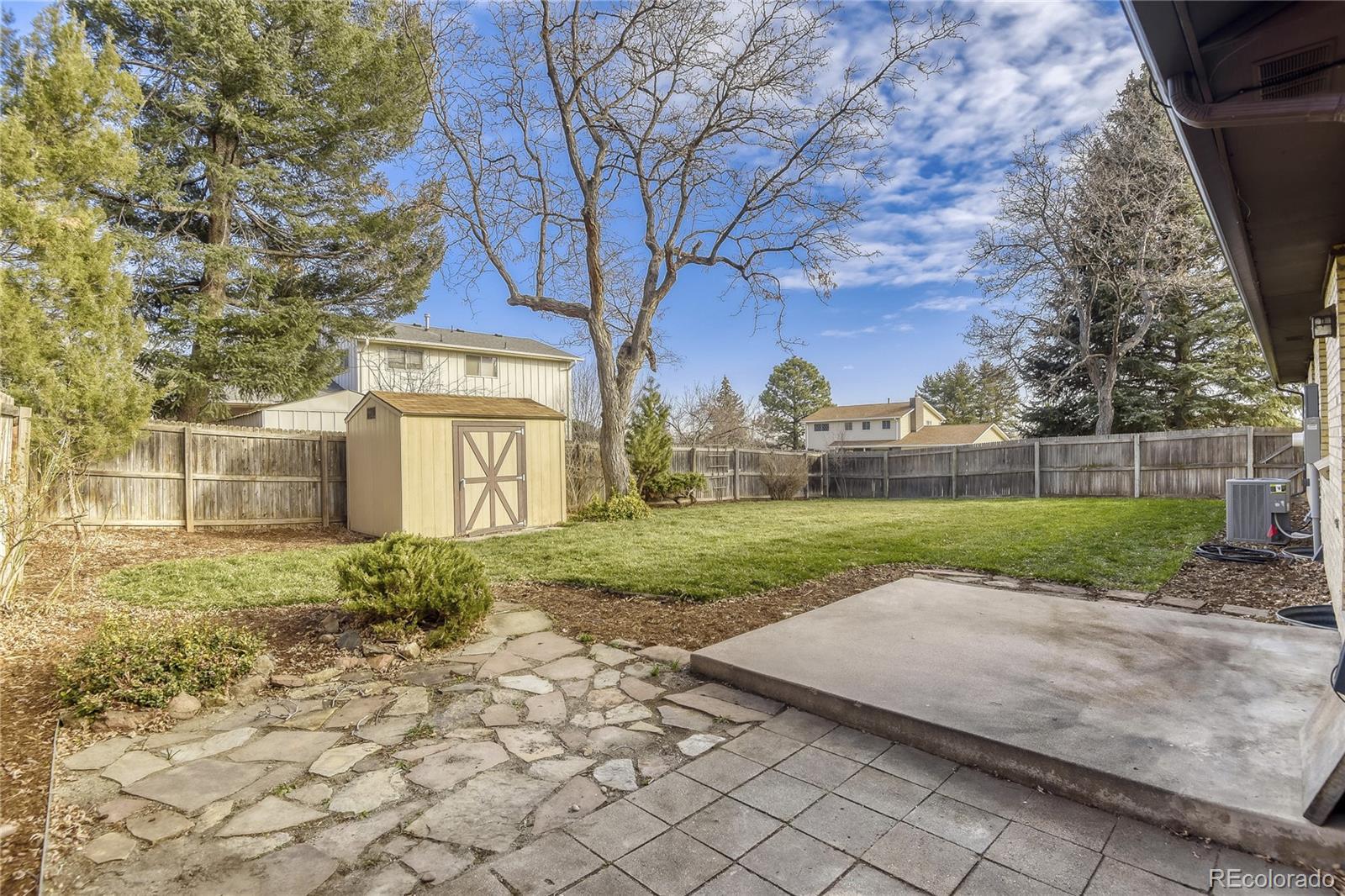 Fabulous introduction to a wonderful neighborhood. Corner lot with southwest sun exposure, this one-level living property is ready to call home. Spacious living room and dining room with generous natural light. Large family room with brick hearth, wood-burning fireplace and sliding glass door to back yard. Three bedrooms and two baths. Fully fenced back yard with storage shed, newly landscaped and new sprinkler system front and back. Updated windows throughout the home, Unfinished basement with laundry and room to build out a great recreation room with storage. Covered front patio to watch the Colorado sunsets. Walking distance to Hodgson Park and close proximity to the Bear Creek Greenbelt. Short driving distance to schools, Carmody Recreation Center, Foothills Ice Arena, Fox Hollow Golf Course, restaurants, shopping and just minutes to the foothills and mountains!