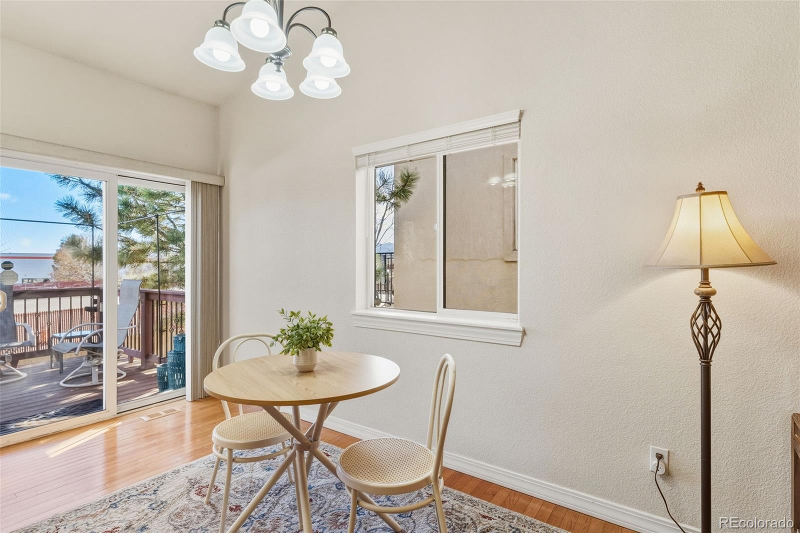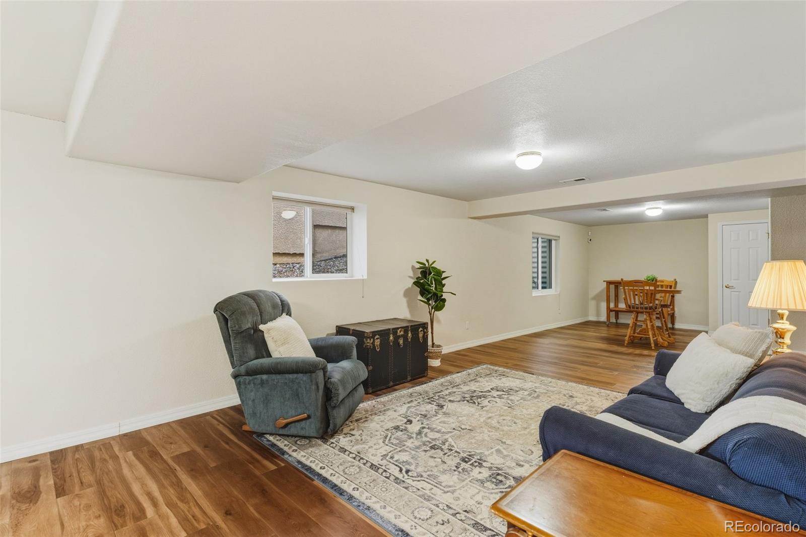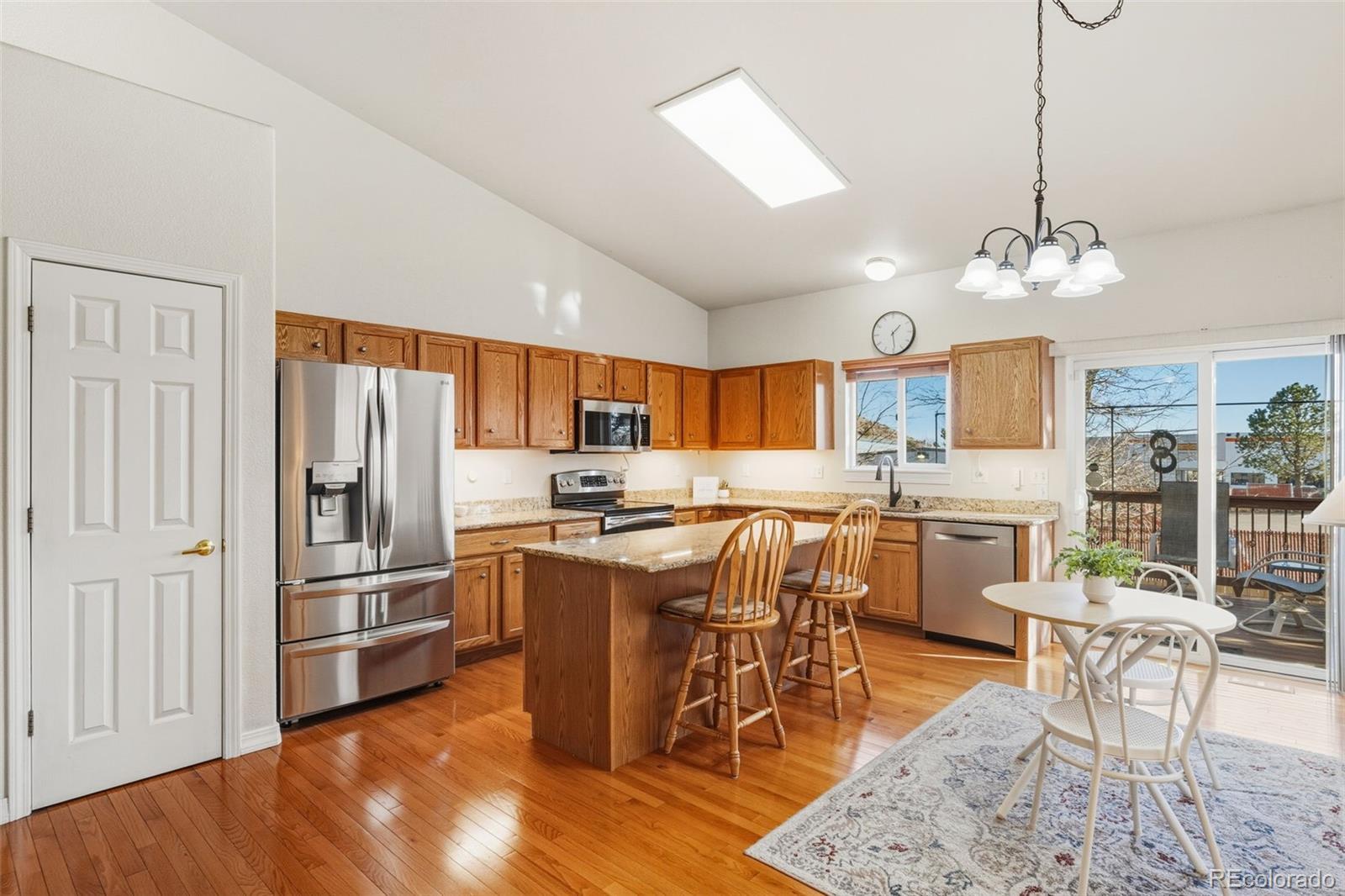 Welcome to this beautifully maintained west-side gem offering true main-level living! Step inside and you’re greeted by soaring vaulted ceilings and rich hardwood flooring that flows throughout the main level. Just off the entry, the inviting living room leads seamlessly into the dining area and updated kitchen, complete with recently purchased stainless steel appliances and granite countertops. The main level continues with a spacious primary suite featuring a luxurious five-piece en suite bathroom, a versatile secondary bedroom or office, an additional full bathroom, and a conveniently located laundry room. Step out from the kitchen onto the expansive back deck—an ideal spot to relax or gather around a fire pit on those crisp Colorado evenings. A 20-foot Sunset awning with remote control adds comfort and shade, and a seasonal privacy panel offers extra coziness during winter months. Downstairs, the fully finished basement is perfect for entertaining, boasting abundant space and beautiful newer laminate flooring. You’ll also find two generous bedrooms and another full bathroom, making it a fantastic retreat for guests. This home has been lovingly cared for and thoughtfully updated, featuring brand-new exterior paint (Nov. 2025), newer luxury vinyl flooring in the basement, hall bath, and laundry room, a whole-house attic fan, a recently replaced garage door, an added electric heater in the garage, under-cabinet kitchen lighting, a built in storage shed below the deck and so much more!