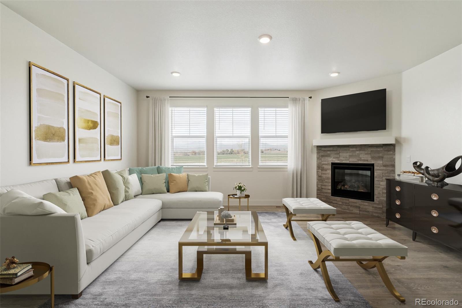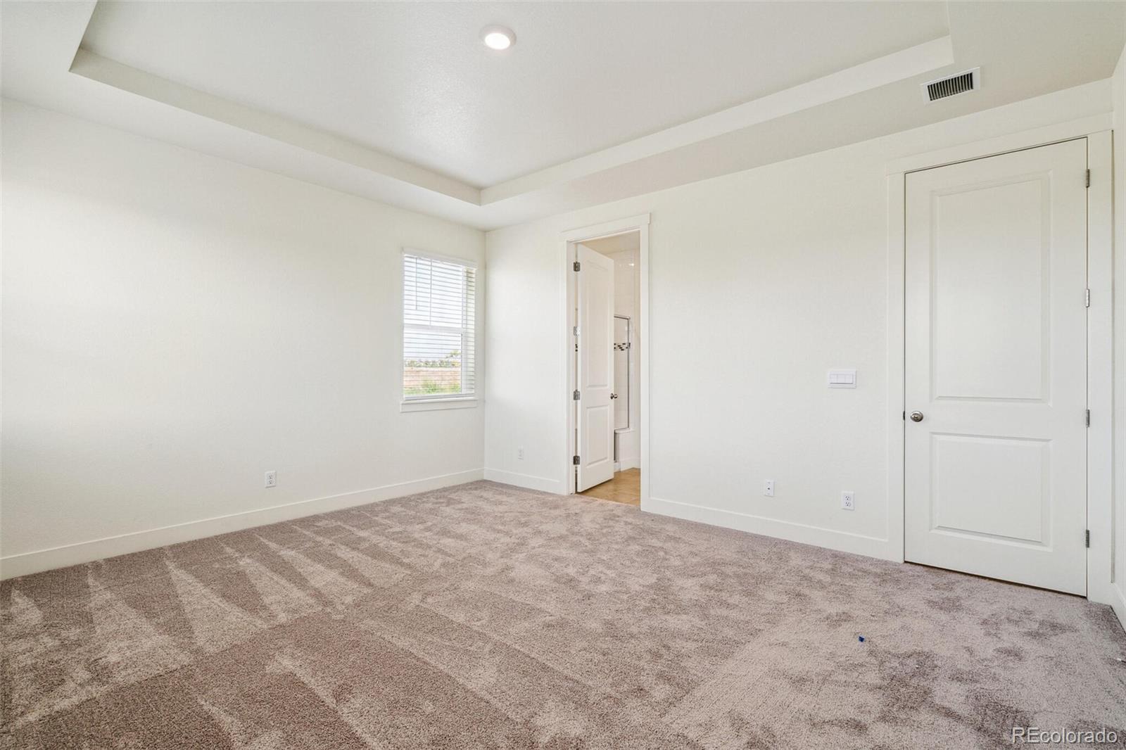 The Grover, a stunning upscale ranch-style home is designed for modern living. This thoughtfully crafted residence boasts 3 bedrooms, 2 bathrooms, and a versatile study, all conveniently located on the main level. The oversized 2.5-car garage offers ample space. Step into the upgraded white gourmet kitchen, featuring premium KitchenAid appliances, a gas cooktop with vent hood, wall oven, pot drawers, and soft-close cabinetry. The expansive quartz island comfortably seats four, while the adjacent dining area is perfect for large gatherings. The great room, anchored by a tiled fireplace, seamlessly connects to the covered patio through a triple slider, creating an inviting indoor-outdoor flow. This home is equipped with smart home features, including Deako light switches, a tankless water heater, and a solar conduit from the basement to the roof. Additional highlights include an unfinished basement, 8-foot doors, active radon system, and a high-efficiency design. The Grover combines luxury, functionality, and sustainability for an exceptional living experience. The Vantage neighborhood includes a unique set of features and amenities such as TPC Colorado privileges including use of their world-class Fitness Center, Resort Style Pool with swim-up bar and hot tub, and restaurants. Use of Vantage Pool, Splashpad, Grilling Area, Playground and 2 Dog Parks in the 5-acre, on-site complex are also included in the HOA. ***Photos are representative and not of actual property***