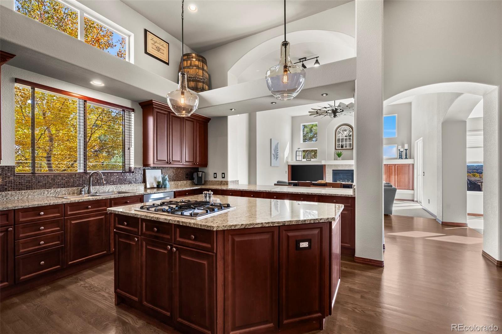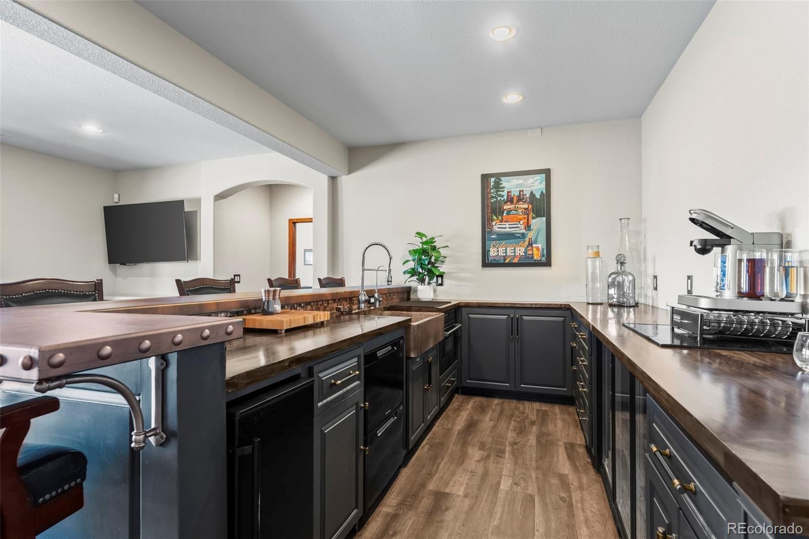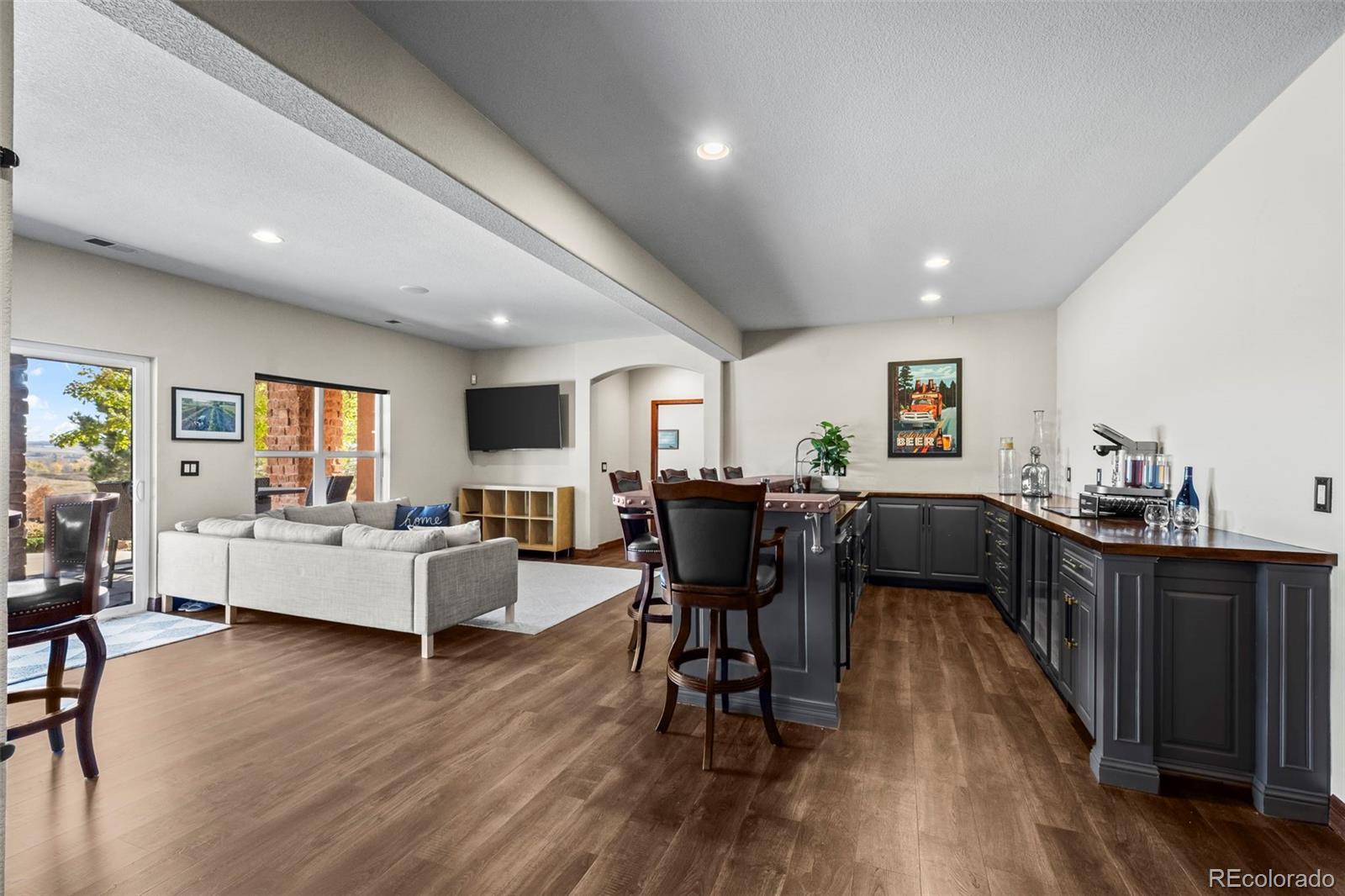 Discover nearly 7000 square feet of thoughtfully designed living spaces in this exceptional 4-bedroom, 4-full bathroom home with/ main floor primary suite and an additional bedroom w/ private en-suite, where upgrades abound. Situated in the highly sought-after Pradera, w/in the only gated neighborhood, Vistancia. Soaring vaulted ceilings welcome you into the formal living room w/ exceptional feature wall and flows perfectly into the oversized dining room, perfect for gathering and entertaining. The kitchen flows seamlessly to the breakfast bar and into a spacious family room with tons of natural light! Access the low-maintenance Trex deck from those rooms or the lovely primary suite to a mind-blowing open space. Plenty of space in the primary bedroom w/ high coffered ceiling. Behind the French doors is a designated office space ready for your touch. Head downstairs to the walk-out basement, where entertaining is beyond elevated. A custom-made bar with handcrafted cabinetry, copper sink, dishwasher, convection microwave, ice maker, and commercial cooler gives other man caves a bad name. It can also add the multigenerational aspect to this spectacular space. The two additional bedrooms don't feel like guest rooms; they are large and have walk-in closets, one even has another en-suite! Don't forget to check out the coffee bar and speakeasy under the stairs and behind the fireplace with two beer taps. Outdoor spaces are also customized and boast several mature trees for privacy. You must see it to believe it, too many custom upgrades to include. Behind the finished portion of the basement is another 1000 square feet of storage or additional living space/possibilities. This is truly a one-of-a-kind property!