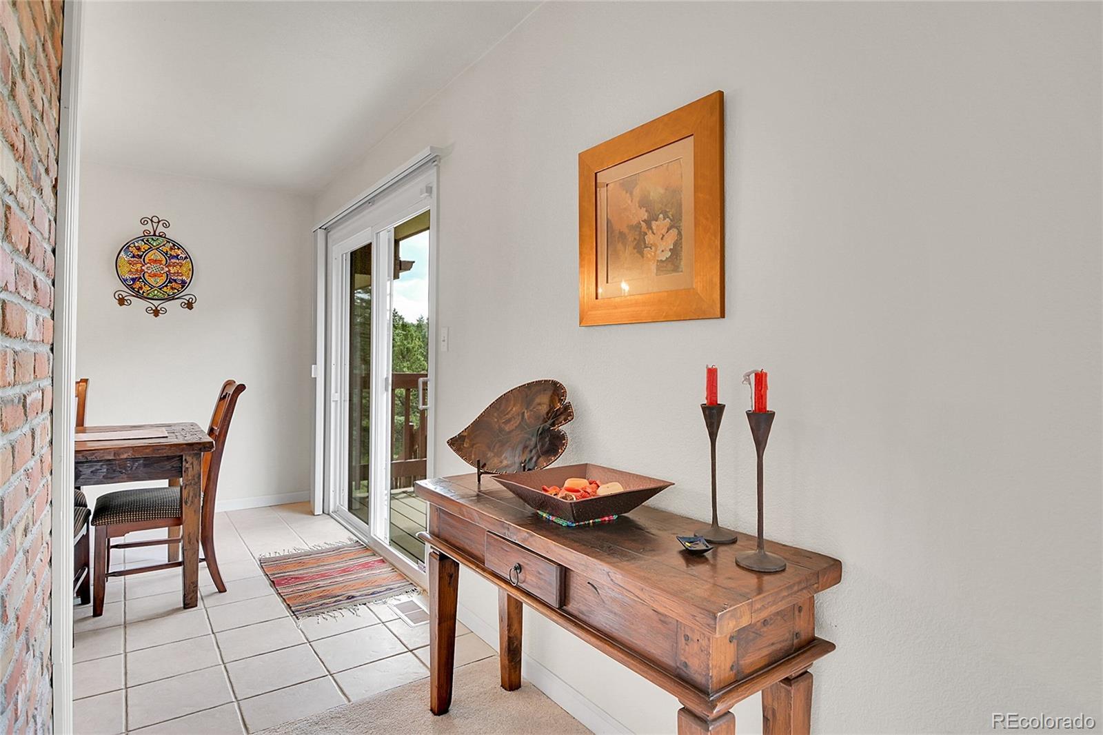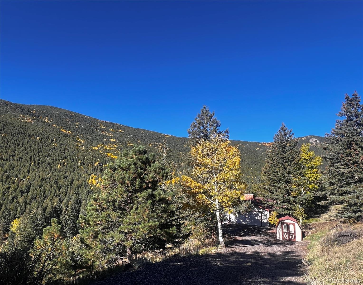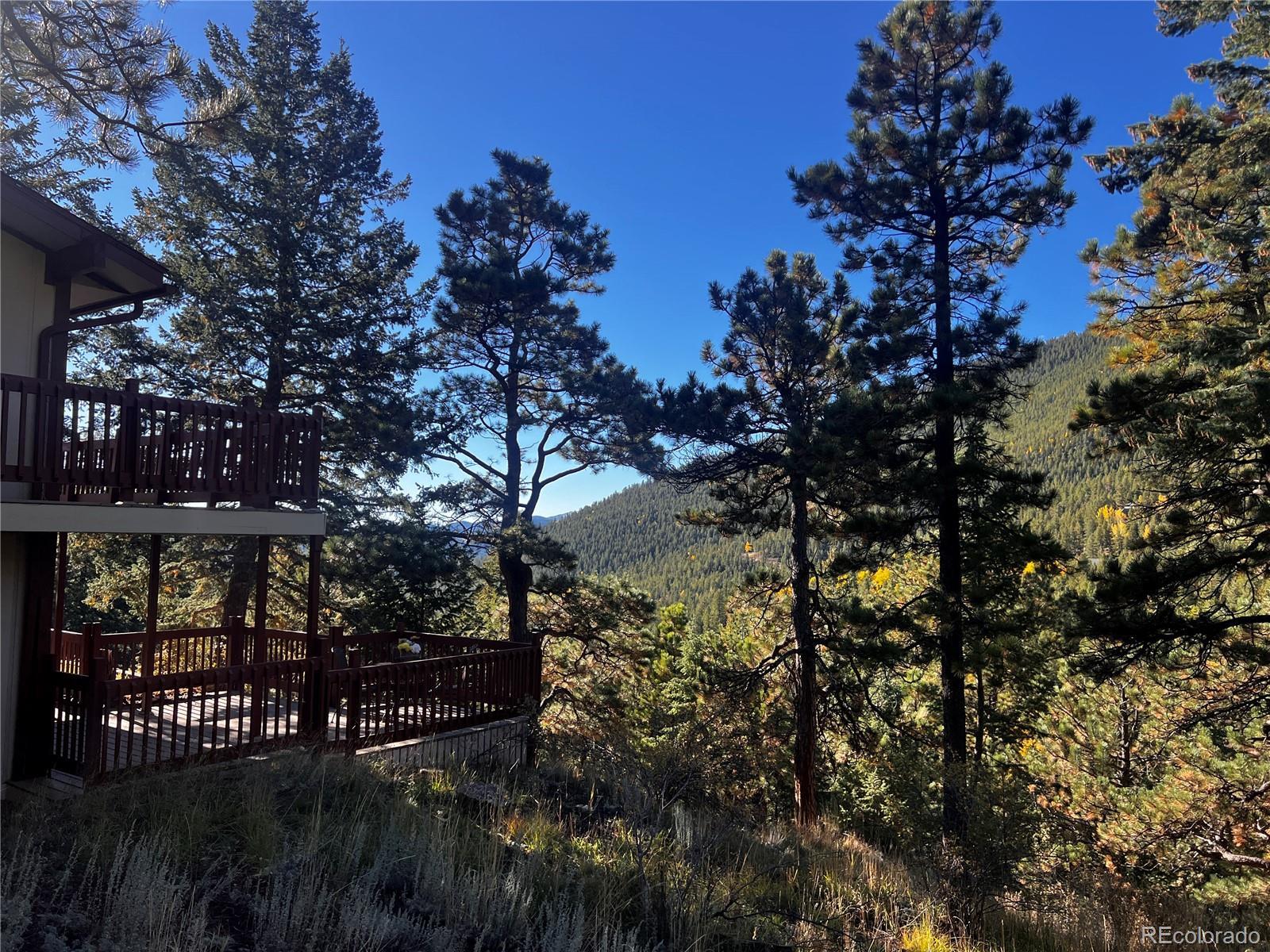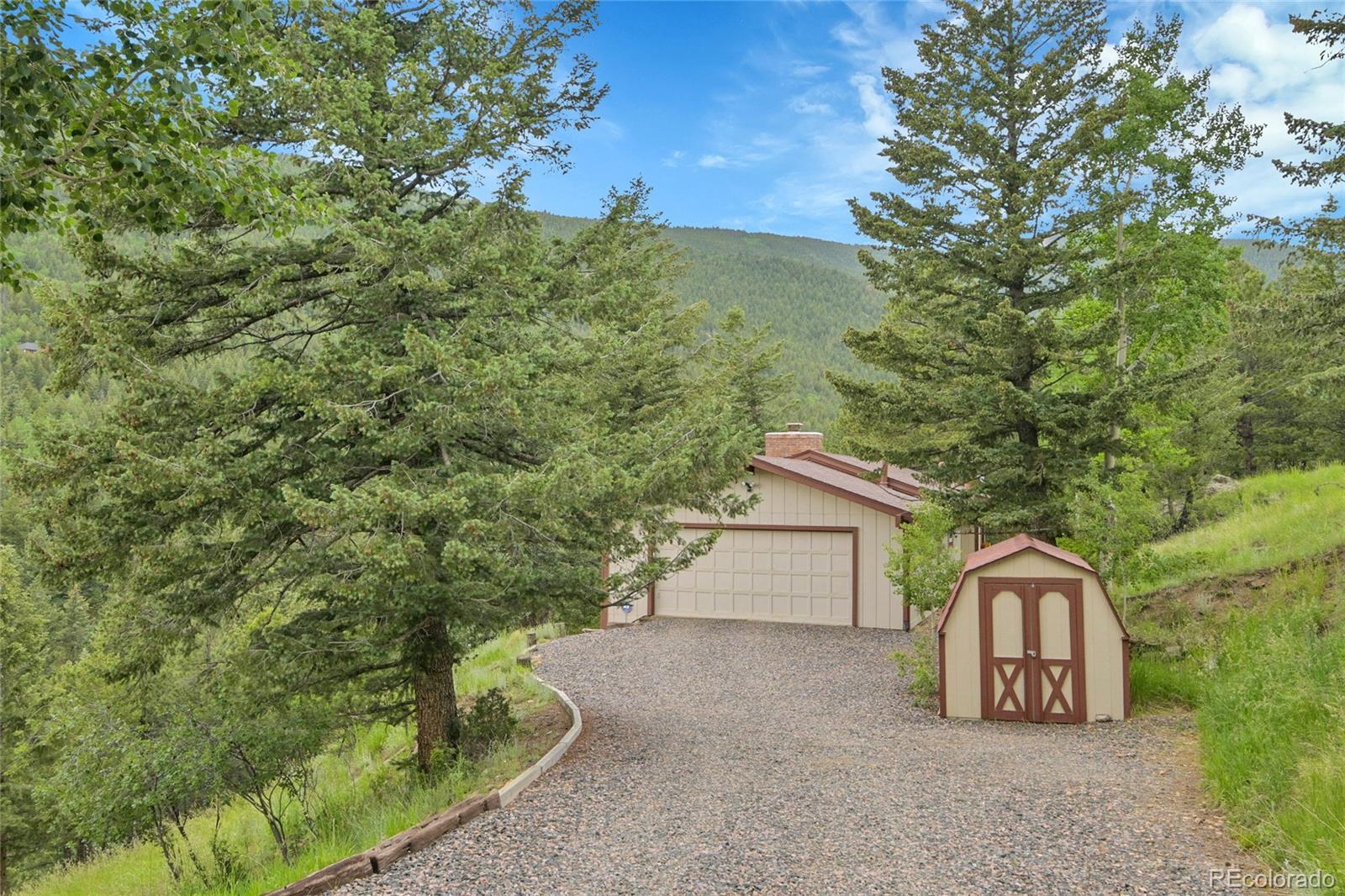 This delightful home offers incredible views and a lovely private setting. Perfectly perched to take in the vistas from the two decks and through multiple windows, you feel as if you are living in a treehouse. Yet it’s only one step up from the 2-car garage into the kitchen and living areas! Head inside to an immaculate home ready to move into. In 2003, the home underwent a comprehensive renovation, where it was taken down to the studs and rebuilt. This extensive remodel included updates to the windows, siding, roof, insulation, flooring, kitchen, and bathrooms, among other improvements. The home has been lightly used as a part time home since then, and perfectly maintained all the while. The kitchen has granite counters and maple cabinets including a pantry cabinet, and opens to a dining area with views and access to the deck. The spacious living room offers a wood burning fireplace and lovely view windows. The primary bedroom is large with double closets, and has access to the 2nd composite deck and beautiful bathroom. The charming lower level den with fireplace offers a cozy retreat or makes a great office - it's easy to work from home with excellent internet available. Outside the decks and front porch offer so many options for outdoor living with great views– and all very private! The 1+ acre lot gets abundant sunshine and frequent visits from deer and elk. The oversized garage includes windows, a workbench, and a sink. In addition, you will find a great shed offering more storage for those mountain toys. And don’t sweat the details…brand new septic installed, and a new furnace and new hot water heater in 2023 ensure this home is worry free and ready to be your next idyllic mountain home. All this with open space hiking trails close by and within minutes to Evergreen shopping and amenities.