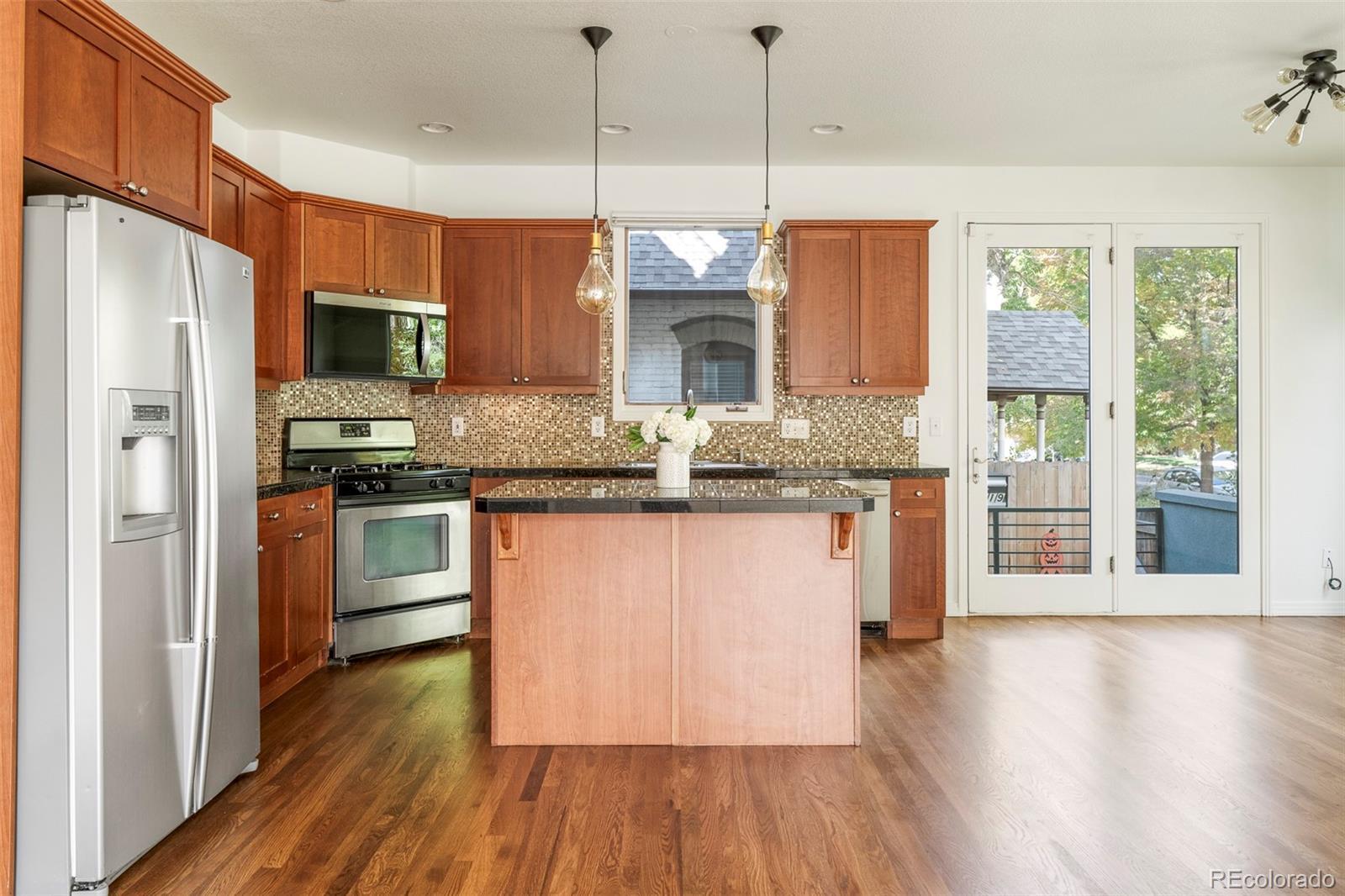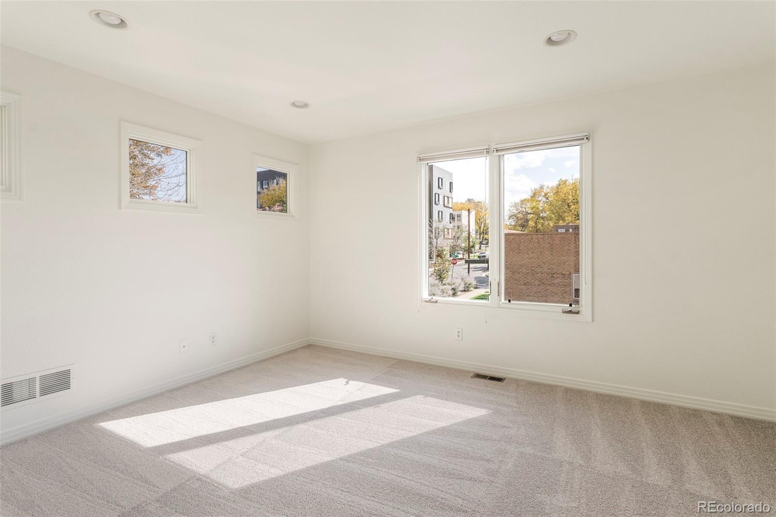 Stylish Uptown Townhome with over $27,000 of Fresh Updates & Rooftop Oasis. Experience the best of Uptown living in this light-filled, street-facing townhome that lives like a single-family home. Freshly updated with new interior paint, brand-new carpet, and newly refinished hardwood floors, this 3-bedroom, 4-bathroom home (including a new full bathroom added in 2021) is the epitome of move-in ready with an exceptional amount of livable square footage for the price. The open-concept main level offers an inviting flow between the living, dining, and kitchen spaces—anchored by a cozy gas fireplace and framed by large windows that bring in tons of natural light. Upstairs, you’ll find two spacious en-suite bedrooms, providing privacy and convenience. A bonus loft area offers endless possibilities—home office, media room, gym, or guest lounge—and opens to a large, south facing rooftop patio with leafy neighborhood views. Downstairs, a finished lower level with a full bath offers even more versatility for guests or a flexible living space. Parking is a breeze with a private one-car detached garage plus an additional off-street, dedicated parking space. All this in one of Denver’s most vibrant neighborhoods—just around the corner from countless Uptown and City Park favorites like White Pie, Dos Santos, Ollie & Parks, City Park and the East High school zone. Modern style, connected city living, and a rooftop retreat—all in one beautifully refreshed home!