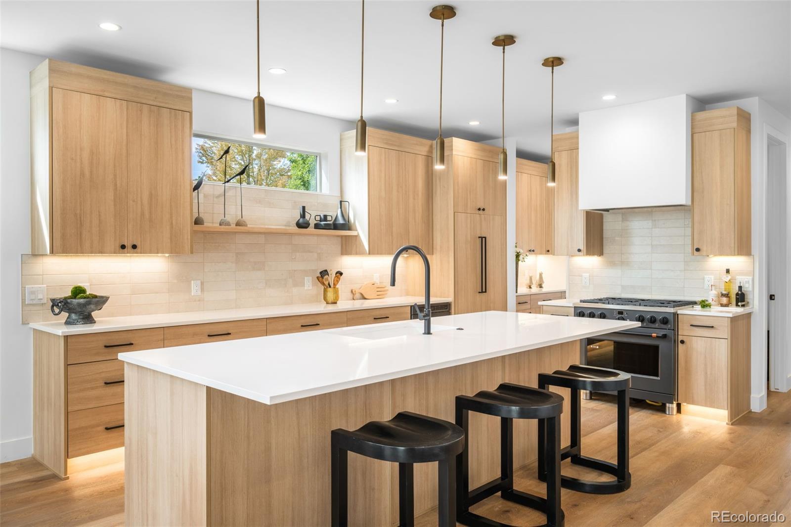Welcome to 2928 S Cherokee St, the south unit of a stunning new construction duplex offering 4 bedrooms, 5 bathrooms, and over 3,500 sq ft of modern luxury in the heart of Englewood! Thoughtfully designed with high-end finishes throughout including Porcelanosa tiles, this home features soaring 9’ and 10’ ceilings, an open-concept layout, and seamless indoor-outdoor living. The main level boasts a gourmet kitchen with quartz countertops, Café appliances, a large island, private dining area, and a walkthrough bar, perfect for entertaining. A spacious living room opens to the backyard through accordion patio doors, filling the space with natural light. Upstairs, the luxurious primary suite includes a spa-like bath with dual vanities, soaking tub, oversized shower, and a large walk-in custom closet. The fully finished basement offers 10’ ceilings, a large family room, and an impressive tiled wet bar, ideal for hosting and relaxing as well as a bedroom and bathroom, great for guests to enjoy! Enjoy a private fenced oversized back patio, a covered rooftop deck with fireplace and stunning mountain and city views. Located just minutes from parks, top-rated restaurants, shops, and public transit, this home blends style and space with city convenience and Colorado charm!