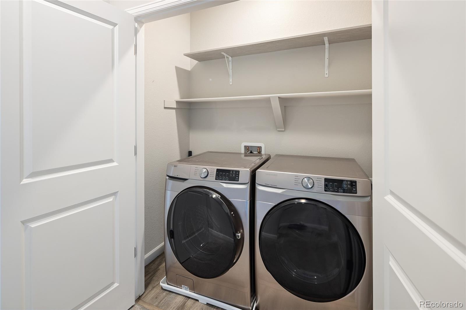 Welcome to 1033 Oak Circle, a modern and meticulously maintained townhouse in the heart of Lakewood. Built in 2020, this beautifully designed 2 bedroom, 3 bathroom townhome offers approximately 1,202 square feet of stylish living space, thoughtfully laid out over two levels to maximize comfort and functionality. Step inside to discover a bright, open-concept main level where living, dining, and kitchen spaces flow effortlessly. Rich solid surface floors lend warmth and continuity throughout, while large windows fill the home with natural light. The modern kitchen features sleek cabinetry and comes equipped with stainless steel appliances including a refrigerator, microwave, dishwasher, range/oven, and garbage disposal, perfect for everyday cooking and entertaining alike. A convenient half bath completes the main level for guests. Upstairs, retreat to two generous bedrooms, each boasting its own private bathroom. The primary bedroom features a large walk-in closet. The upstairs layout offers a highly desirable design that offers comfort and privacy for residents or overnight guests. An in-unit laundry area adds everyday convenience on the upper level. This property also includes an attached garage and driveway, providing secure parking and additional storage. Outside, a well-sized patio and green space offer a relaxed outdoor setting to sip your morning coffee or unwind at the end of the day. Located in a vibrant, walkable neighborhood, this home provides easy access to Oak Station light rail stop (just blocks away), making commutes to downtown Denver or other metro areas quick and convenient. Nearby parks like Sunset Park and major roadways such as I-70 and 6th Avenue enhance lifestyle and connectivity for active homeowners. Whether you’re a first-time homebuyer, savvy investor, or looking to downsize without compromise, this townhome seamlessly combines modern comfort, urban convenience, and Colorado charm in one exceptional package.
