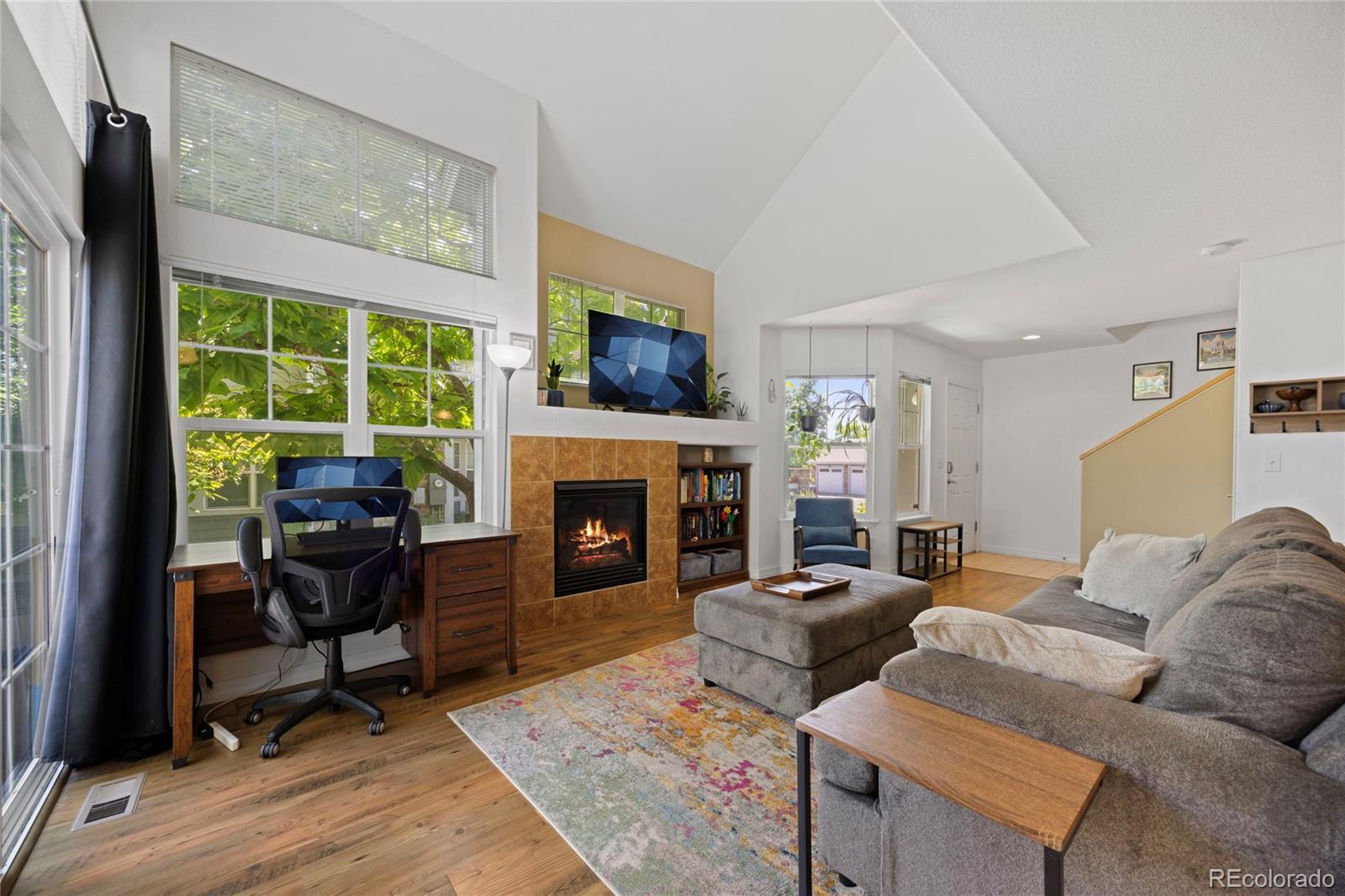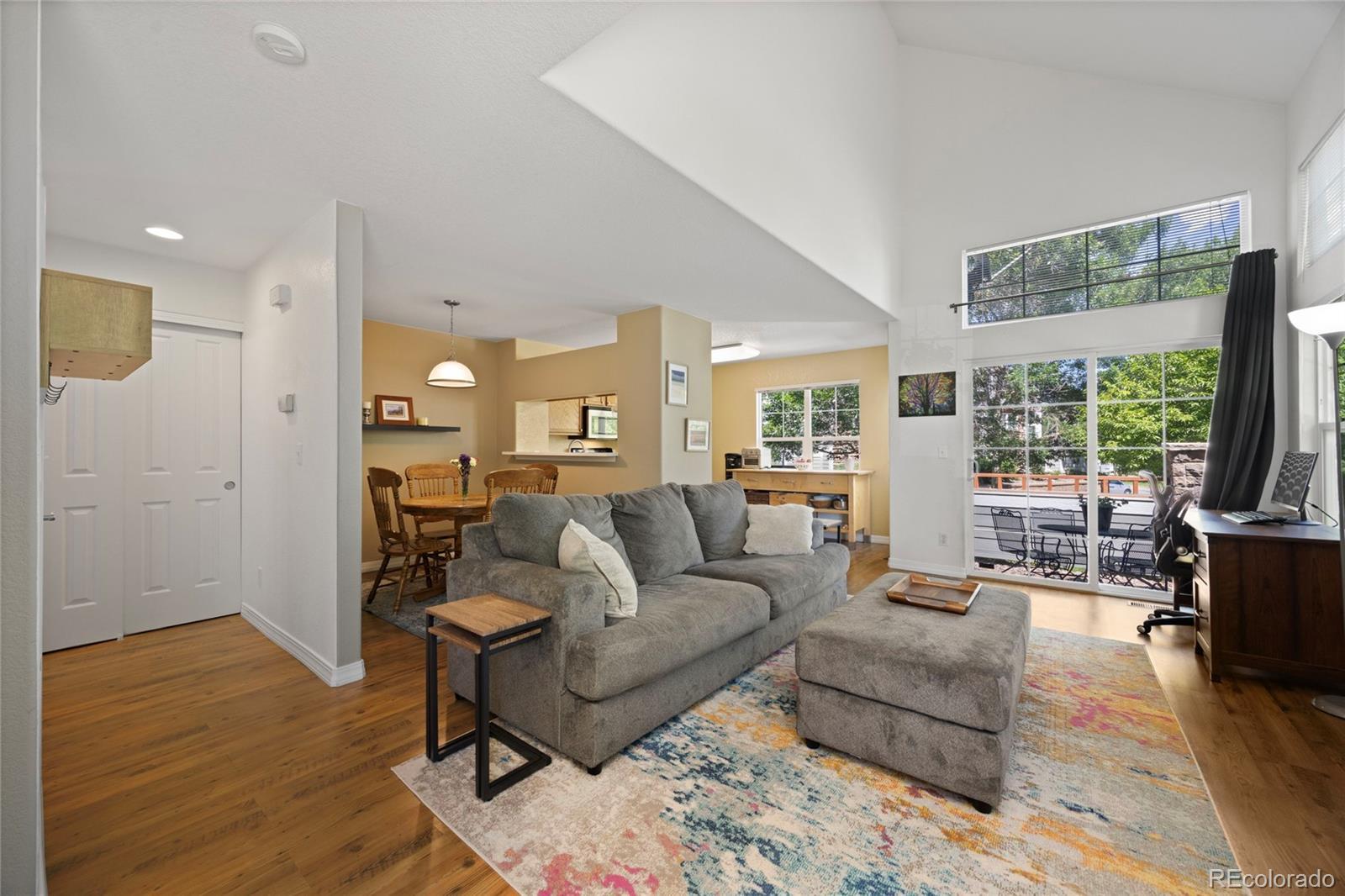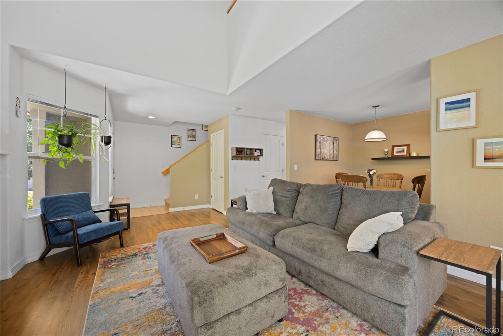 Stylish, Low-Maintenance Living in Thornton Welcome to 12812 Jasmine Street Unit #C—a beautifully maintained townhome-style condo offering comfort, space, and convenience in the desirable Riverdale Park community. This 2-bedroom residence features a light-filled open floor plan with soaring ceilings, ideal for both relaxing and entertaining. The main level boasts a spacious living area with a cozy gas fireplace, a dedicated dining space, and a well-equipped kitchen with ample cabinetry and counter space. Upstairs, you’ll find two generously sized bedrooms with large closets, providing privacy and flexibility. Additional highlights include a detached one-car garage, a private front porch, and central A/C. Community amenities include walking trails, a clubhouse, and pool, all nestled in a quiet, park-like setting with easy access to I-25, light rail, shopping, and dining. This move-in-ready home combines comfort and convenience in a fantastic location.
