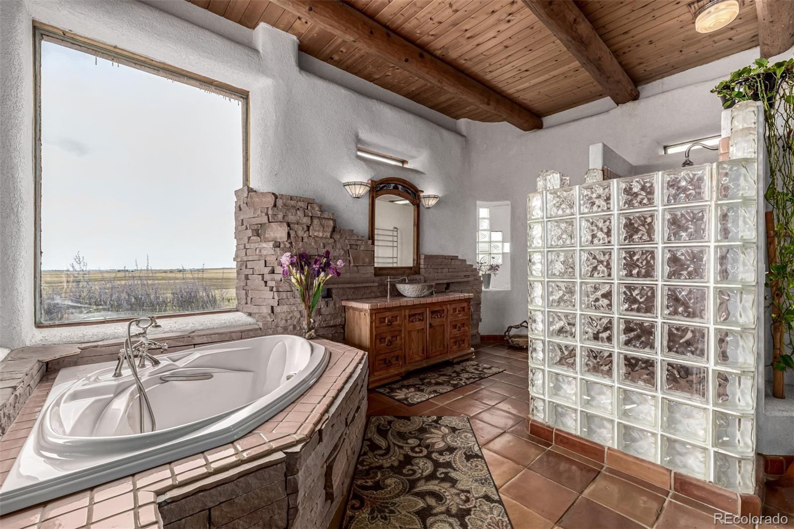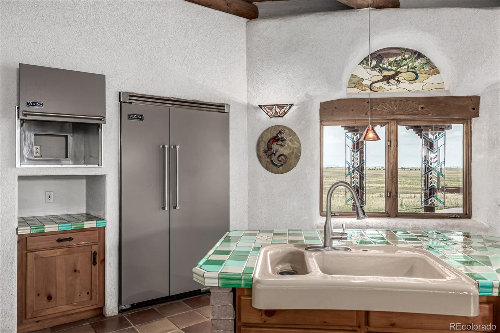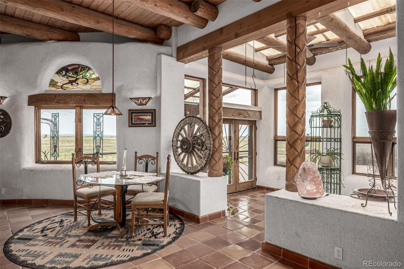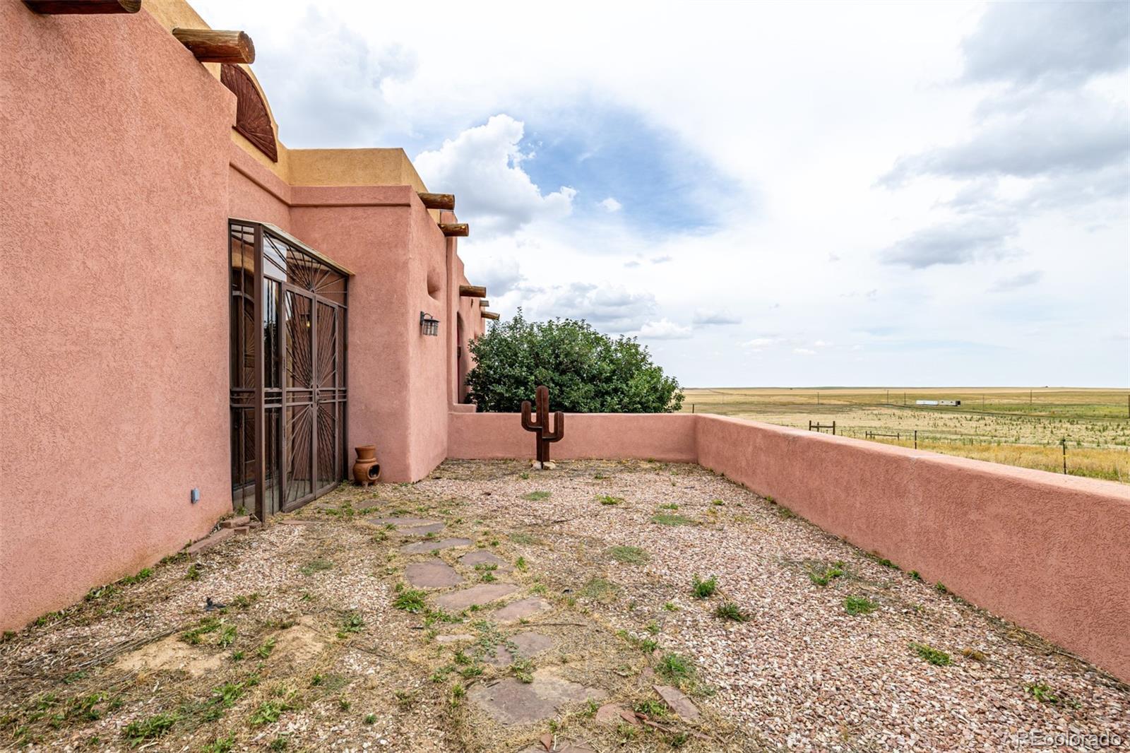 Huge Price Improvement! A Rare Adobe Hacienda East of Denver. Welcome to a one-of-a-kind Adobe Santa Fe Hacienda offering panoramic views of Colorado’s Front Range and the soul of the Wild West. Crafted with sustainable straw bale steel post and beam construction with an enclosed front courtyard. this residence pairs environmental consciousness with timeless beauty. Step inside to find hand-carved wood doors, imported Mexican Terrazzo tiles, authentic vigas beams, stained glass windows, and kiva fireplaces—all woven into three bedrooms and two elegant baths. A detached six-car garage and workshop with oversized aprons includes an additional half bath, perfect for ranch hands. Rustic Sophistication: Unwind around the custom Western-style billiard table (negotiable) or host on the oversized patio as the dramatic landscape stretches endlessly before you. Equestrian Excellence: This property is a haven for horse lovers—featuring three spacious stalls, a tack room, a hay shed, multiple outside hydrants, hitching posts, and sweeping pasture. Whether you're a seasoned rider or simply inspired by frontier living, this retreat welcomes both boots and reins. The Spirit of the Southwest: Immerse yourself in a lifestyle where old world charm meets Colorado serenity. Every detail evokes the romance of adobe architecture and the bold rhythm of country living. This extraordinary retreat offers privacy, peace, and the freedom to roam. New water heater. New water well pressure tank.