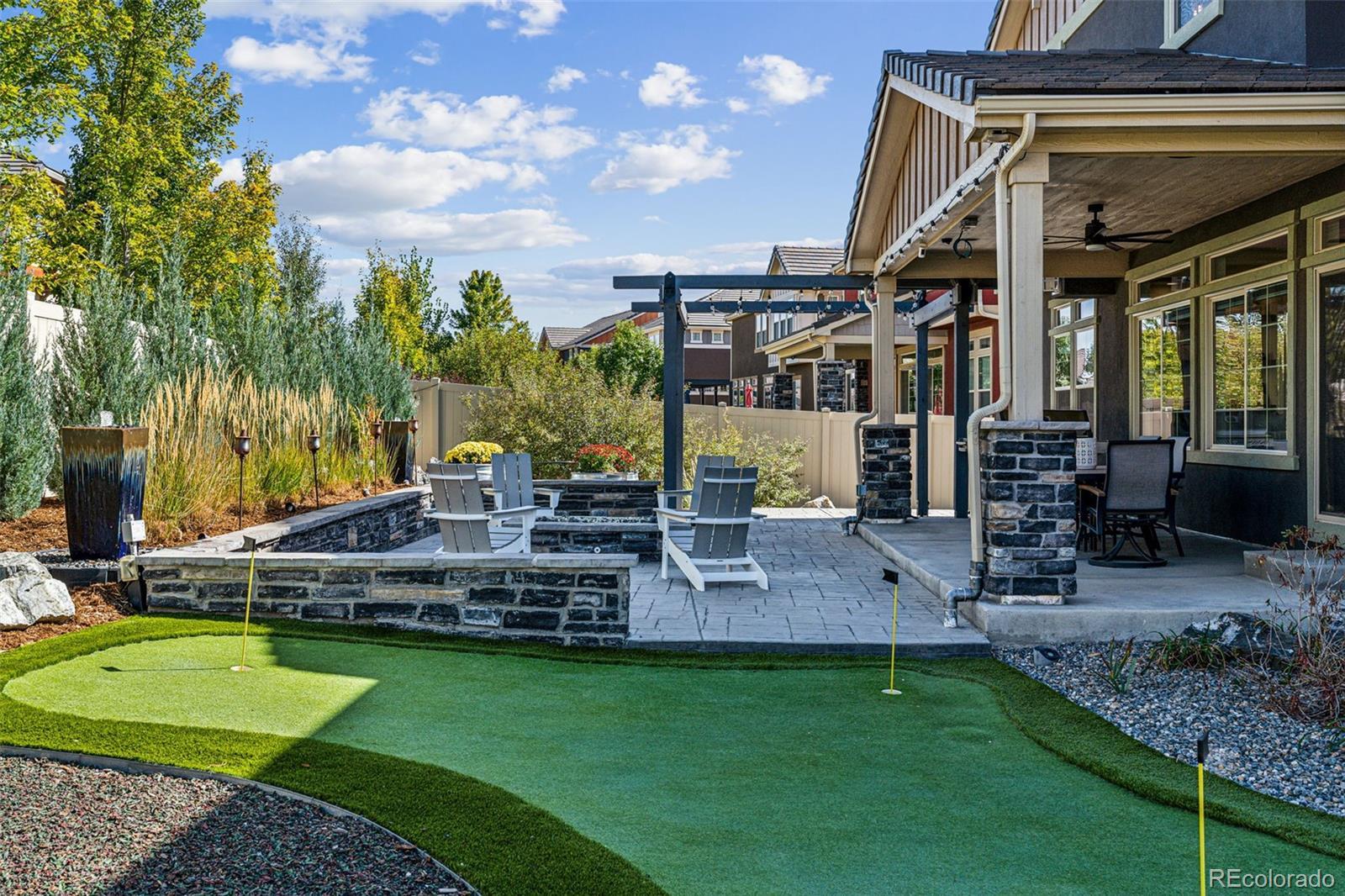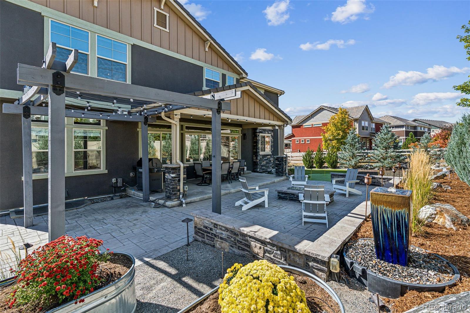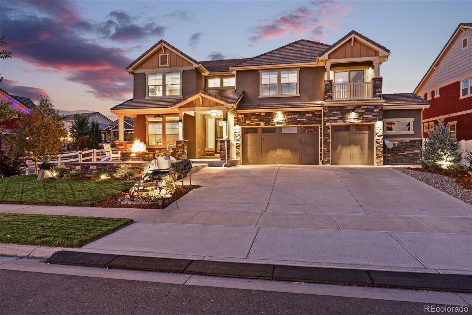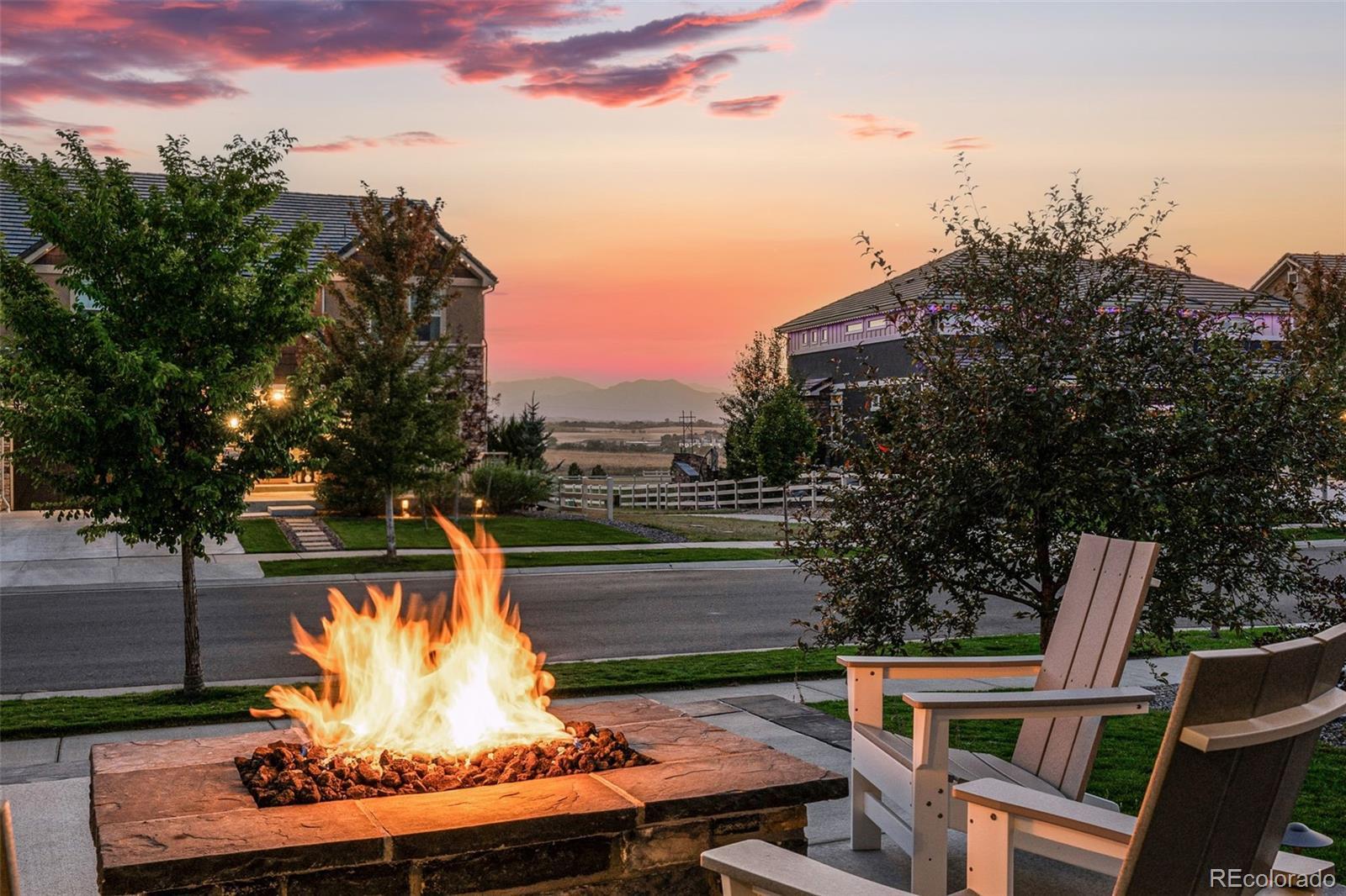 Experience model-home perfection in this stunning residence, ideally situated on a premium, oversized homesite bordered by a tranquil greenbelt and framed by breathtaking mountain views. This home is loaded with high-end builder selections and custom, designer improvements that elevate every space. The floor plan includes four well-appointed bedrooms, an essential main-floor office with French doors and mountain views, and a huge loft with surround sound and an exterior view balcony. A one-of-a-kind custom laundry room and mudroom enhance daily functionality. The sizeable primary suite is a true retreat, boasting a walk-in closet and a luxurious five-piece bath featuring a spa-like walk-through shower with dual shower heads. The heart of the home is the spacious gourmet kitchen, a chef’s dream equipped with top-tier cabinets, under-cabinet lighting, a subway tile backsplash, granite countertops, and a huge island topped with quartz. Premium stainless steel appliances, including double ovens and a five-burner gas cooktop, complete this culinary space. The property’s curb appeal and outdoor amenities are exceptional! Designed for seamless indoor-outdoor enjoyment, the front elevation features a covered porch transitioning to an extended patio with an elegant water feature and a gas fire pit, perfectly positioned to enjoy the tranquil views. Practicality is guaranteed with a three-car oversized garage offering superior storage. The rear yard is a true sanctuary and a dedicated entertainment zone: highlights include an extended covered patio, a stamped concrete patio hosting a second gas fire pit, two beautiful water features, a custom pergola with café lighting, integrated garden planters, and a private putting green. This is more than a home; it's a meticulously crafted lifestyle in the highly desirable Erie Highlands! Enjoy easy access to top-rated schools, charming Briggs Street offers high-end and casual dining, local breweries, and boutique shops.