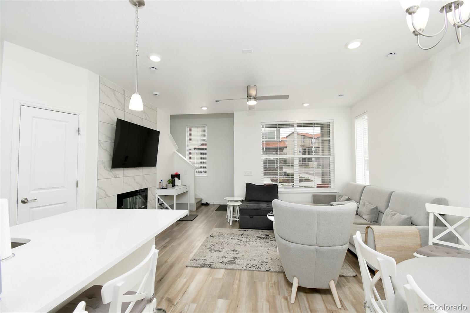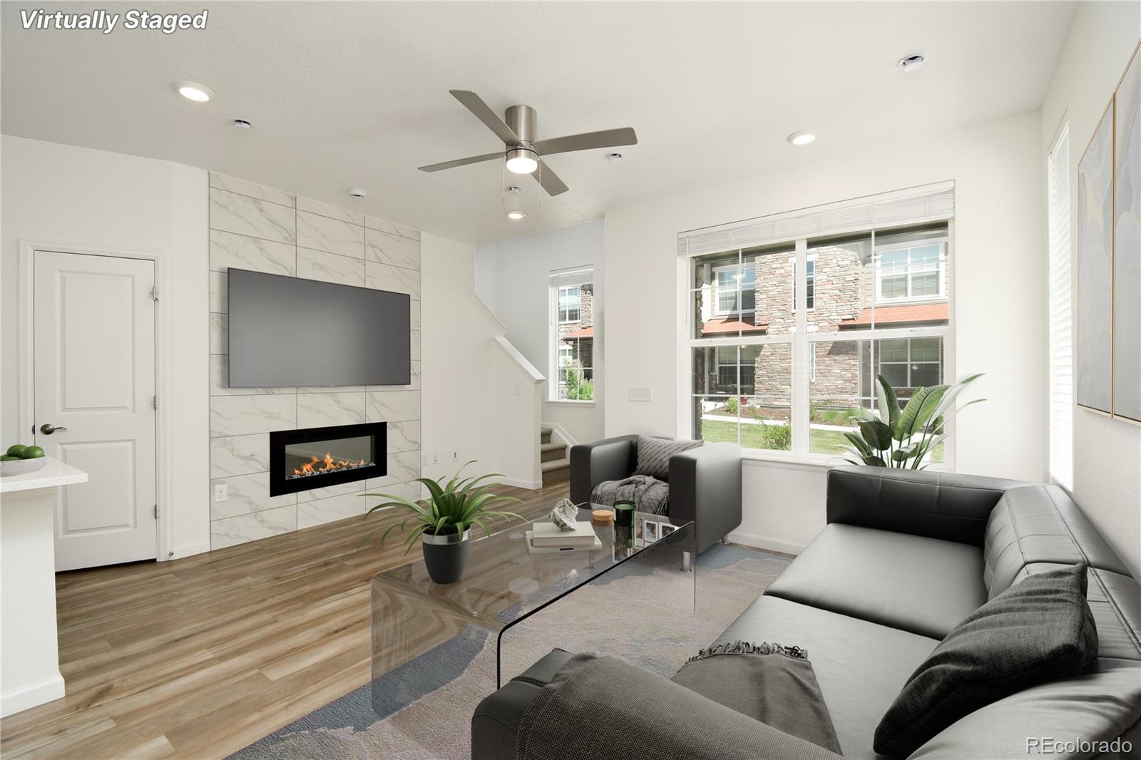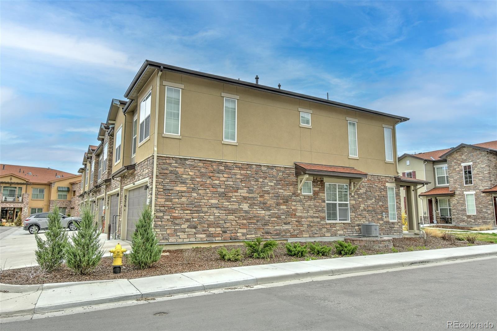 Upscale living in this stunning 3-bed, 3-bath end-unit townhome in a desirable newer neighborhood! Better than new with high-end finishes throughout, including a light-filled family room with a 40" linear fireplace and floor-to-ceiling tile surround. The gourmet kitchen features quartz counters, Whirlpool stainless all included appliances, white cabinets, and a stylish tile backsplash. Main floor is open with large family room, office space and bathroom. The spacious primary suite with huge walk-in closet, double vanity, and oversized low-entry shower, loft area, two more bedrooms, full bath, and conveniently located laundry room—washer & dryer included round out upstairs. Enjoy an attached 2-car garage plus a rare full-length driveway for extra off-street parking—ideal for guests. Close to parks, trails, schools, and shopping with easy access to C-470 & Santa Fe. Must see!