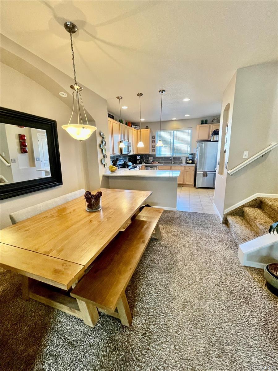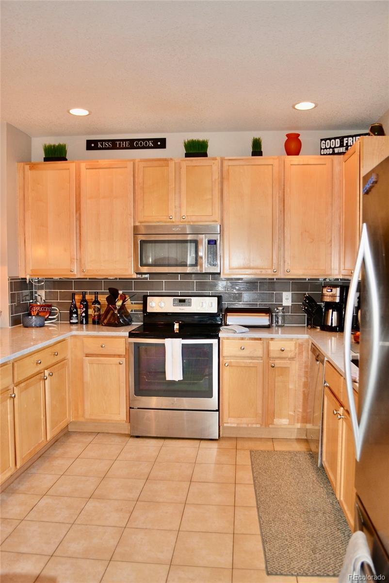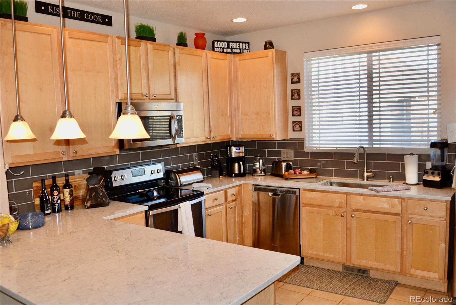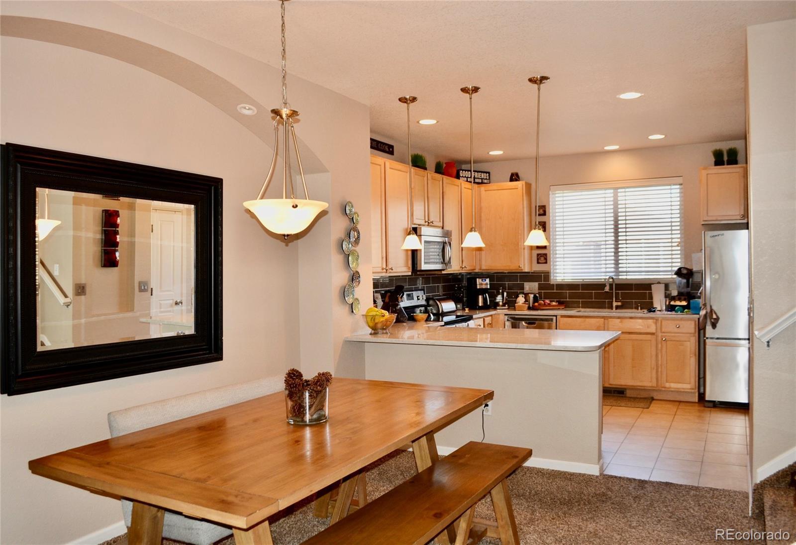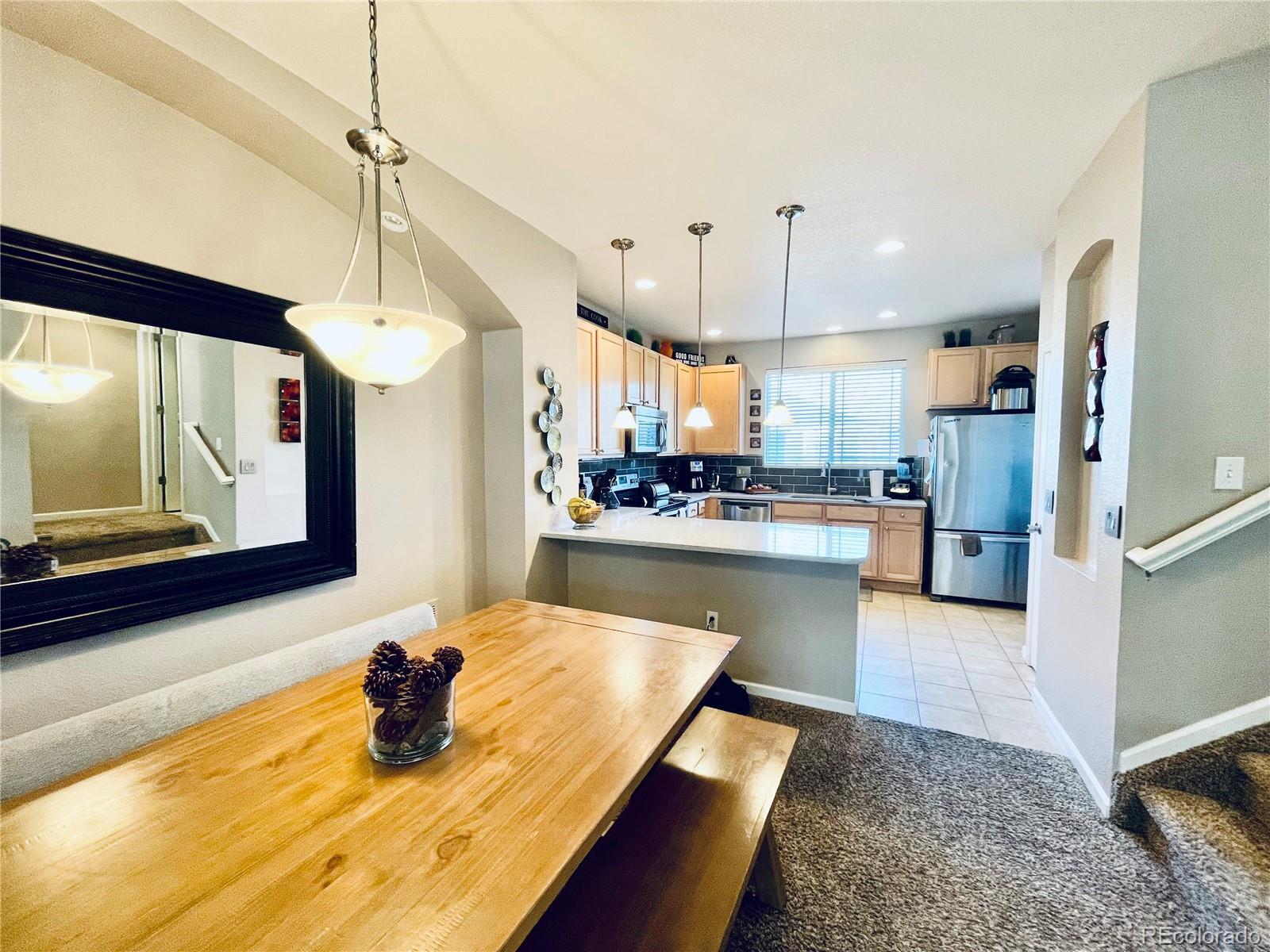 Welcome home! Beautifully updated townhome is move in ready! Meticulously clean-smoke and pet free. Convenient main floor bedroom with French doors and garage access. Open, spacious kitchen is complete with quartz countertops, large subway tile backsplash, stainless steel appliances and kitchen nook perfect for a small office or coffee bar. Perfect for entertaining! All bathrooms are refreshed with vanities, sinks, counters and faucets. Enjoy Colorado winters with the warm fireplace that beautifully divides family room from dining room. Large laundry room includes utility sink for delicates or bathing your pets. All bedrooms are privately located on main floor or third floor. Spacious primary bedroom complete with reading nook, walk in closet, double sinks and oversized tub in bathroom. Large windows throughout the home allows natural lighting all day long. Oversized garage with plenty of room for storage. Conclude your day with evenings on the balcony that faces west-perfect views of our amazing Colorado sunsets. Home is conveniently located kitty corner from the pool. Desired Cherry Creek School District. Located near Costco, restaurants, I-225 and Light Rail.