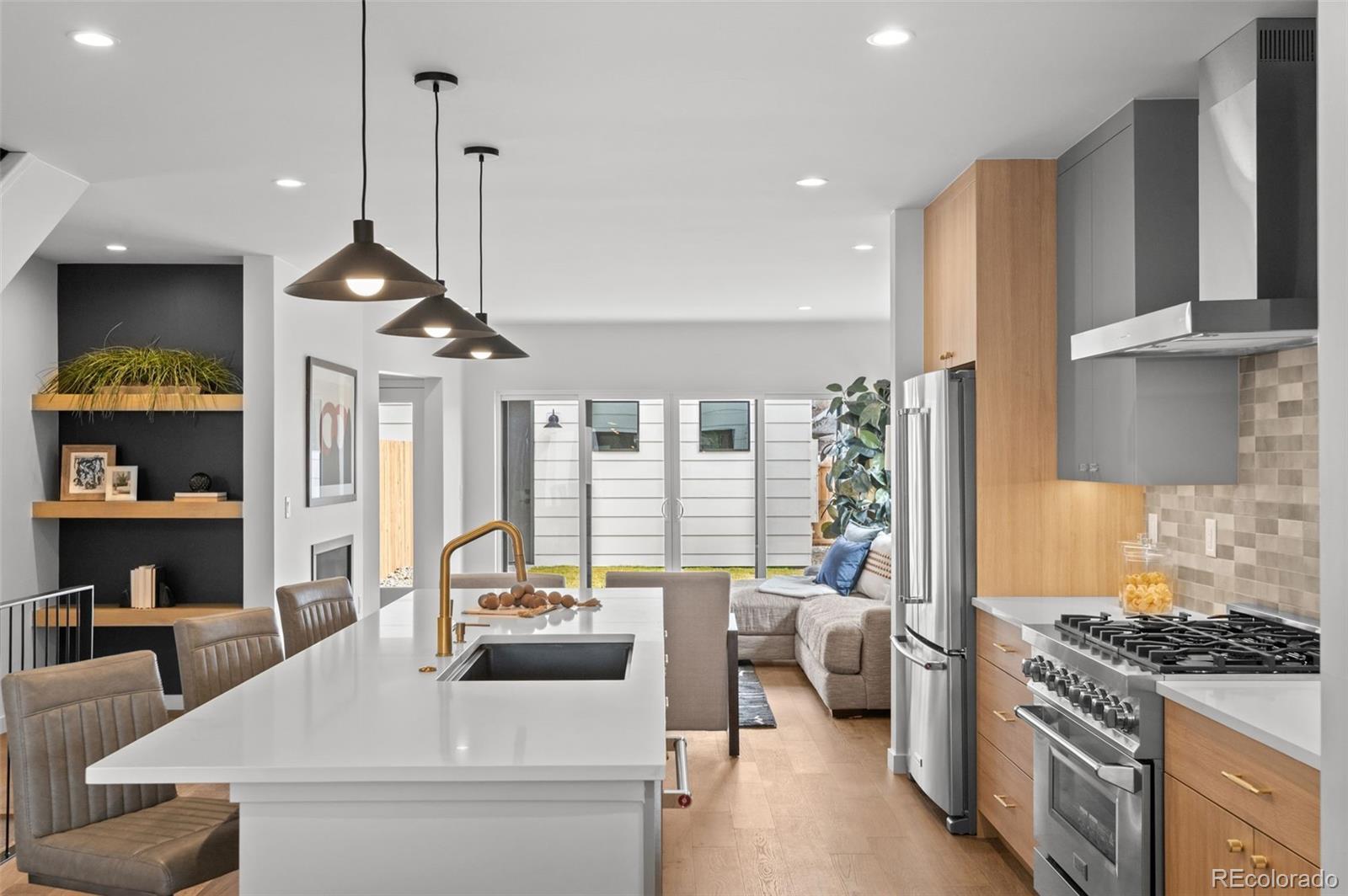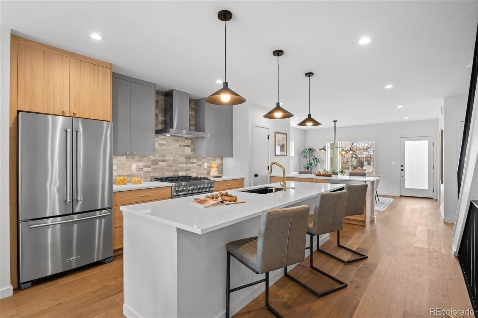 Qualified buyers are eligible for 1% of the loan amount as a credit towards closing costs or for a rate buydown with our preferred lender, contact listing agent for more details. Stunning New Construction Home in Rosedale Neighborhood – Mountain Views, Modern Design, Prime Location. Welcome home to this luxurious new construction located in the vibrant Rosedale neighborhood. This spacious home features wide plank oak wood flooring throughout the main floor, complementing the open-concept design. The chef’s kitchen is a showstopper, with a large center island, pull-up seating, sleek quartz countertops, and high-end stainless steel appliances. A convenient powder room for guests and a stylish mudroom complete the main level. Upstairs, the primary bedroom suite is a true retreat, featuring a private balcony, walk-in closet, and a 5-piece ensuite bathroom with designer finishes. Another spacious bedroom with an ensuite bathroom is also located on the second floor, along with a bonus room and laundry area. The third floor offers another bedroom with an ensuite bathroom and wet bar, leading to a large rooftop deck with breathtaking mountain views — perfect for Colorado sunsets and starry nights. The finished basement boasts 10' ceilings and ample storage space. A second wet bar and beverage cooler elevate your entertainment experience. The basement also features a large bedroom with a full bathroom and egress windows, providing plenty of natural light. Located just steps away from Riot BBQ, Bacon Social House, The Post Chicken & Beer, Ratio Beerworks, and Coper Door Coffee, this home offers the best of South Broadway dining and nightlife. Easy access to downtown Denver is a breeze with the nearby light rail station. Outdoor lovers will appreciate the proximity to Harvard Gulch Park with a recreation center and community garden, as well as Ruby Hill Park, offering free concerts at Levitt Pavilion, winter sledding hills, and a summer bike park.