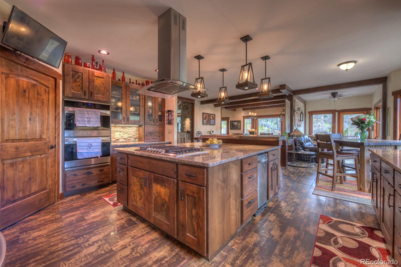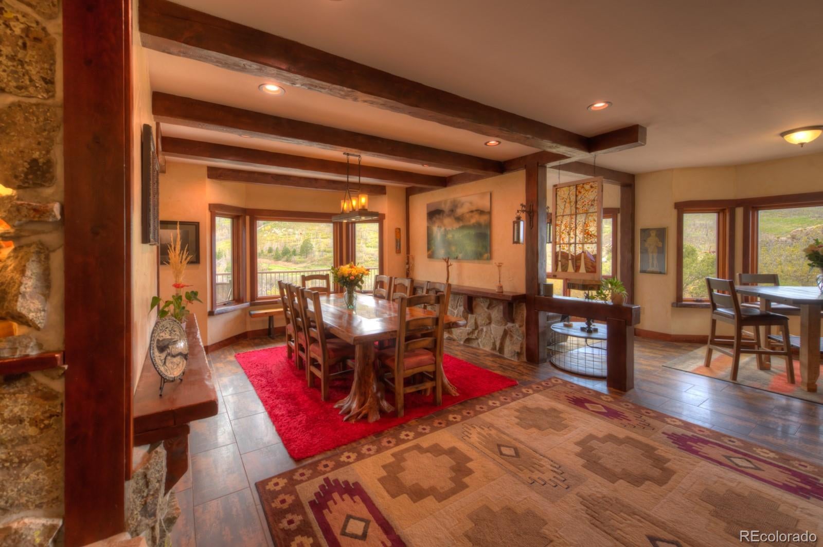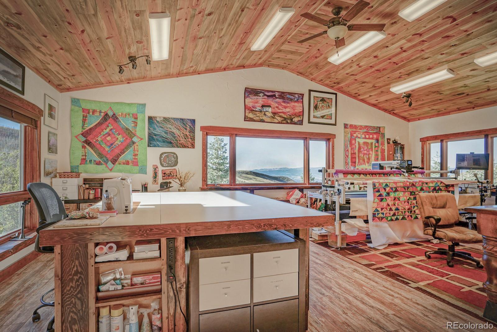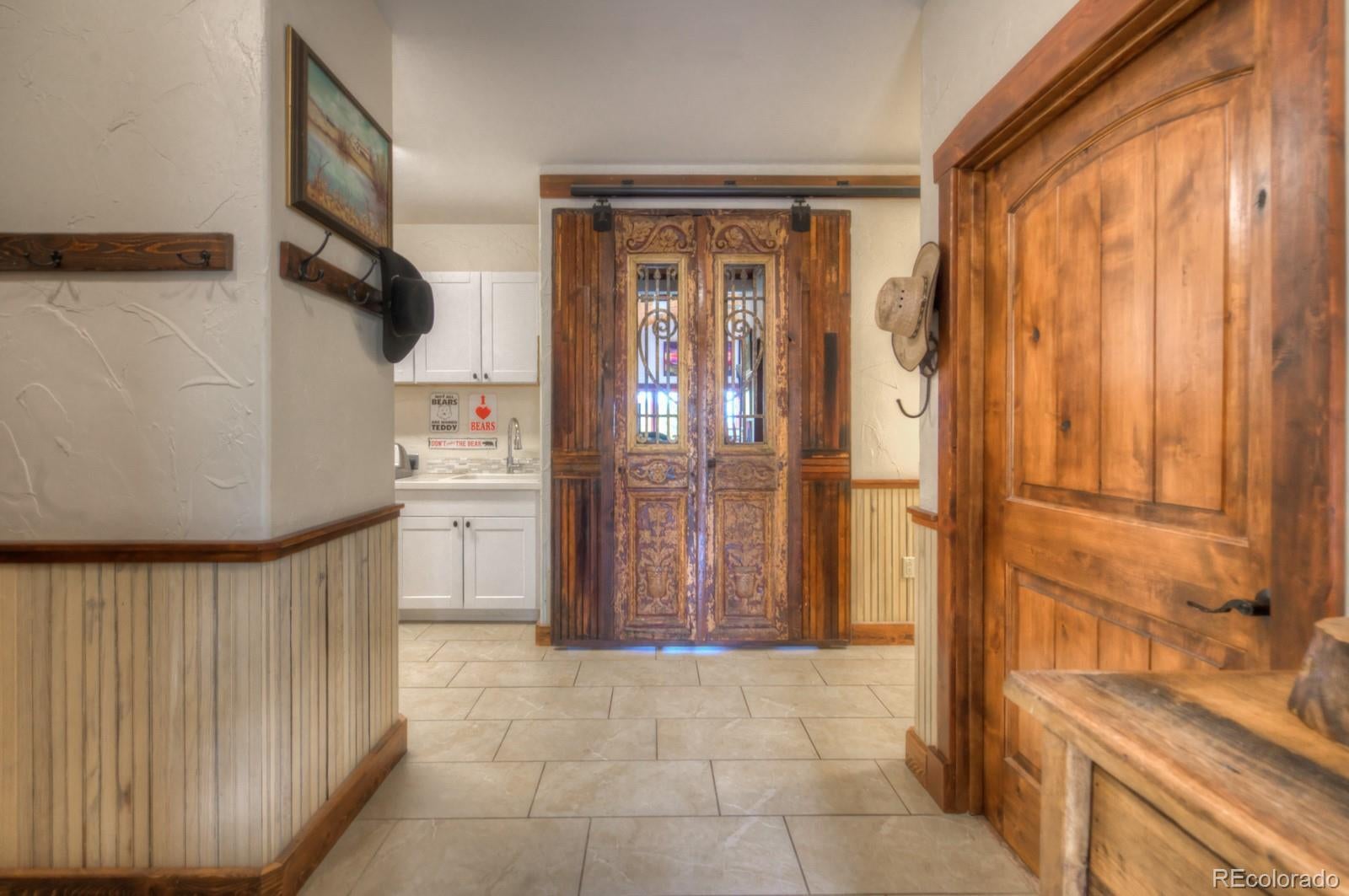 Autumn Rock is a one-of-a-kind mountain retreat where craftsmanship, history, and soul meet in perfect harmony. Named for a cherished quilt sold to help fund the purchase of the land, the home occupies a sacred space at the spiritual center of three Native American landmarks: East Peak, Blanca, and Greenhorn. This stunning home is situated on 40 acres, which also abuts 4,000 acres of BLM that is teeming with wildlife. The local elk herd, boasting a few hundred head, thrives in Yellowstone Ranch. The 4-bed, 3-bath homes cover 3,857 sf. Its interiors reflect this reverence—walls are hand-troweled and glazed in a Tuscan antique finish, art niches are subtly lit, and massive Douglas fir hammer-beam trusses frame the family room, the centerpiece of the room is a rustic stone wood burning fireplace accompanied by a custom chandelier crafted from an antique pulley that hangs proudly. The home is rich in character: floors are durable vinyl, ideal for the in-floor heat system. Exquisite alderwood doors, exposed rebar accents, and a powder room with reclaimed wood and stone basin show thoughtful attention to detail. The primary suite offers sweeping views, a gas fireplace, live-edge features, and a spa-like bath. History echoes in every room from embedded Civil War-era bullets in extinct American chestnut doors to wainscoting reclaimed from old La Veta dance hall wood. A walkable crawlspace houses the mechanicals, including a propane boiler and whole-house filter system. Autumn Rock is more than a home; it's a legacy.