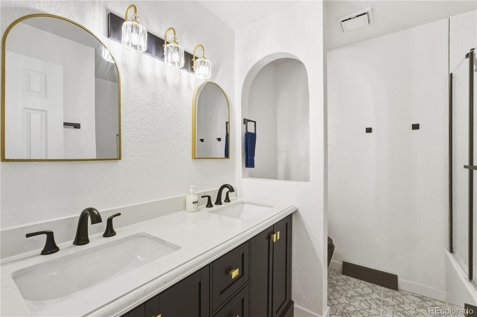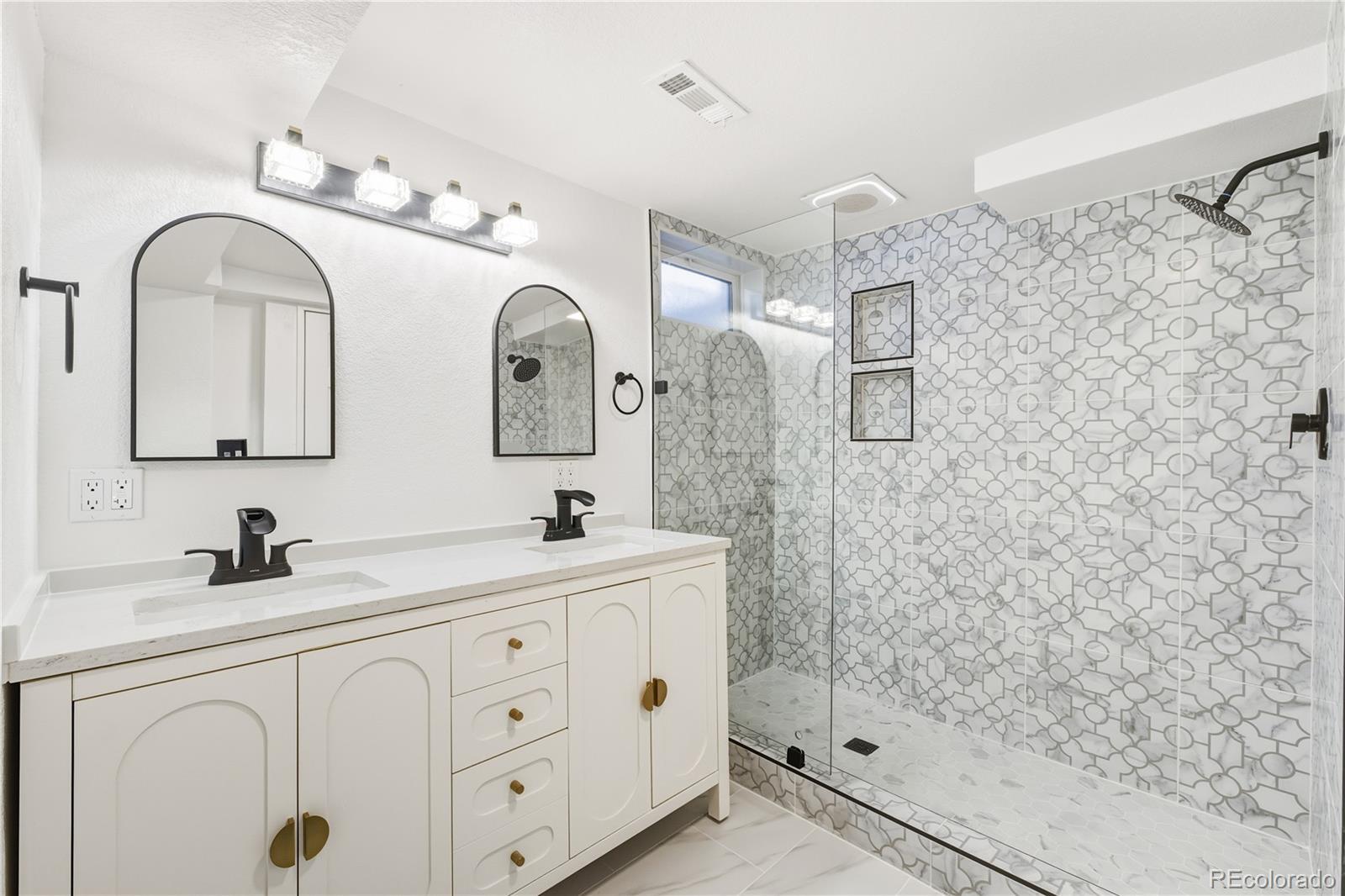 Welcome Home!! Offering 3,068 square feet of finished living space, the home features five generously sized bedrooms, including three with walk-in closets. The spacious primary suite is a standout, boasting his-and-hers closets plus an additional walk-in closet off the primary bathroom. Multiple bonus rooms and flexible living areas on both the main level and finished basement provide endless options for home offices, recreation, or guest spaces—be sure to review the floor plan included in the photos to fully appreciate the thoughtful layout. The home includes three stunning, fully tiled bathrooms with an impressive six total sinks, blending style and functionality. The chef’s kitchen showcases modern white soft-close cabinetry with gold hardware, white quartz countertops, a single-basin black sink, and stainless steel appliances throughout. Cooking is a joy with the gas cooktop and electric oven combo, and the stainless steel refrigerator is included. Step outside to your private outdoor oasis. The backyard features a 10’ x 20’ covered porch accessed by sliding glass doors, a massive fully fenced grass yard, raised garden beds, and a 10’ x 12’ shed with a brand-new roof. Out front, enjoy a large covered porch and a west-facing extra-long driveway. With no HOA, this oversized lot offers endless possibilities to customize your outdoor space to fit your lifestyle. Don’t miss this rare opportunity to own a spacious ranch home on a huge lot, close to everything Belmar and Denver have to offer. Seller is a licensed real estate broker and is also the co-listing agent. Please contact the seller/co-list with any and all questions. Buyer/Buyer's agent to verify any and all information.