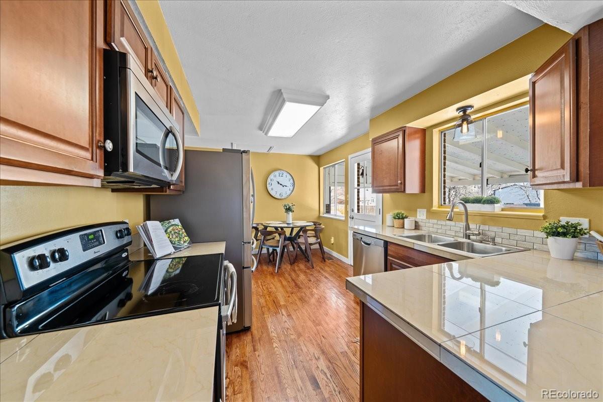 Welcome Home! No HOA, low property taxes, and room to grow. Filled with natural light, this thoughtfully updated and functional floor-plan sits directly across from Stratford Park with easy access to Big Dry Creek Trail, Westminster Promenade, Trader Joe’s, recreation centers, shopping, dining, and Highway 36. Newer roof | New water heater | Newer AC & Furnace | Updated electrical panel + EV charger | Washer & dryer included. Move-in ready, well cared for, and located in one of Westminster’s most connected park-side settings. Conveniently located appx 20 minutes to both Denver and Boulder. Step inside to a warm and welcoming main level filled with natural light. A cozy wood-burning fireplace anchors the living room, creating the perfect spot to gather and unwind. The dedicated dining area flows easily into the kitchen, featuring newer appliances, breakfast nook over looking the spacious backyard providing functionality for everyday living and entertaining. The upper level features 3 spacious bedrooms and 2 full bathrooms. Lower level provides a versatile second living area ideal for reading, workouts, play space, or a cozy TV room. The finished basement adds even more flexibility with a bonus/flex room, 4th bedroom, plus an additional office space or potential to expand — great for guests, hobbies, work-from-home needs, or a growing household. Outside, the large, fully fenced backyard has been a favorite gathering place with a covered patio for year-round enjoyment, room to play, garden, entertain… and plenty of space for pets. Additional off-street parking comfortably accommodates a boat, camper, or RV. Seller-Favorite Features Buyers Will Love: • Big backyard with covered patio for BBQs + outdoor living • Well-maintained neighborhood with pride of ownership • Cozy winter evenings with the wood-burning fireplace • Wildlife + bird watching and endless nearby trails • 4th of July fireworks visible from the backyard • New park being built across the street