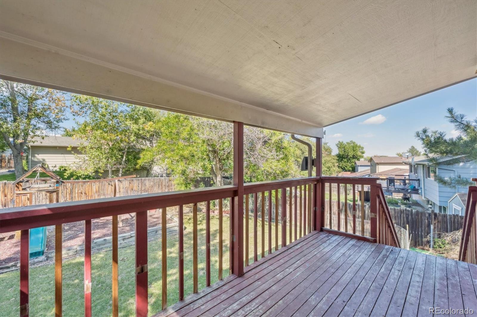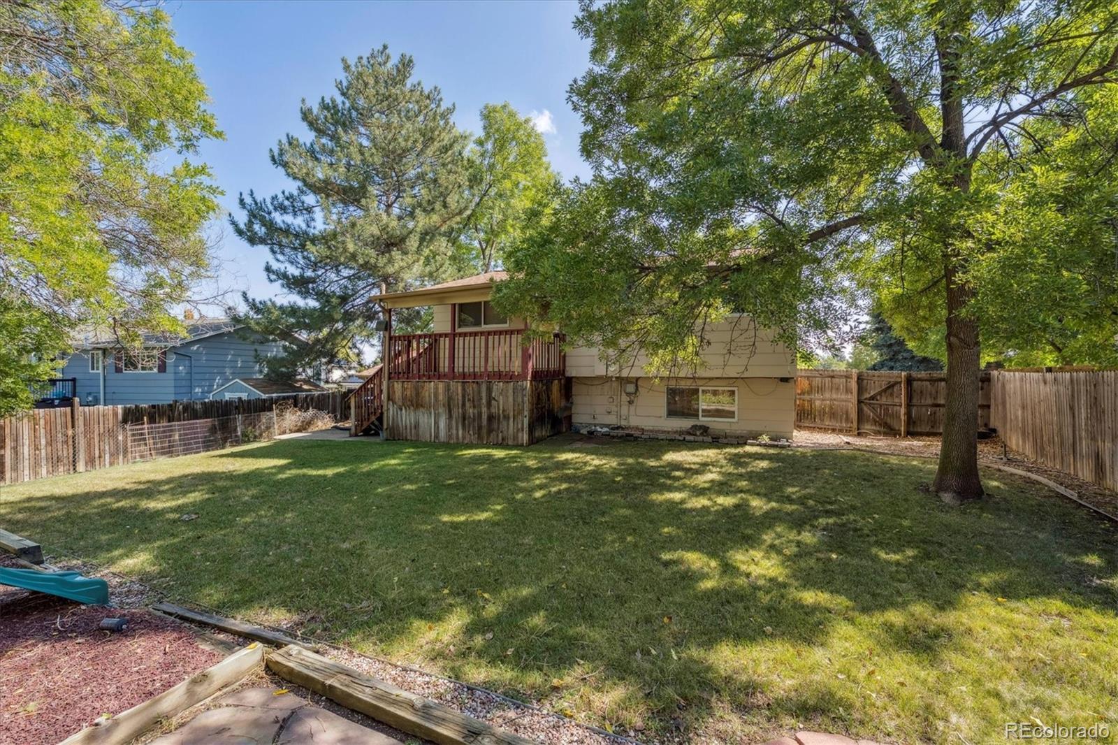 Welcome to this great home located in sought after Arvada neighborhood. Newer furnace, hot water heater. Hardwood floors, barn door to master closet, newer bathroom vanities. 2 family rooms, 3 bedrooms, 2 bath bi-level home. This home boasts a large fully fenced in large yard with children’s play area, flagstone sitting area and covered deck. Outside deck wired for sound and lighting. Mature trees, flower beds and privacy fence. Deep oversized garage perfect for hobbies or toys in an established neighborhood. Easy access to shopping, Denver and the mountain corridor.