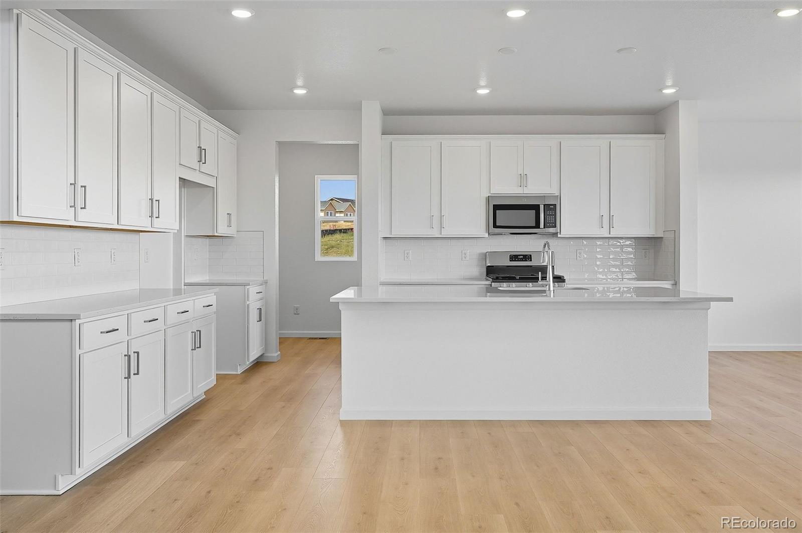 New Construction – Ready Now! Built by America's Most Trusted Homebuilder. Welcome to the Ridgway at 16947 W 92nd Drive in Trailstone. Contemporary design meets everyday comfort in this best-selling home. The expansive kitchen with a walk-in pantry and large eat-in island flows into the dining area and gathering room, warmed by a fireplace and 12-foot sliding glass doors to the covered patio. A versatile study offers flexible space, and soaring volume ceilings fill the great room with natural light. Upstairs, find a private primary suite, spacious loft, and two well-sized bedrooms. A large laundry room and two-car garage complete the layout. Trailstone is a new home community near the Rocky Mountains in Arvada offering stunning views, planned amenities like an outdoor pool and pickleball courts, and access to Jefferson County Schools. Additional highlights include: study, fireplace, 8'x12' sliding glass doors to covered outdoor living, 8' doors on main level, additional sink at secondary bath, utility sink rough in, and gas line rough in at patio. MLS#5992169