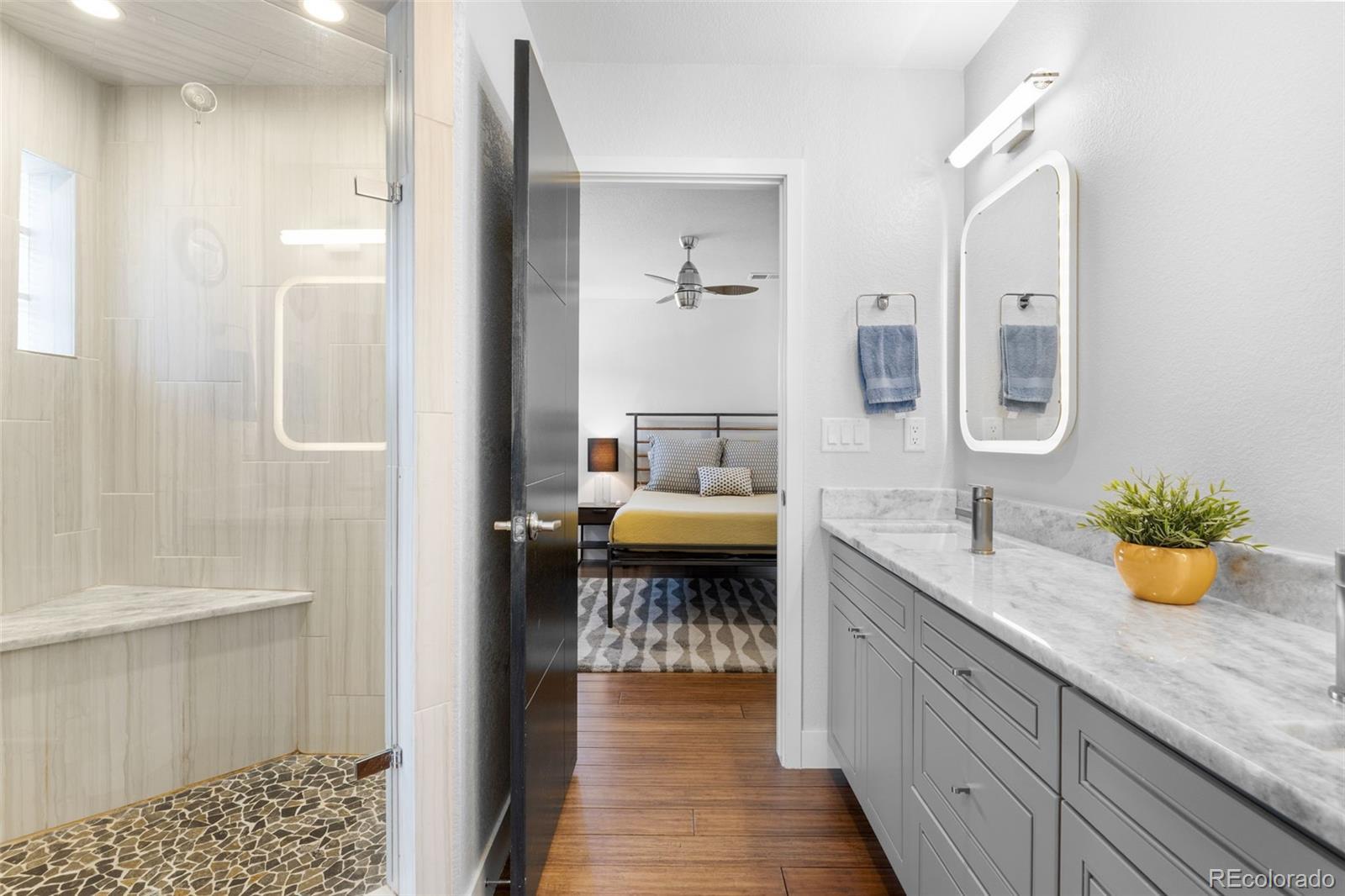 Welcome to 785 Dexter St, an inviting single-family residence offering an ideal blend of comfort and style, with one of the best Denver garages you'll ever see! Spread across 2,170 square feet, this spacious home features four thoughtfully designed bedrooms and three modern bathrooms, including a primary ensuite with a separate double shower crafted in elegant marble. Step inside to find a bright and airy layout that adds character and warmth to every room. The heart of the home, a chef’s kitchen, is a culinary delight with marble countertops, an open layout, and top-of-the-line stainless steel appliances, including a refrigerator, range hood, dishwasher, and induction stove. The main floor boasts a primary bedroom for convenient single-story living, while the additional rooms provide versatility for various needs. Venture outside to discover your own private retreat featuring a fenced backyard, perfect for relaxation or entertaining guests on the patio and porch. With a basement and ample storage options, this home also includes a garage and private parking for added convenience. The garage is 996 square foot custom 3 slot garage/studio with an additional paved pad and built-in shelving to accommodate all your toys. The third slot is an oversized stall and includes an asymmetric 10,000 LB. capacity Rotary mechanic's lift. This is a rare Denver find. Not enough? The garage also has a plug-in for your electric vehicle. The location is in the middle of everything, Snooze, Culinary Dropout, Rose Hospital, Cramer park and Trader Joes.