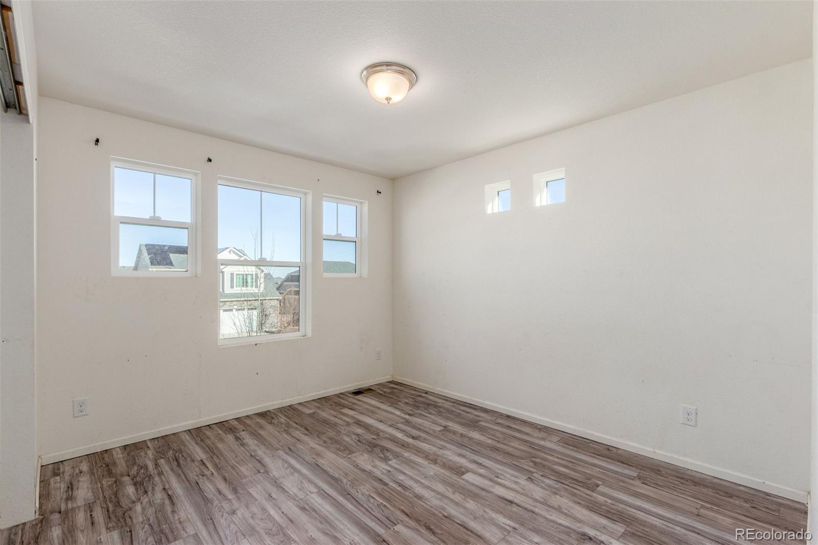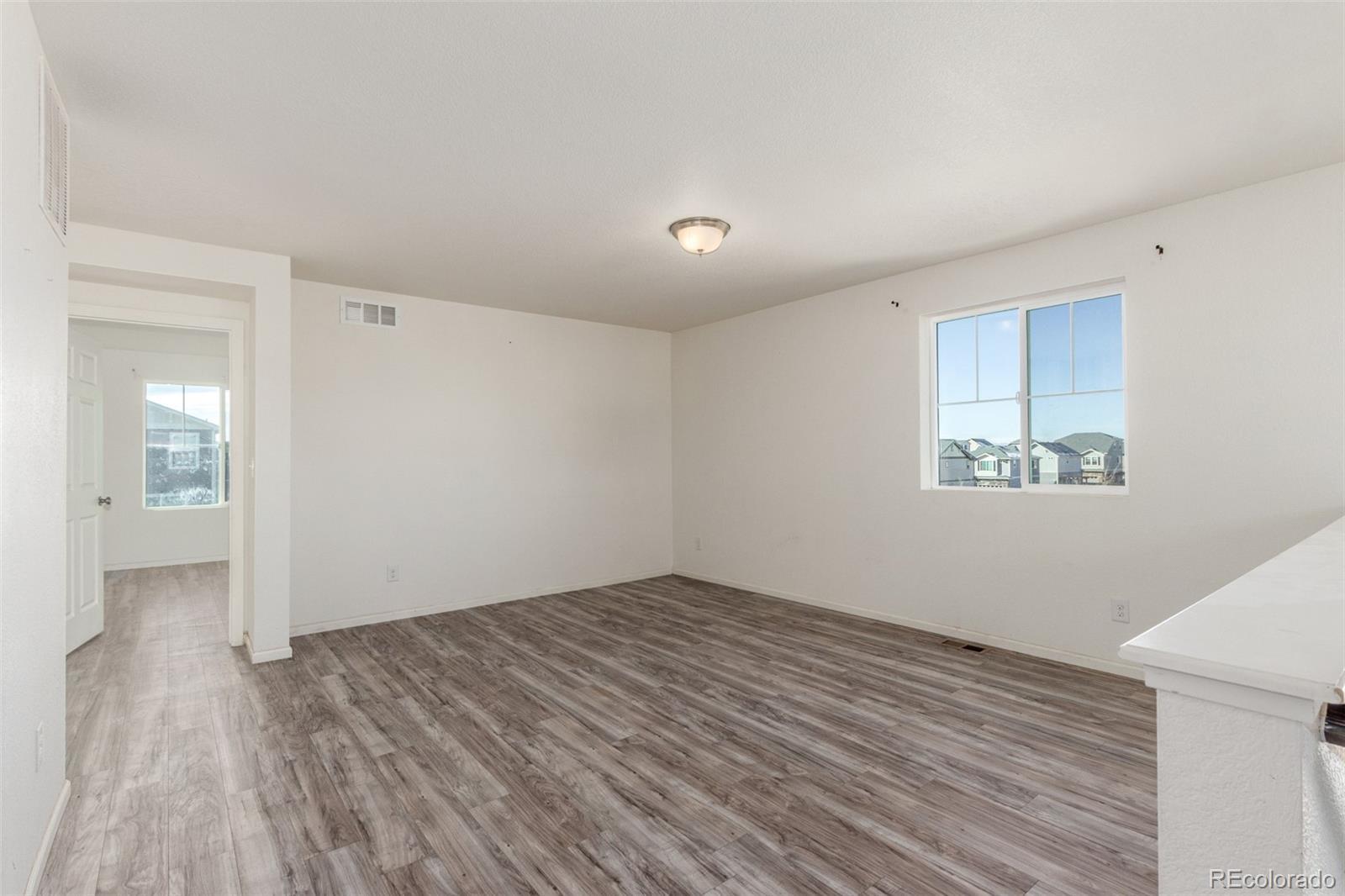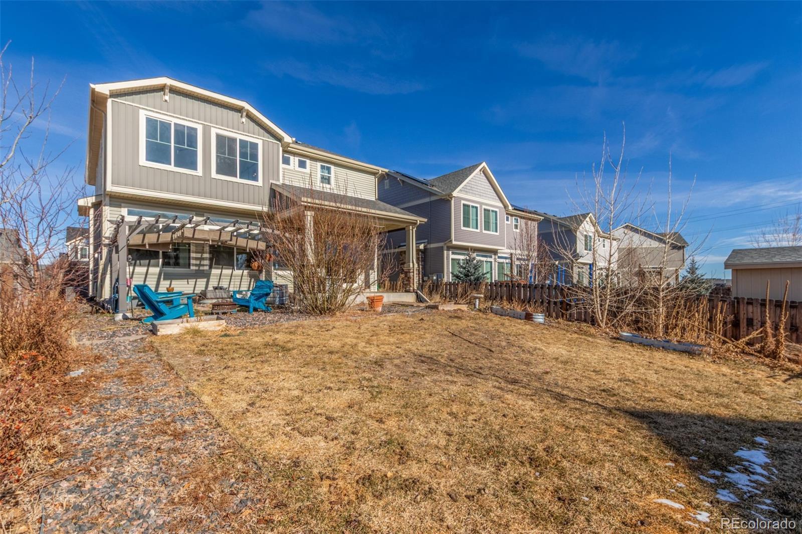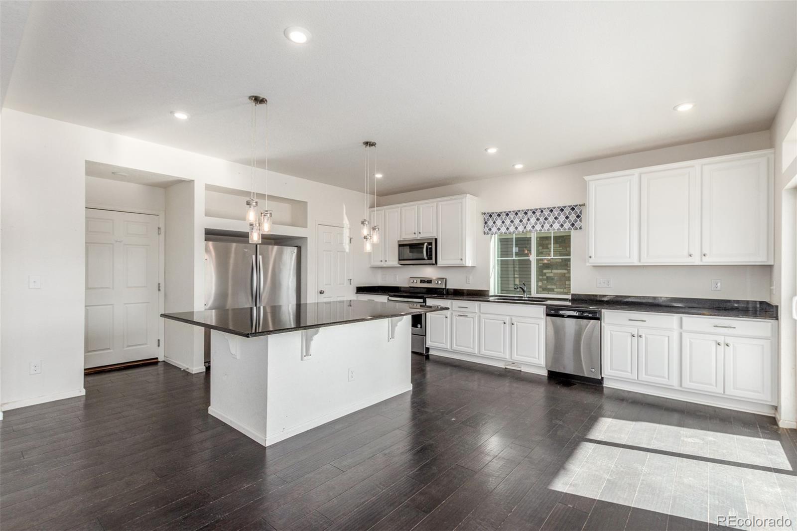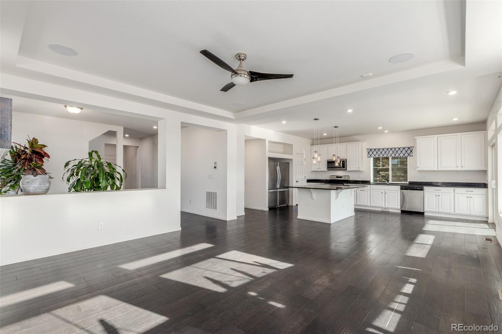 Set along a quiet greenbelt in the Adonea community, this light-filled home pairs intentional upgrades with an open, elevated layout designed for modern living. A charming front porch and mature landscaping create a warm first impression, offering a sense of arrival that feels both grounded and refined. Inside, tall ceilings, warm wood flooring, and a soft color palette establish an atmosphere of calm and cohesion. A flexible dining space unfolds just off the entry, equally suited for gatherings, a home office, or a creative studio. Beyond, the open concept living area centers around a cozy fireplace and surround sound wiring, creating a natural gathering place for evenings of music, movies, or relaxed entertaining. An upgraded southern facing window package draws abundant natural light across the main level, enhancing the home’s airy and connected feel. The kitchen anchors the heart of the home with an upgraded granite countertop package, stainless steel appliances, and an oversized island that invites conversation and connection. Ample cabinets, recessed + pendant lighting, and a walk-in pantry blend elegance with functionality. Upstairs, three bedrooms and a versatile loft provide room to retreat, recharge, or reimagine. The primary suite introduces a contemporary barn door that opens to a serene ensuite with dual granite sinks and a spacious walk-in closet, creating a private sanctuary at the end of the day. Downstairs, the unfinished basement presents a canvas for future expansion. Outdoors, a covered patio extends the living space into the backyard, offering an inviting setting to unwind while overlooking the peaceful greenbelt. The 2-car garage includes a 240v EV charger, seamlessly blending modern convenience with forward thinking design. This luxurious and open Aurora home delivers an elegant lifestyle rooted in light, space, and thoughtful upgrades, where every detail has been curated to support a life well lived.