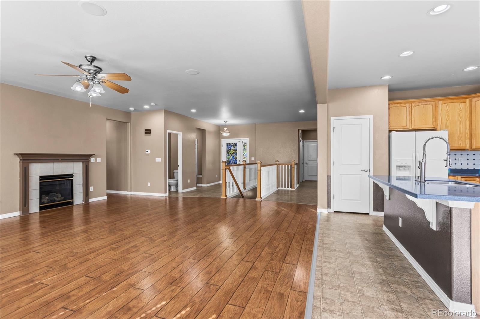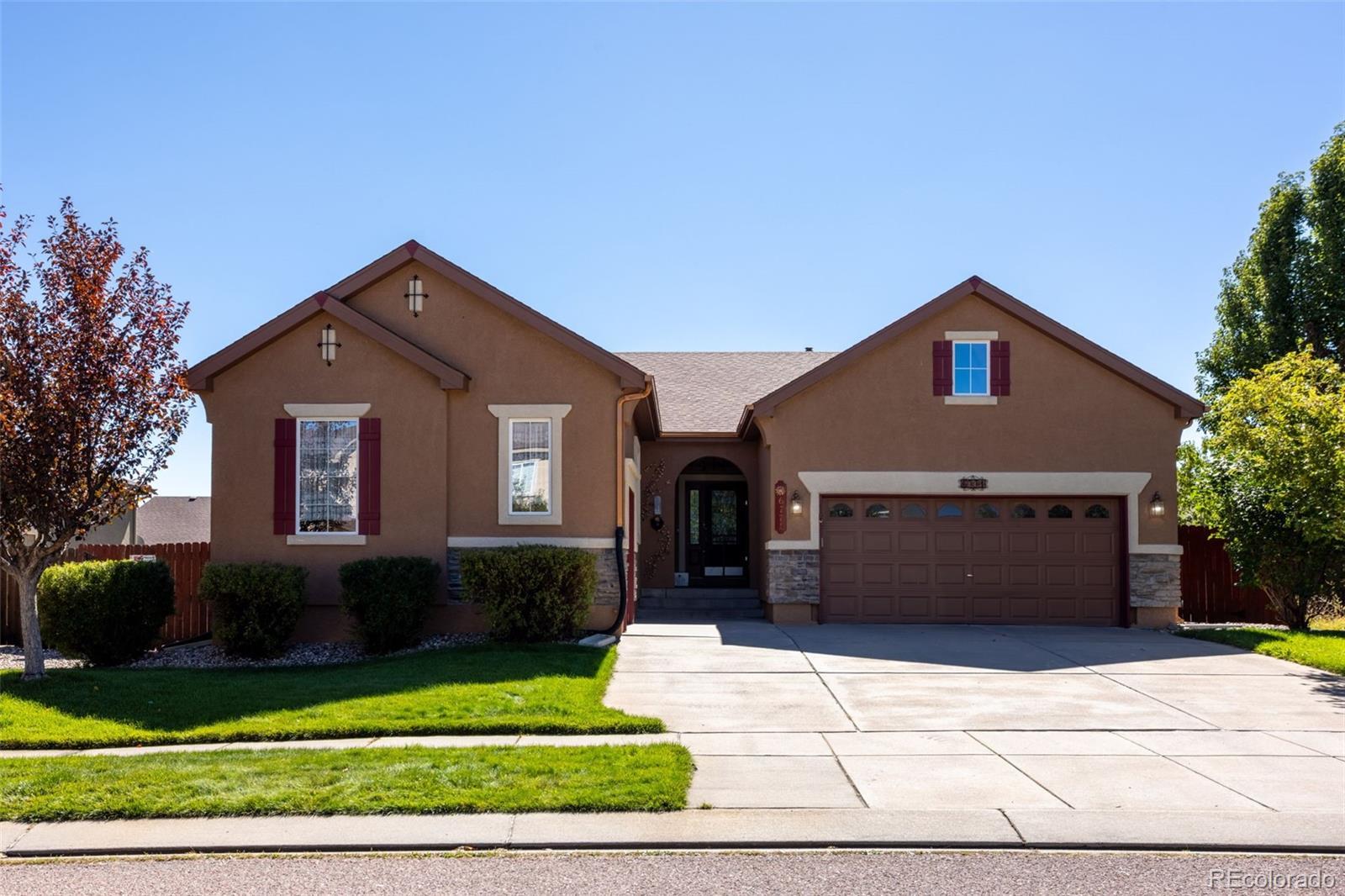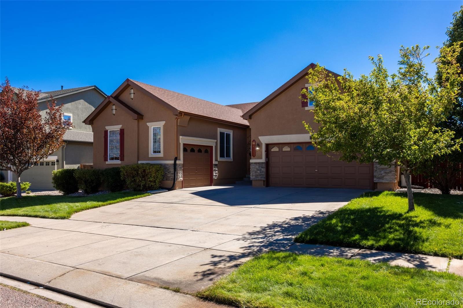 Welcome to this spacious 6-bedroom, 4-bath, 3-car garage home in Ridgeview at Stetson Hills, lovingly maintained by its original owners. Ideally located in the heart of town with easy access to CO-21, this property offers convenience and comfort in a highly desirable neighborhood. True main-level living, featuring LVP flooring throughout most of the main level (excluding kitchen, baths, and laundry). The primary suite includes a luxurious 5-piece bath with Corian counters, dual vanities, a soaking tub, walk-in shower, and a generous walk-in closet. A large main-level laundry room with utility sink adds to the convenience. Bedrooms 2 and 3 are connected by a Jack-and-Jill bath with double vanities, making it an excellent layout for family or guests. The inviting family room centers around a cozy gas fireplace, while the bright kitchen offers a pantry, eat-in nook, Corian counters, and plenty of workspace along with walk-out access to the deck. Downstairs, the finished garden-level basement boasts a spacious rec room, three additional bedrooms, a full bath with dual vanities, and abundant storage in the furnace room. Outside, the beautifully landscaped backyard provides a private oasis perfect for relaxing or entertaining. The home also features a covered front porch, attached 2-car garage, and an additional attached 1-car garage for extra storage or parking. With its thoughtful layout, ample space, and central location, this home is a perfect blend of practicality and comfort. *HWH 2022**EV charger installed in 2018**basement finished in 2017**roof 2016**LVT flooring throughout**new furnace installed 2025**furnace/AC/fireplace serviced in 2025**south side windows are UV coated** INCLUSIONS: Ring Doorbell, Pool Table with Ping Pong top Set a showing and don't miss this gem!