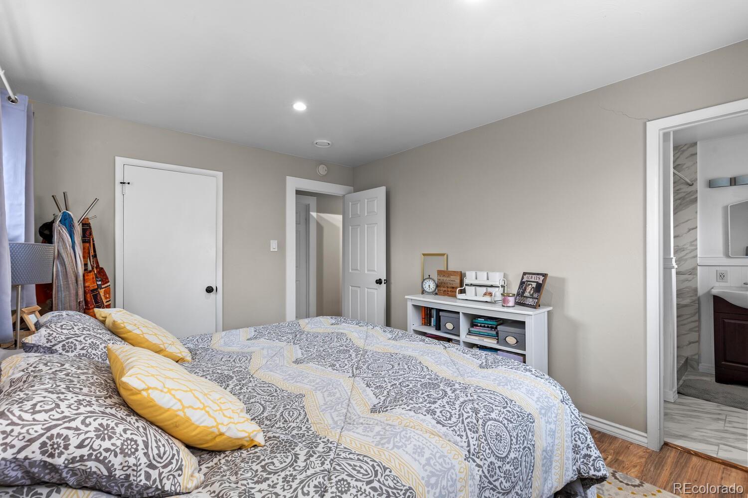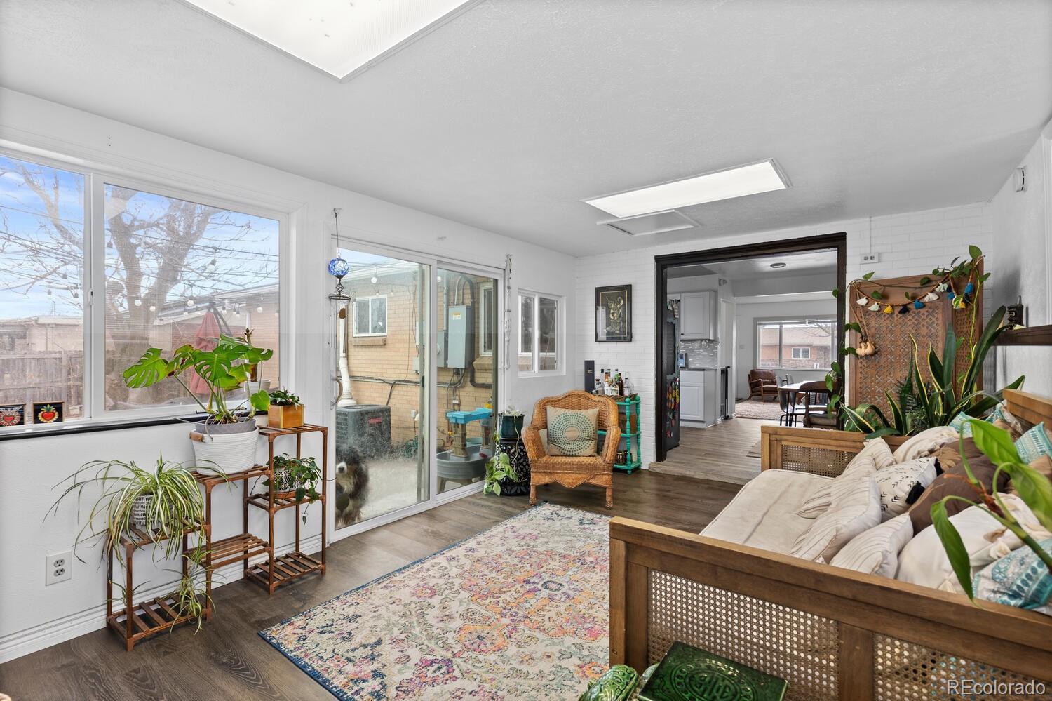 Fully updated ranch in popular Harvey Park South. As you enter you are greeted with beautiful hardwood floors and an open and inviting floor plan! One of the larger homes in the neighborhood with over 2,200 finished sq. ft. including over 1,300 above ground and a fully finished basement! This is a 4 bed and 3 bath, with a rare attached two-car garage, and a large corner lot with great backyard space. The updated kitchen features granite countertops, stainless steel appliances, new modern cabinets, and opens conveniently to a great dining space. There are 3 spacious bedrooms on the main level, including a gorgeous primary suite with an updated attached bath. The main level also includes a nicely updated full bath. You will love the unique, bright, and inviting breezeway/sunroom just off the kitchen, a wonderful bonus space for morning coffee or reading. The basement includes a huge fourth bedroom, a remodeled full bath, a large media space, and two bonus rooms, ideal for non-conforming bedrooms, craft rooms or whatever you need them to be. Buyer will benefit from newer windows, paid off solar panels, a radon system, and newer central A/C. Great location near parks, dining, and shopping, with easy access to Downtown and Hwy 285 to head up to the mountains. Set your showing today!