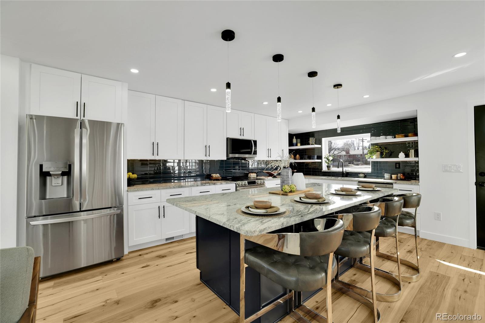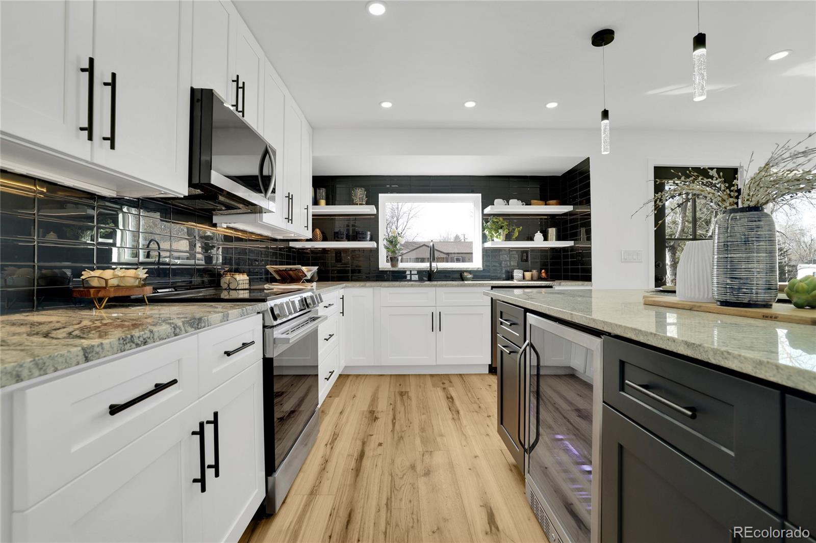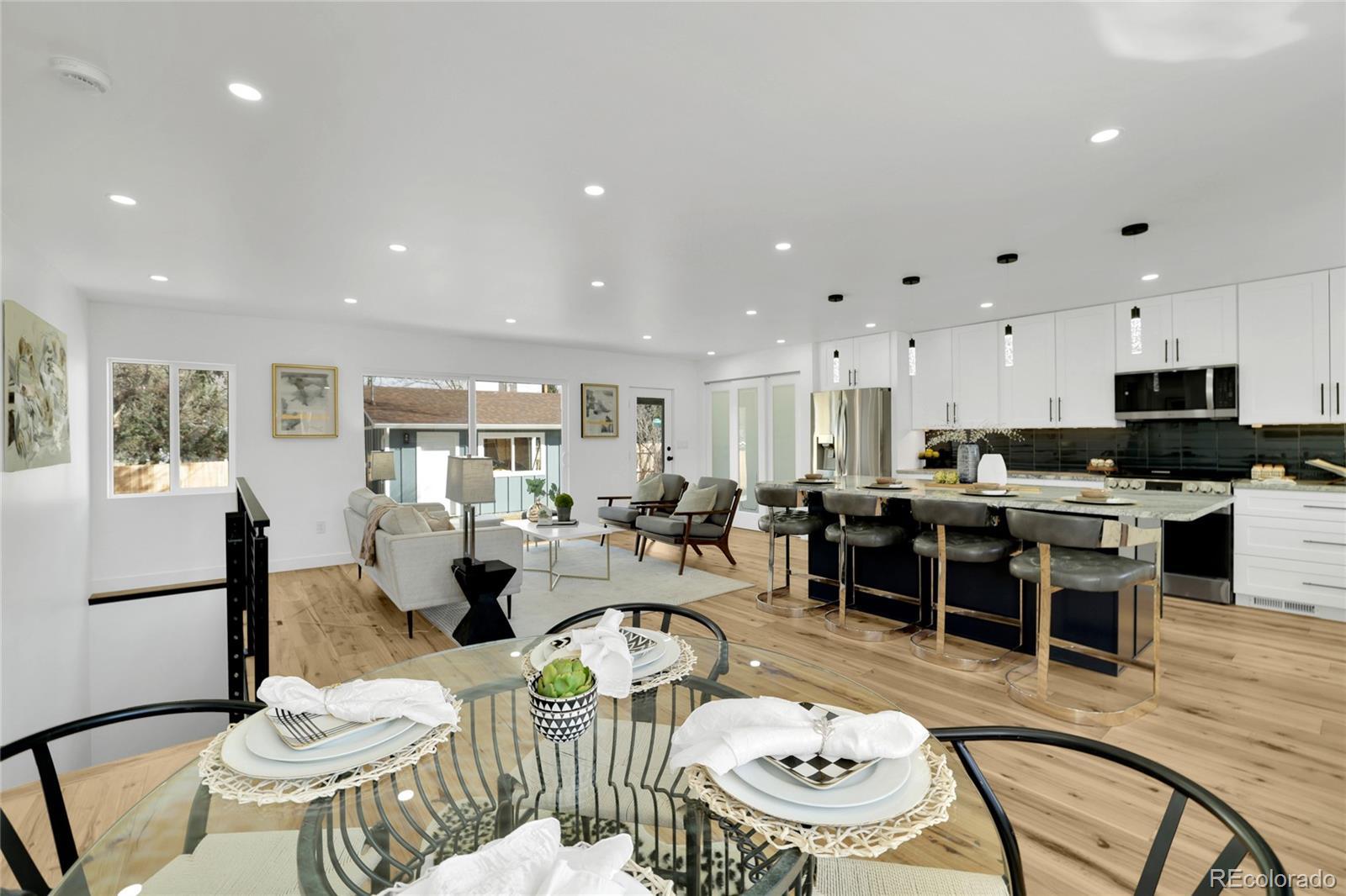 Welcome home! This fully renovated Virginia Village gem combines modern style with comfort and everyday living. From the moment you walk in, you’ll notice the bright, open-concept layout, wide-plank hardwood floors, and recessed lighting. The kitchen truly defines the home, featuring crisp white cabinetry, stainless steel appliances, granite countertops, a bold tile backsplash, and a large island with seating; perfect for hosting friends or casual weeknight dinners. It flows seamlessly into the dining area and living room, where oversized windows and sliding glass doors fill the space with natural light and connect you to the backyard. The bedrooms are well-sized and versatile, ideal for guests, a home office, or growing needs. Bathrooms have been thoughtfully updated with modern tile, sleek vanities, and quality fixtures. Stylish details like glass pantry doors, contemporary railings, and curated finishes throughout add character without sacrificing function. Step outside to a private, fully fenced yard with space to entertain, relax or let pets roam wild. Located close to parks, Cherry Creek, shopping, dining, and with easy access to I-25 and downtown Denver, this move-in-ready home offers the perfect blend of style, comfort, and convenience.
