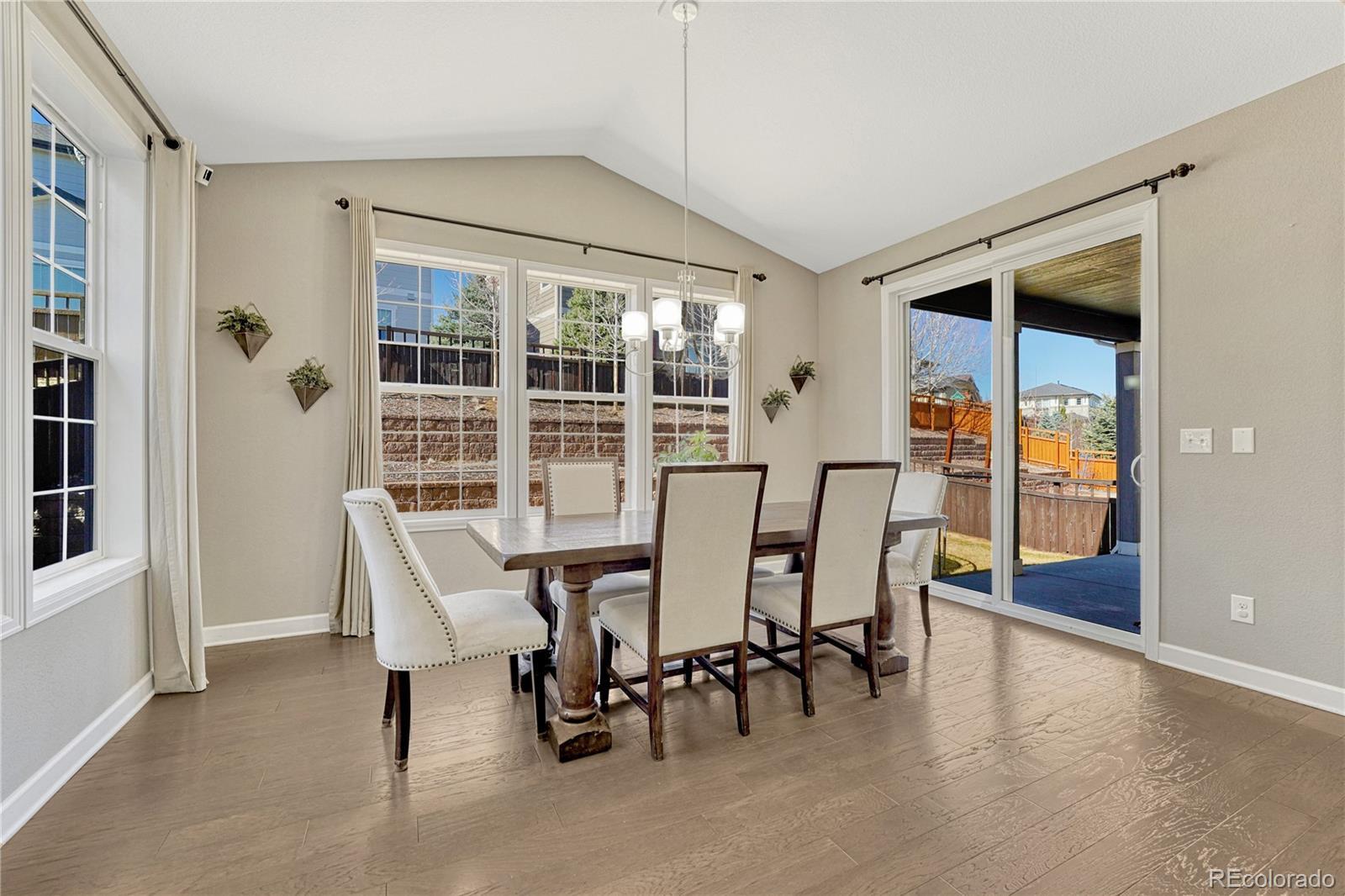 STUNNING UPGRADED HOME IN THE MEADOWS WITH OVER 4,100 SQ FT OF SPACE AND ROOM TO GROW! This beautifully maintained home offers an open, flowing floor plan designed for both everyday comfort and effortless entertaining. The main level showcases a magazine-worthy gourmet kitchen featuring a massive quartz slab island with seating for 4–6, upgraded stainless steel appliances including double ovens and a 5-burner gas cooktop, soft-close cabinetry, designer pendant lighting, white subway tile backsplash, and a spacious walk-in pantry. The bright dining area and sunroom are filled with natural light from large picture windows and vaulted ceilings. The great room features a cozy gas fireplace with surround and is wired for surround sound—perfect for relaxing evenings or entertaining guests. A private office with double doors completes the main level. Upstairs you’ll find a versatile loft ideal for a playroom, media space, or second living area, along with four spacious bedrooms and a convenient laundry room. The luxurious primary suite features a tray/coffered ceiling with crown molding, ceiling fan, a beautifully upgraded 5-piece bath, and a large walk-in closet. Step outside to a fully fenced backyard with a flat play area, and a covered patio with a gas line ready for your BBQ grill or future hot tub—perfect for enjoying Colorado evenings. The full unfinished basement offers an excellent layout for future expansion, providing the opportunity to add additional living space and build instant equity. Located in The Meadows in historic Castle Rock, residents enjoy incredible amenities including pools, parks, miles of trails, tennis and pickleball courts, and access to The Grange community center. Conveniently close to schools, shopping, restaurants, golf courses, the Outlets at Castle Rock, and quick access to I-25 and the Denver Tech Center. This move-in ready home truly has it all—schedule your showing today!
