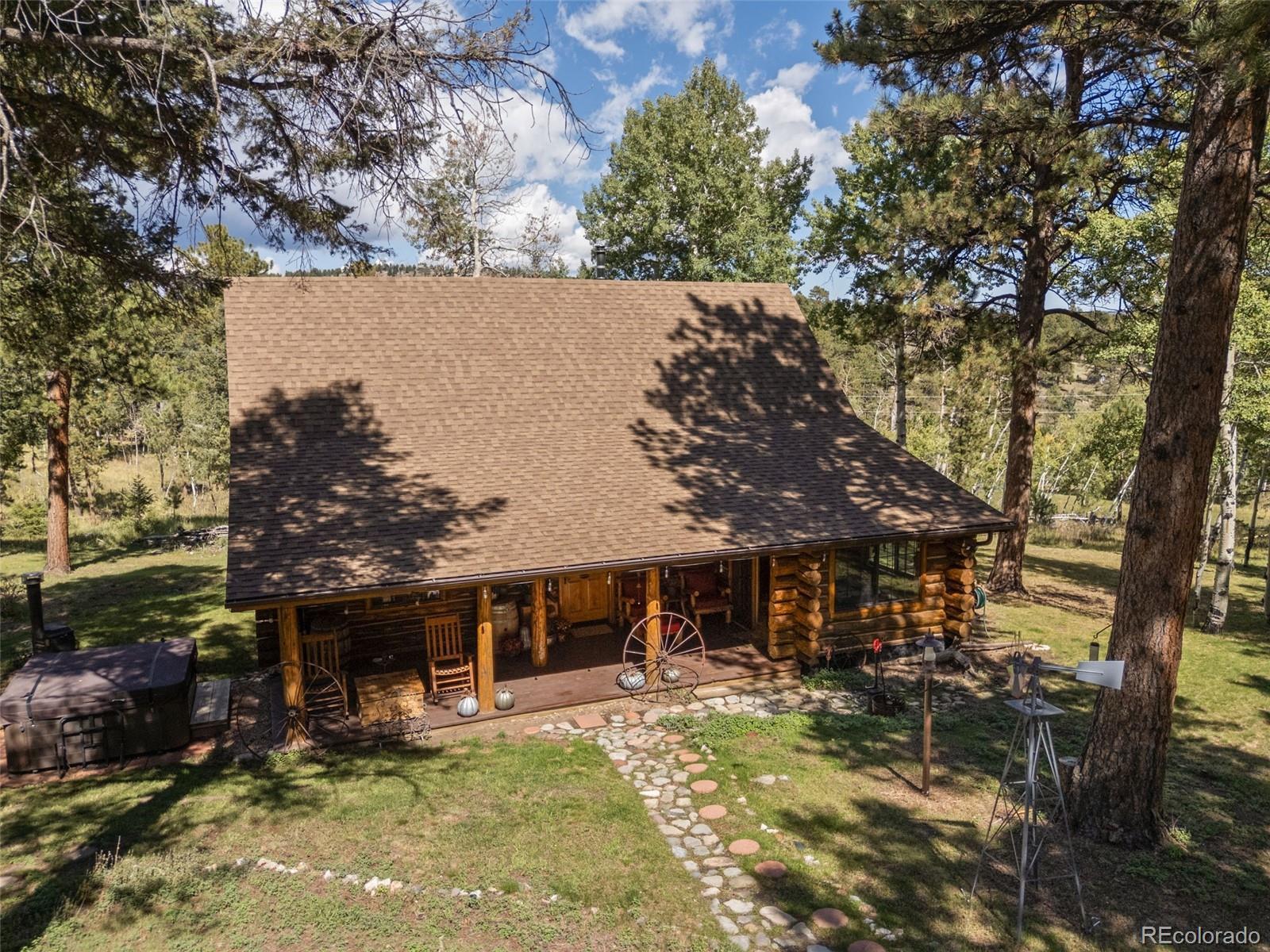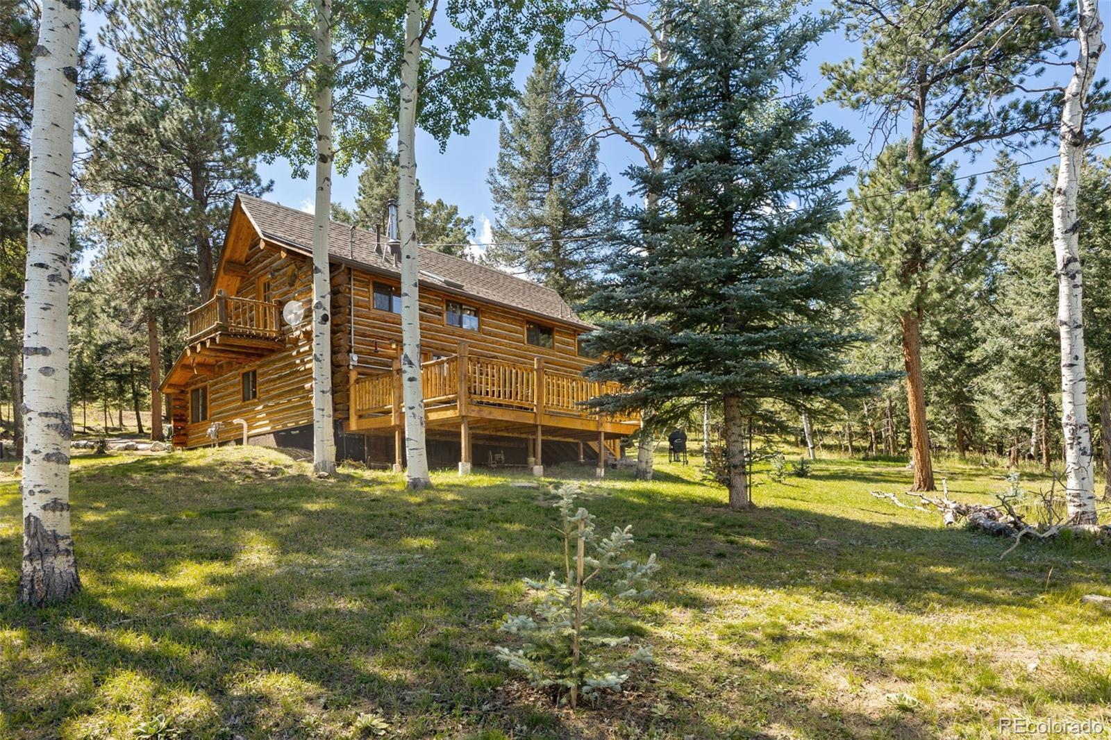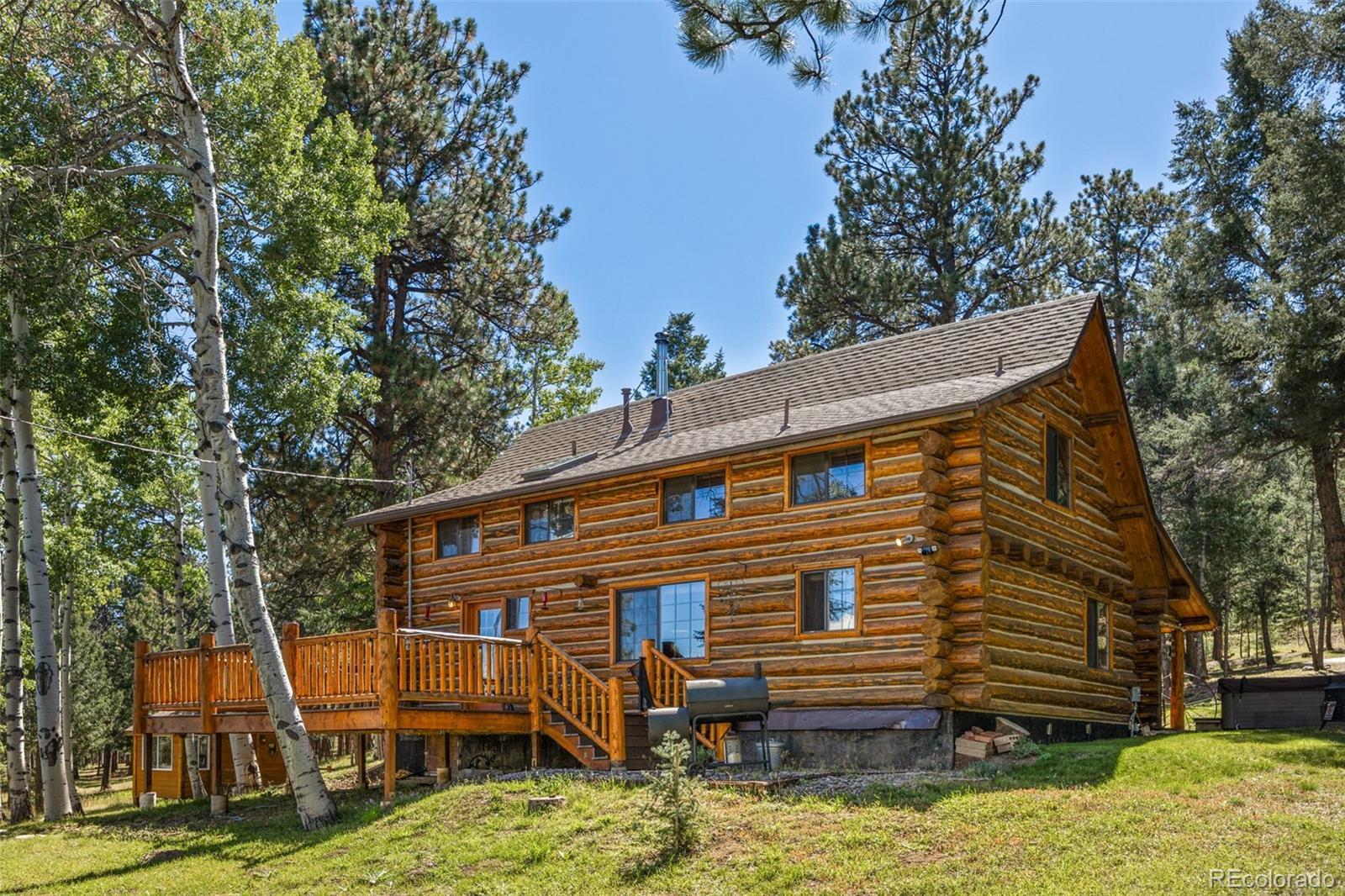 A true Colorado log cabin, custom built with hand-hewn logs and filled with unique character and charm. Nestled among mature aspens and pines on 2.25 gently sloping acres, this mountain retreat feels magical, peaceful, and secluded. Inside, you’ll find rustic beams, warm wood tones, and custom-crafted details throughout — from the cabinetry to the doors, every feature was thoughtfully designed to reflect the spirit of mountain living. While undeniably rustic, the cabin is equipped with modern amenities for comfort and convenience, blending timeless craftsmanship with everyday livability. The spacious kitchen, stone fireplace, and multiple decks make it perfect for gathering or simply soaking in the stillness of the Rockies. Sunrises here are nothing short of spectacular, painting the sky with color as the forest comes to life. Recent updates include a new furnace with Nest thermostat, new water heater and pressure tank, updated bathrooms with new shower, tub, and fixtures, new decks on both the main cabin and tiny cabin, asphalt driveway, new interior lighting, and exterior lighting upgrades. The property also includes a finished outbuilding with electricity (no plumbing or permanent heat) — a versatile space for a studio, hobby area, or quiet retreat. For more room, the adjacent 2.25-acre lot is also available, a rare chance to expand your mountain getaway. Successfully operated as a part-time seasonal Airbnb, the cabin earned Superhost status and 117 five-star reviews. Guests often described it as magical, cozy, and one-of-a-kind — the perfect balance of rustic charm and modern comfort. Outdoor recreation abounds with hiking trails throughout Bailey and the surrounding area, nearby fishing lakes and streams, and easy access to Staunton State Park, Kenosha and Guanella Pass, plus multiple ski areas all within a short drive. This distinctive property offers year-round adventure in the heart of Colorado.
