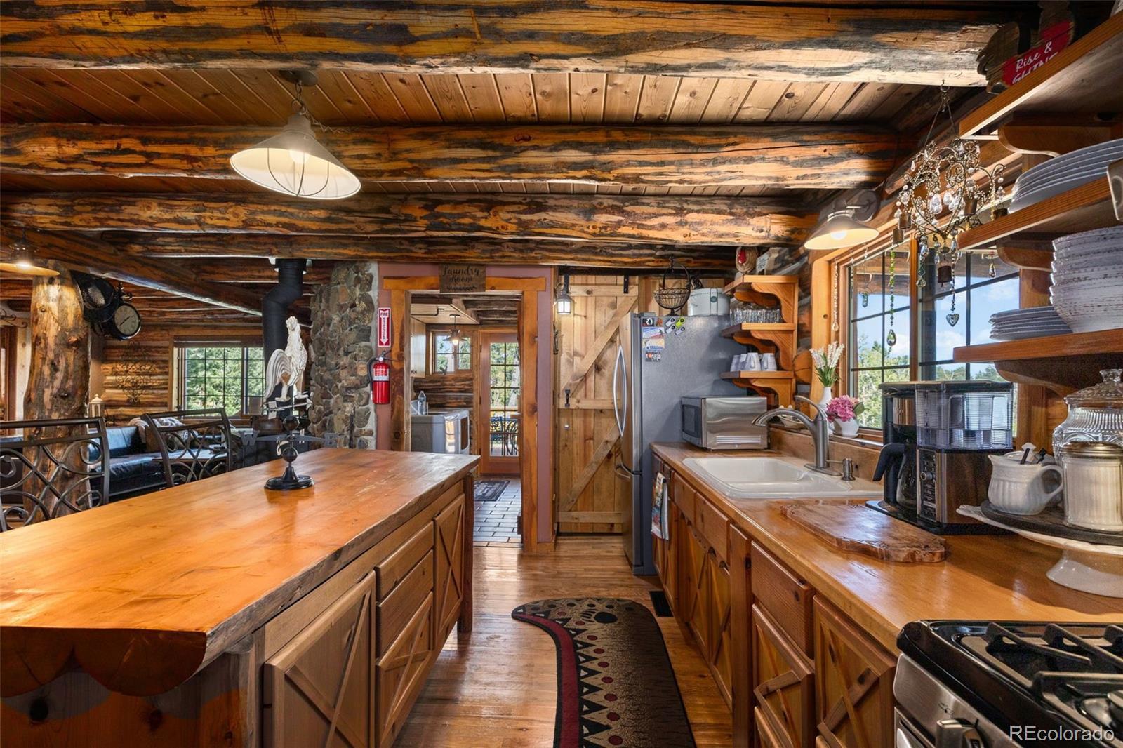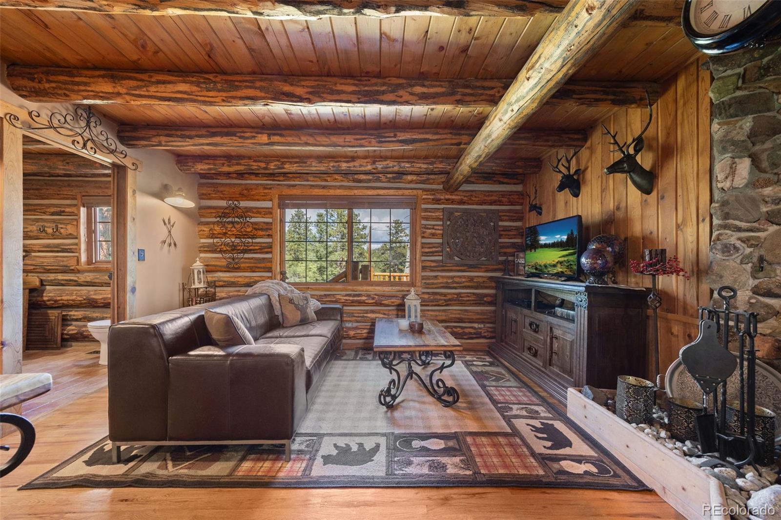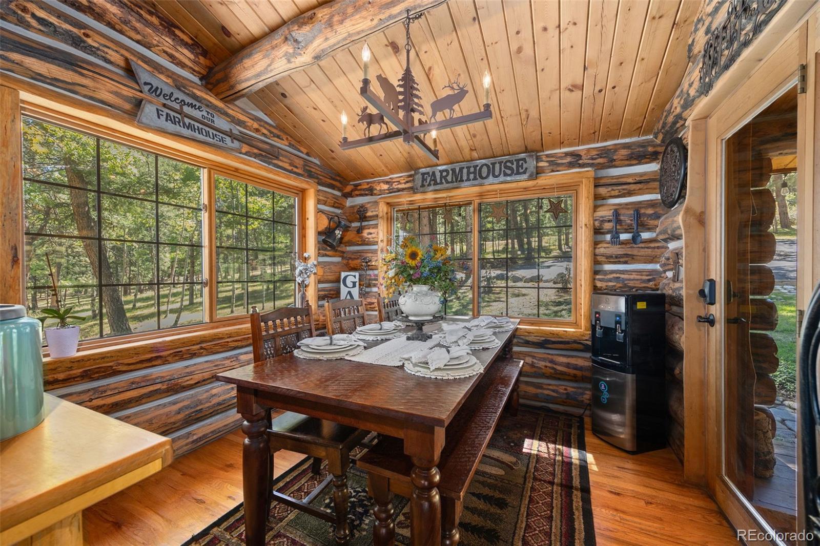 A true Colorado log cabin, custom built with hand-hewn logs and filled with unique character and charm. Nestled among mature aspens and pines on 2.25 gently sloping acres, this mountain retreat feels magical, peaceful, and secluded. Inside, you’ll find rustic beams, warm wood tones, and custom-crafted details throughout — from the cabinetry to the doors, every feature was thoughtfully designed to reflect the spirit of mountain living. While undeniably rustic, the cabin is equipped with modern amenities for comfort and convenience, blending timeless craftsmanship with everyday livability. The spacious kitchen, stone fireplace, and multiple decks make it perfect for gathering or simply soaking in the stillness of the Rockies. Sunrises here are nothing short of spectacular, painting the sky with color as the forest comes to life. Recent updates include a new furnace with Nest thermostat, new water heater and pressure tank, updated bathrooms with new shower, tub, and fixtures, new decks on both the main cabin and tiny cabin, asphalt driveway, new interior lighting, and exterior lighting upgrades. The property also includes a finished outbuilding with electricity (no plumbing or permanent heat) — a versatile space for a studio, hobby area, or quiet retreat. For more room, the adjacent 2.25-acre lot is also available, a rare chance to expand your mountain getaway. Successfully operated as a part-time seasonal Airbnb, the cabin earned Superhost status and 117 five-star reviews. Guests often described it as magical, cozy, and one-of-a-kind — the perfect balance of rustic charm and modern comfort. Outdoor recreation abounds with hiking trails throughout Bailey and the surrounding area, nearby fishing lakes and streams, and easy access to Staunton State Park, Kenosha and Guanella Pass, plus multiple ski areas all within a short drive. This distinctive property offers year-round adventure in the heart of Colorado.