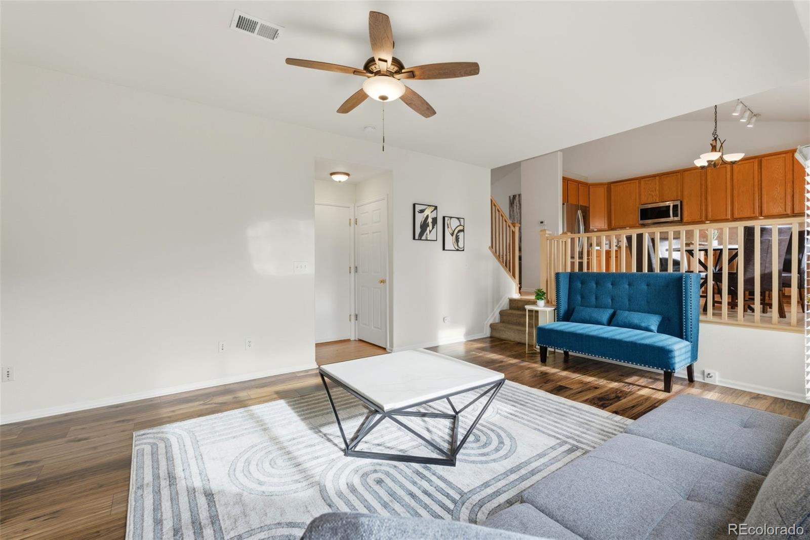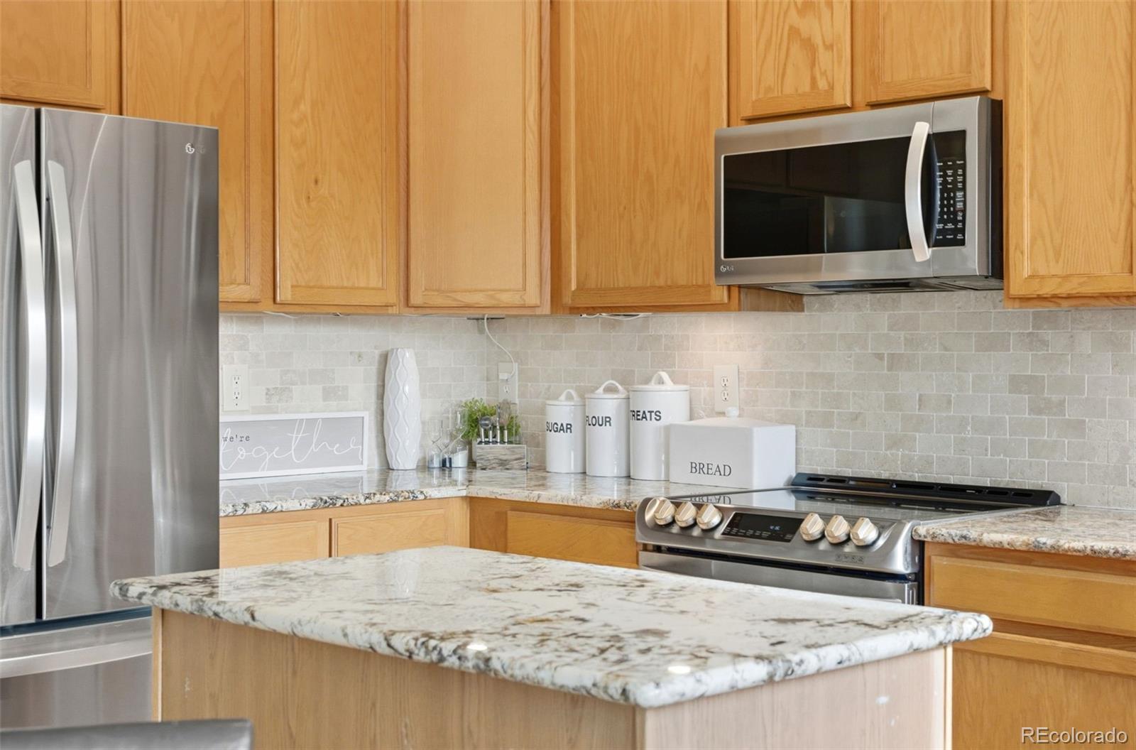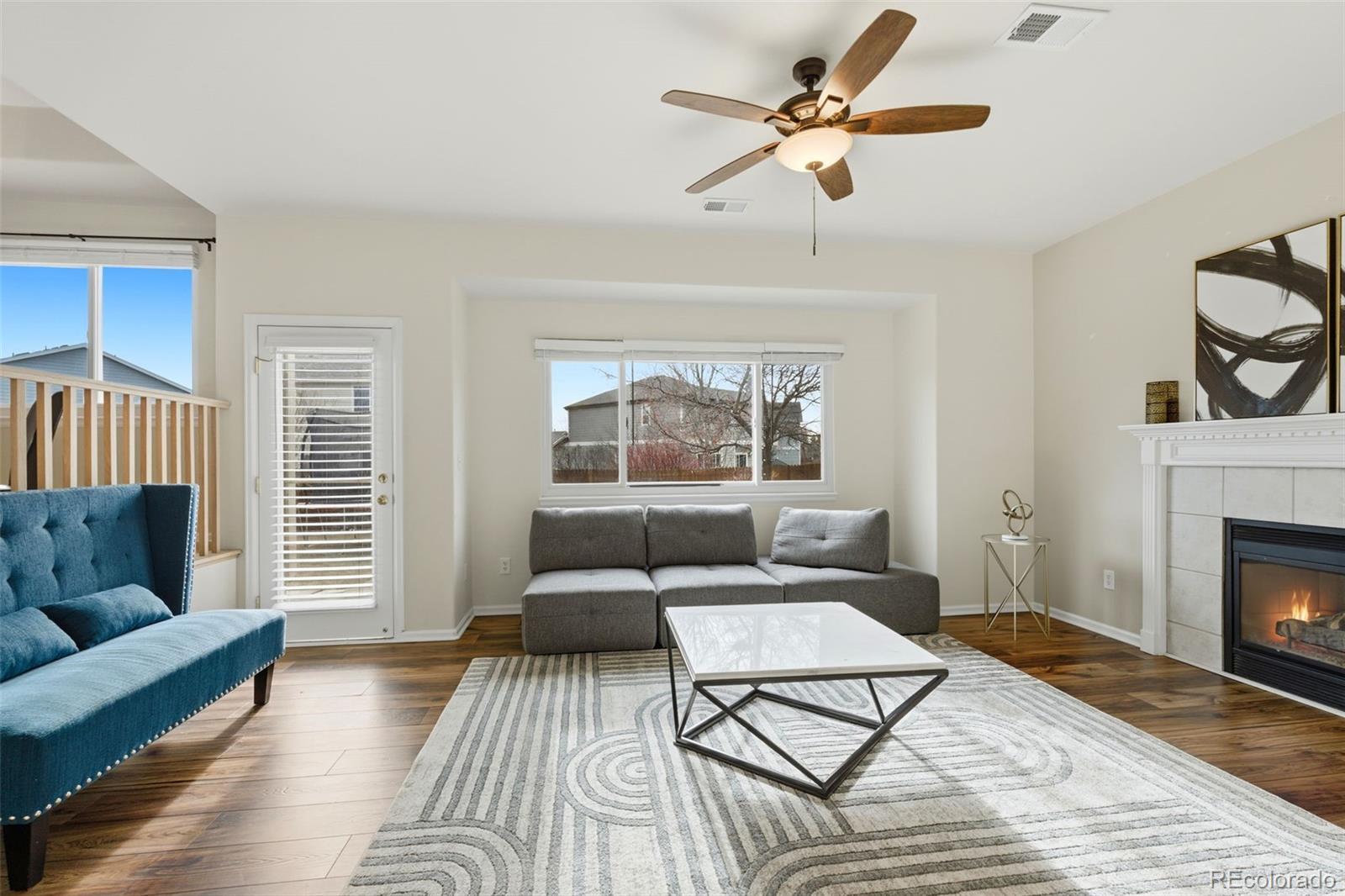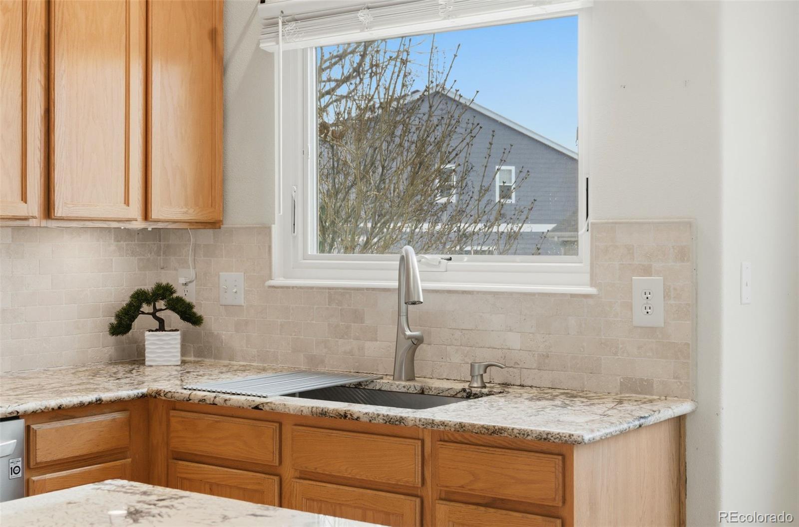 This beautifully maintained 3-bedroom, 2.5-bath home is located in the desirable Tuscany neighborhood, within the highly sought-after Cherry Creek School District, feeding into Grandview High School. From the moment you arrive, you’ll notice the inviting curb appeal highlighted by professional landscaping and a welcoming front patio. Inside, the home offers a bright and open living space featuring vaulted ceilings and a bay window that flows seamlessly into the updated eat-in kitchen. The kitchen is well-appointed with granite countertops, a travertine backsplash, stainless steel appliances, and updated fixtures, making it both functional and stylish. Just off the kitchen, the spacious family room provides a comfortable gathering space with a cozy gas fireplace. The primary suite offers a private retreat with a generous layout and a five-piece bathroom. Additional living space is found in the finished basement, completed in 2020, offering flexibility for a media room, home office, or recreation area. Step outside to a backyard designed for relaxation and entertaining, featuring a manicured lawn and mature trees that create a peaceful, park-like setting. This home has seen extensive updates in recent years, including newer windows, roof, furnace, air conditioning, kitchen appliances, flooring throughout the upper level, fresh interior and exterior paint, a whole-house humidifier, and updates to the kitchen and primary bath. Wood, luxury plank vinyl, and Pergo flooring throughout the home are all in excellent condition. Thoughtfully updated and truly move-in ready, this home is one you won’t want to miss—schedule your showing today.
