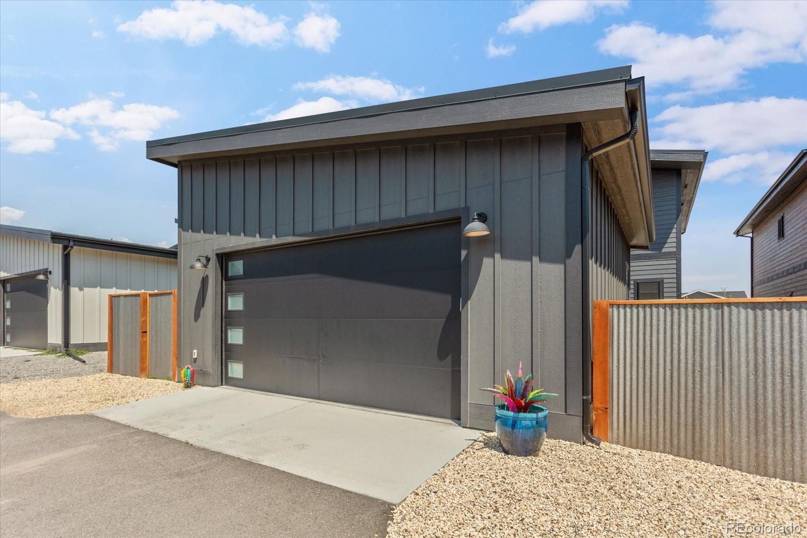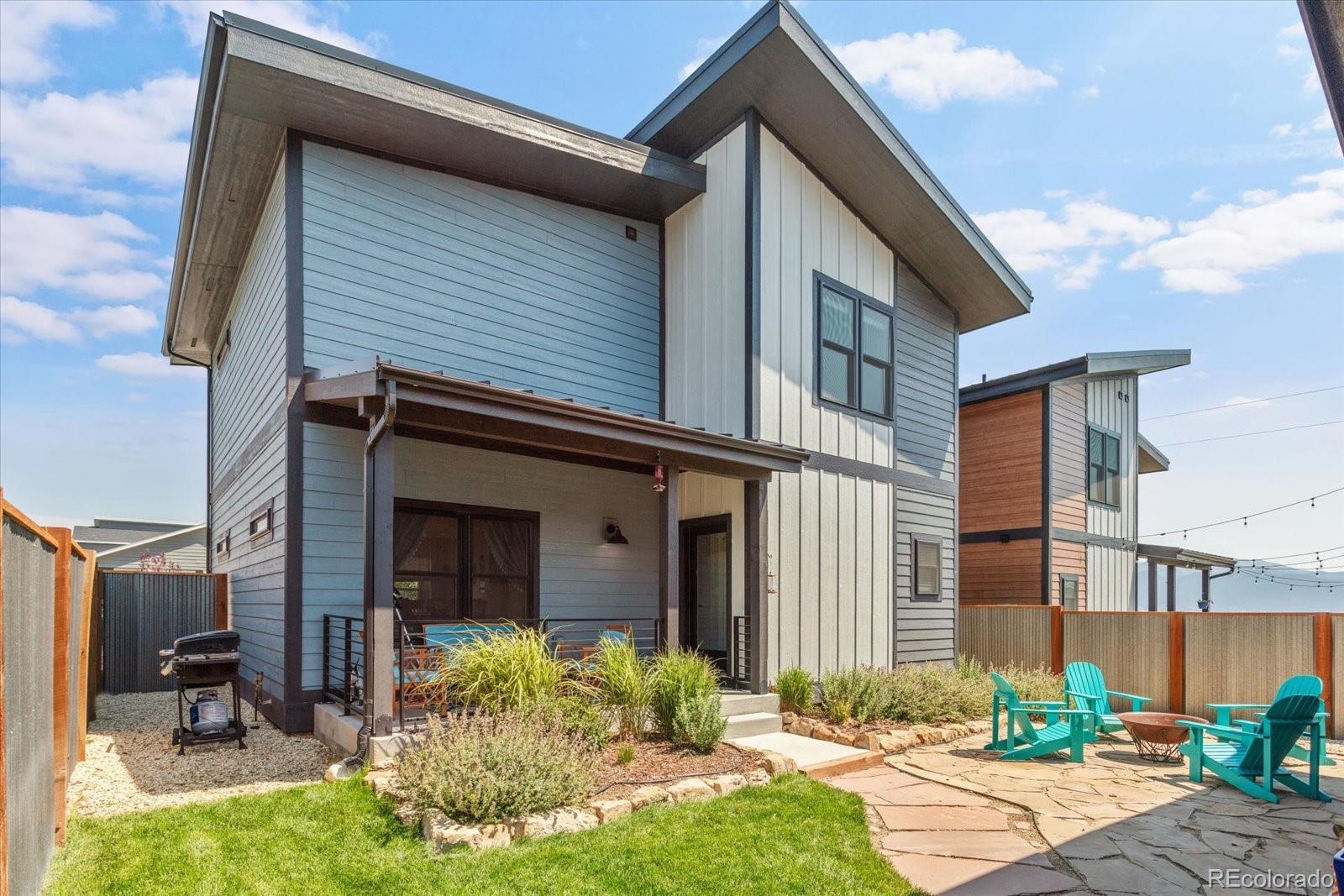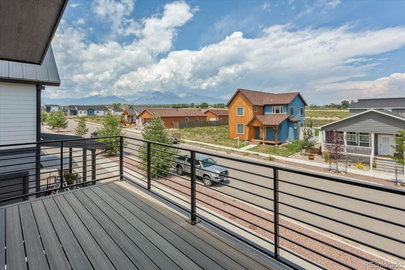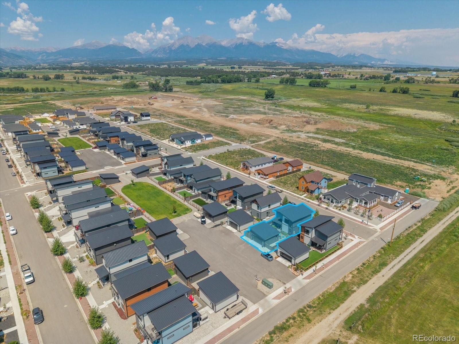 This beautiful 2,048 square-foot Harvard unit at Poncha Meadows offers an inviting open-concept main level, perfect for entertaining. The kitchen is designed for optimal function and storage, featuring soft-close cabinets, stainless steel appliances including an upgraded Bosch dishwasher, a spacious pantry, and a large island with seating. The first floor includes a dining room, family and living room, and a convenient half bath near the laundry area. The interior has been newly painted to create a warm and colorful ambiance. Upstairs, you'll find three large bedrooms and a versatile landing area, ideal for a desk or workout area. The primary bedroom boasts an attached bathroom with double sinks, linen storage, a spacious closet, and a balcony with extraordinary mountain views. The second upstairs bedroom has a full en-suite bathroom, a large closet, and mountain views. The third bedroom offers eastern views, and there is a 3/4 bathroom at the top of the landing. The backyard features a covered back porch seating area and has been thoughtfully landscaped with native Salida plants and an irrigation system. There's also a gorgeous patio with pavers and a fire pit area, perfect for outdoor gatherings. The extended privacy fencing and irrigated lawn make it ideal for pets or family play. This home includes a two-car detached 600 square foot garage with added storage shelves and additional overflow parking out back. The neighborhood offers a pocket park, dog run, and is within walking distance of the proposed Poncha Parks & Recreation Area. This new home is suitable for both short and long-term rentals, making it an excellent investment or a wonderful place to call home. Quartz at Poncha Meadows homes are superior modular units constructed by Fading West. These homes feature 2 x 6 framing and are built with meticulous attention to detail, ensuring high standards of energy efficiency, structural composition, and are tested to standards exceeding those of site-built homes.