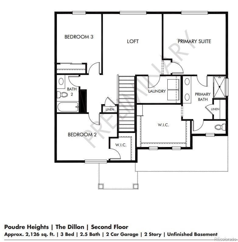 Unfinished Basement for future customization and storage! Ask a sales counselor about optional rear yard fencing!! Welcome to The Dillon, a thoughtfully designed two-story home that blends flexibility with comfort. The main floor features a versatile flex space, ideal for a home office, guest room, or creative studio, conveniently located near a powder room. Upstairs, four spacious bedrooms surround a central loft area, creating a perfect second living space for relaxing, entertaining, or gathering with family. With approximately 2,126 square feet of living space, this home offers a seamless flow and modern layout tailored to fit a variety of lifestyles. A two-bay garage and open-concept design complete the picture, making The Dillon a standout choice for those seeking both functionality and style. Meritage Homes is known for quality construction, innovative design, and exceptional energy efficiency—thanks to features like advanced spray foam insulation. With transparent, all-inclusive pricing, every home includes appliances, blinds, and designer upgrades, ensuring a truly move-in ready experience that reflects our commitment to excellence and sustainability. Nestled in the heart of Windsor, Poudre Heights offers the perfect balance of small-town charm and modern convenience. Enjoy nearby parks like Eastman Park and Windsor West Park for outdoor fun. Shop and dine at The Promenade Shops at Centerra or Windsor Town Center, just minutes away. Whether you're planning a family outing, a date night, or a quick errand run, everything you need is right around the corner!