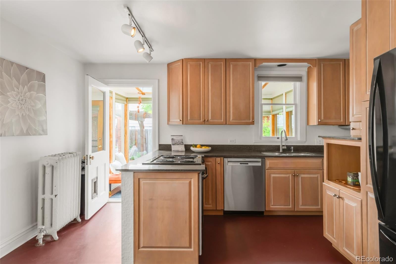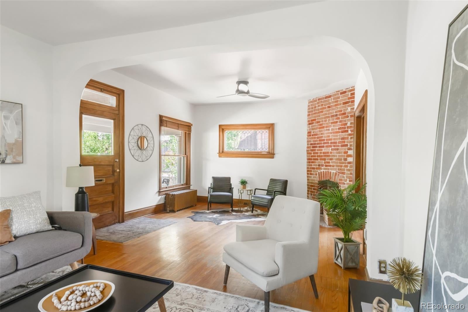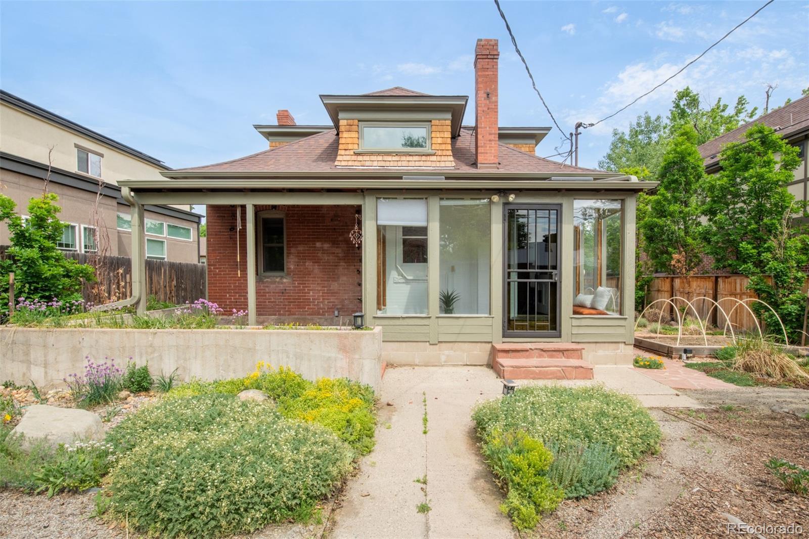 A new opportunity to make this coveted bungalow your own! Beaming with vintage charm and endless potential, this timeless home offers a rare opportunity in Denver’s acclaimed Sloan’s Lake neighborhood. Enjoy easy access to adjacent West Highlands acclaimed dining, cafes and shops, while Sloan’s Lake Park, with its grassy parkland, miles of trails and both city and mountain views, is just a short, 3 block walk. Set on a lushly landscaped, oversized lot, this charming 1910 brick and stone residence showcases classic architectural details, including a generous front porch, leaded glass windows, gleaming wood trim and floors, and exceptionally decorative metal radiators. Fresh interiors highlight expansive living spaces, including a bright living room with wide windows, exposed brick fireplace with working gas logs and new tile hearth, and original wood pocket doors opening to a gracious formal dining room with chic lighting. The warm wood kitchen with classic cabinetry and granite counters leads directly to the delightful sunroom, perfect for all your pots and plants. The main floor primary ensuite offers convenience and accessibility, while the second story features an all new, stylish bathroom, two cheery bedrooms with luxurious new carpet and a sunny loft that would host an excellent home office. Outside, a cozy pergola for al fresco dining, numerous garden beds, and a brick arch with wrought iron gate lend the garden old world charm, and the detached garage with overhead storage offers added appeal. Newer water heater, roof and gutters, and 2nd floor Marvin windows elevate and enhance the stand out vintage features.