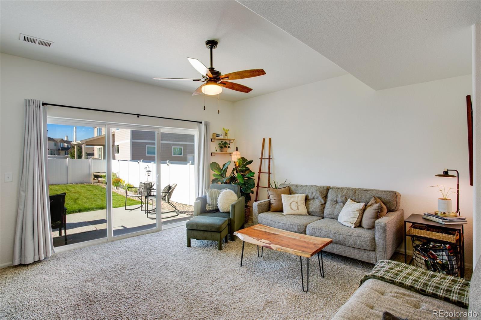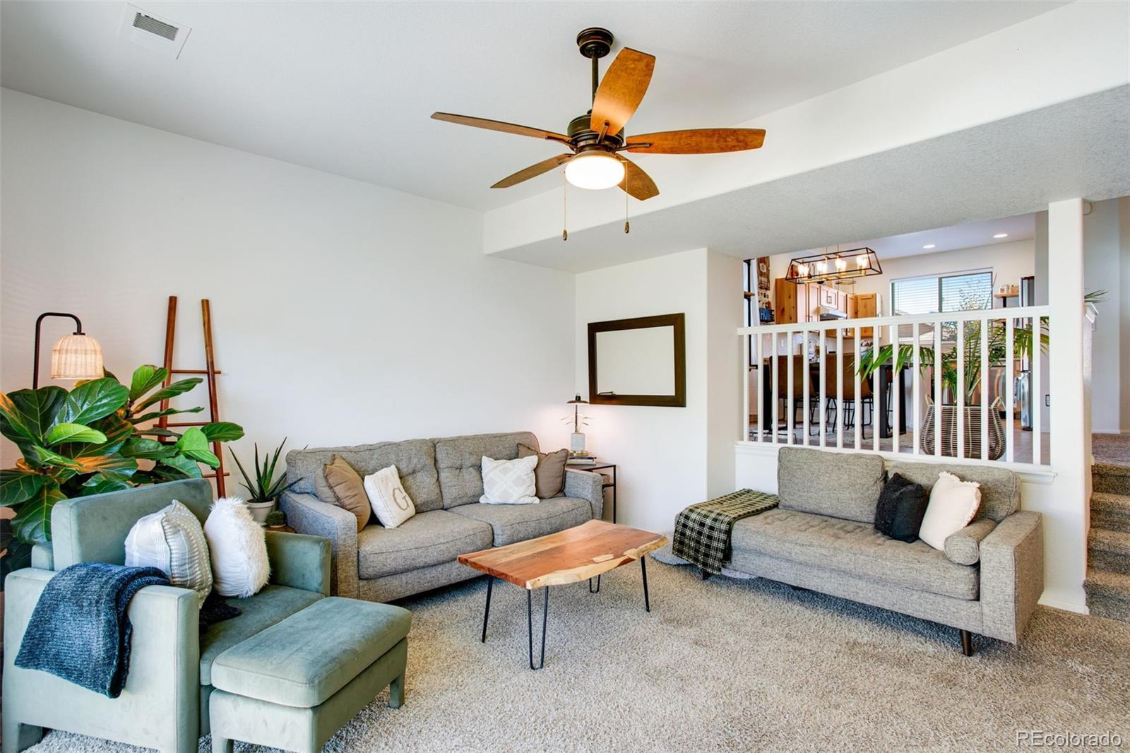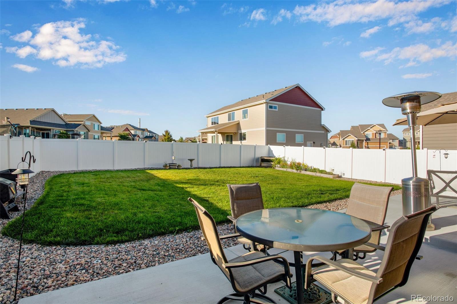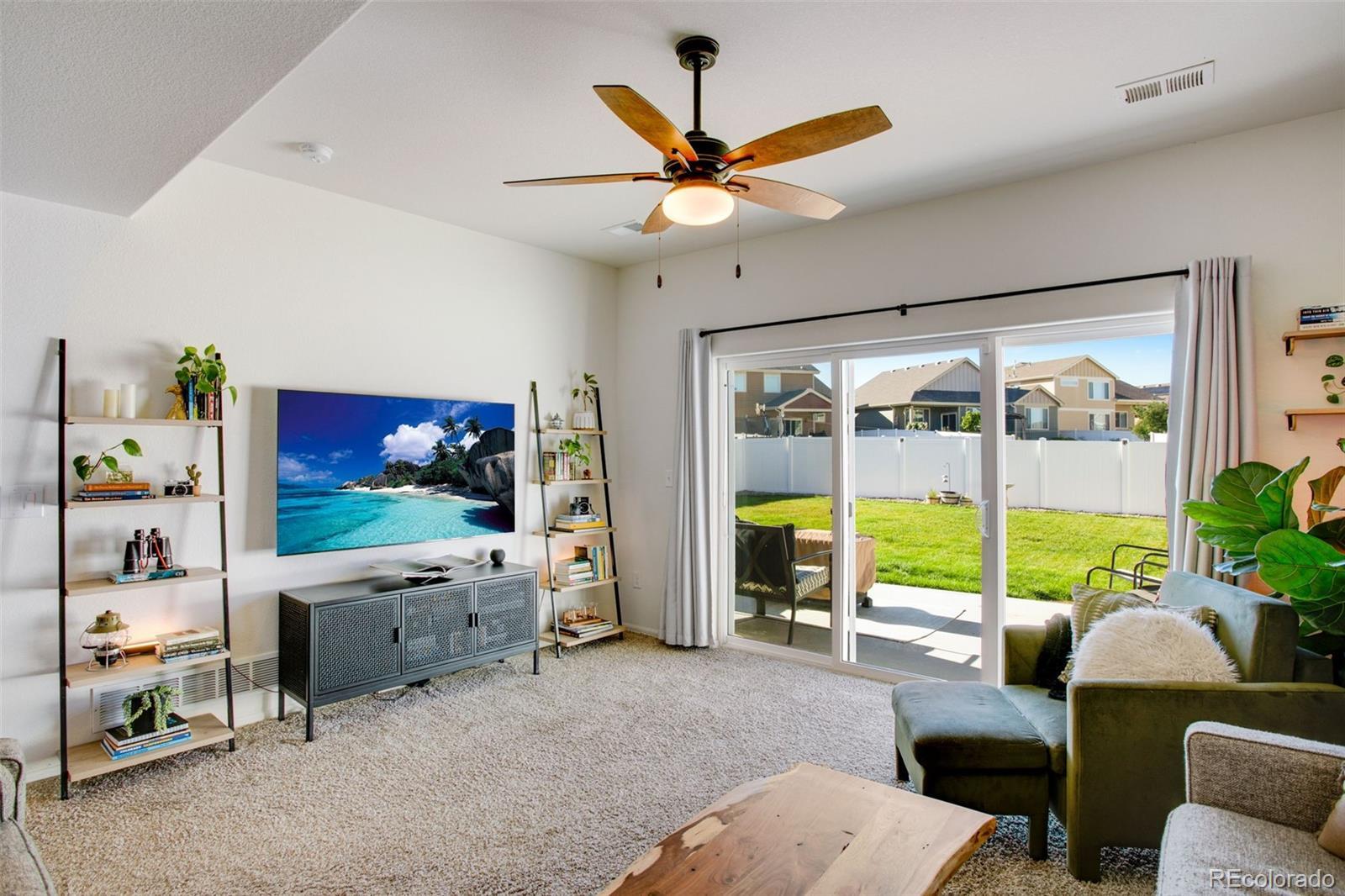 Elegant living in this better than new home with thoughtful upgrades included throughout. This home has 3 large bedrooms and 3 well-appointed bathrooms, the layout is perfect for entertaining and quiet nights in. Recent upgrades elevate every room: upgraded wood-style flooring, carpet, extended patio, plus all-new light fixtures, custom shelving, ceiling fans, and window coverings. The windows throughout bring in all the natural light you could want and create opportunity for soaking in Colorado's changing seasons. Downstairs, the un-finished basement is ready for your improvement. Additional highlights include a tandem 3-car garage and landscaping that offers beauty and convenience without too much effort. Come see what the neighborhood has to offer with surrounding conveniences, parks, pool, and more! Whether you're gathering with friends or finding your own quiet corner, this home is for you!