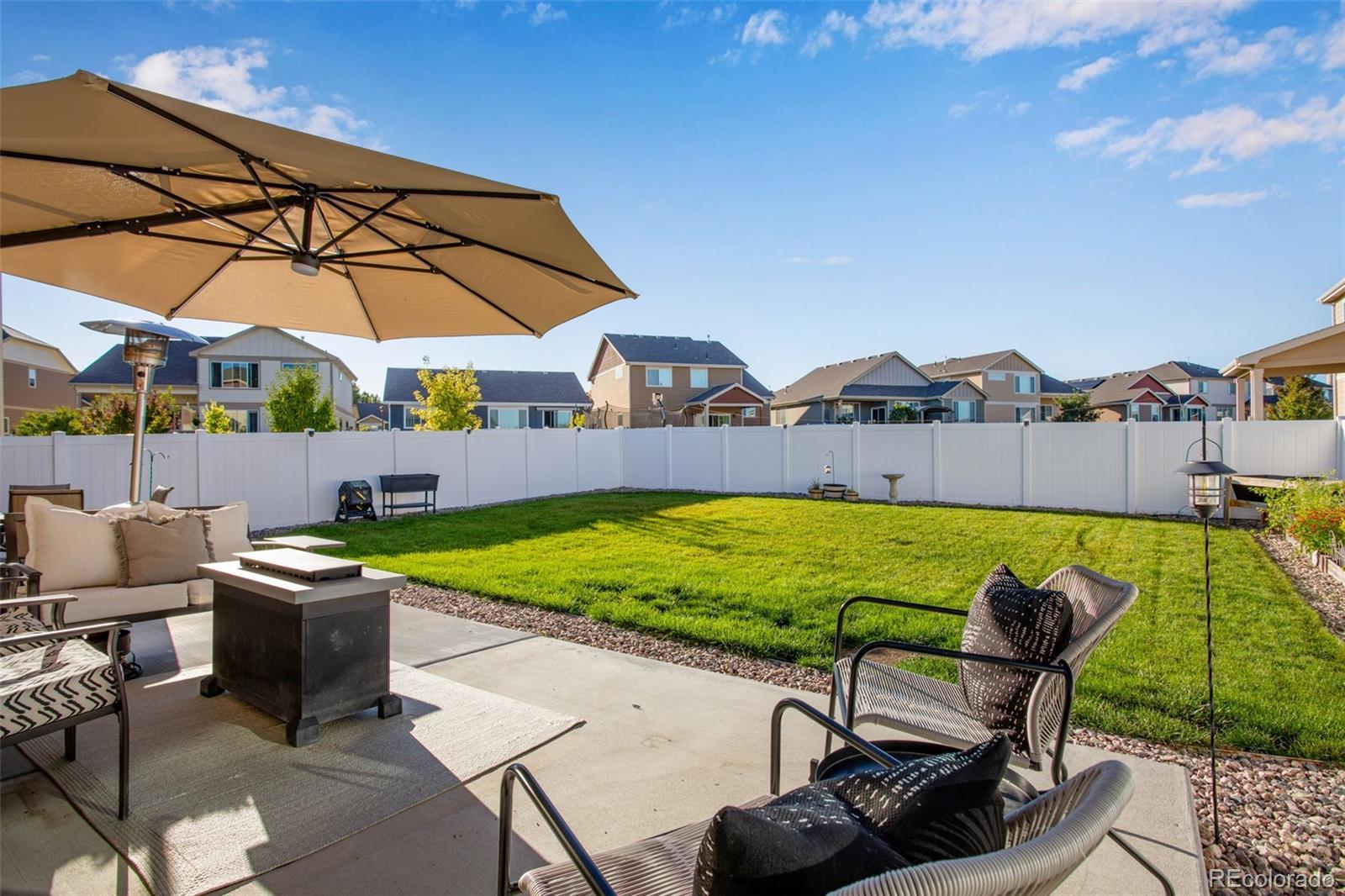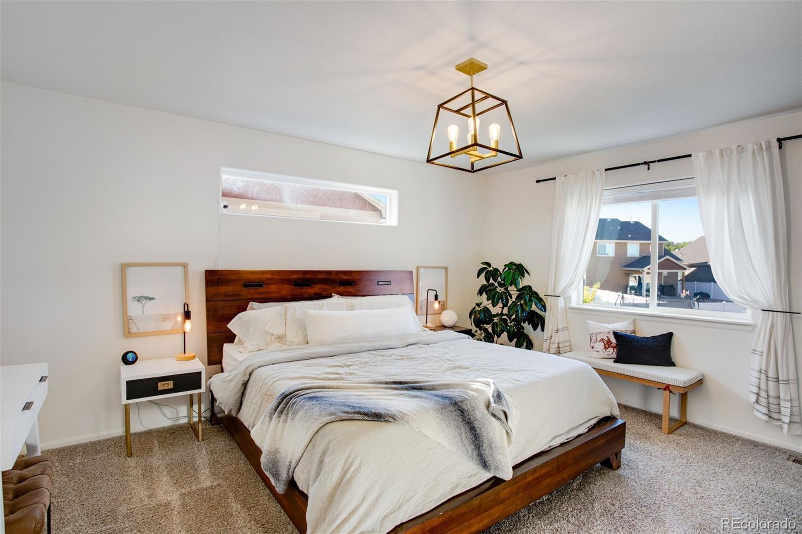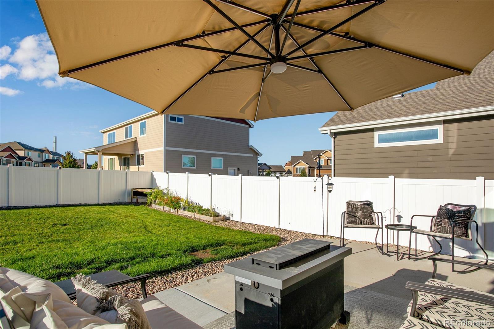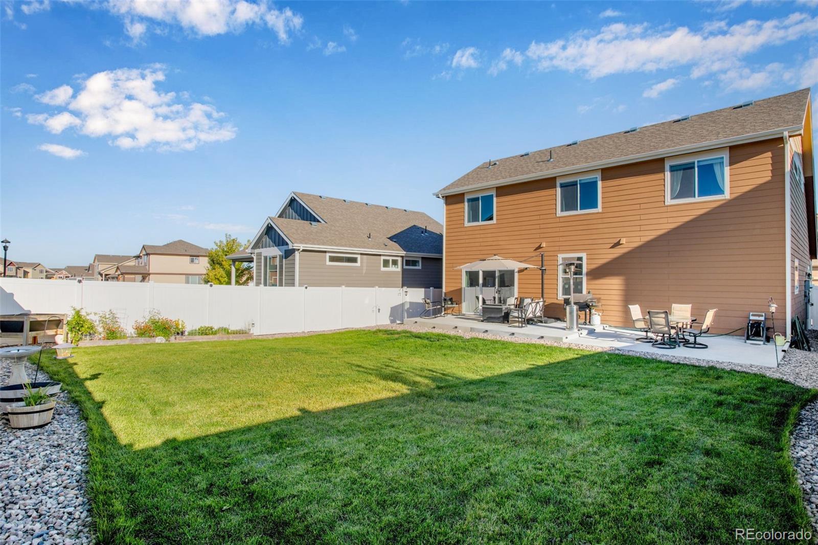 Elegant living in this better than new home with thoughtful upgrades included throughout. This home has 3 large bedrooms and 3 well-appointed bathrooms, the layout is perfect for entertaining and quiet nights in. Recent upgrades elevate every room: upgraded wood-style flooring, carpet, extended patio, plus all-new light fixtures, custom shelving, ceiling fans, and window coverings. The windows throughout bring in all the natural light you could want and create opportunity for soaking in Colorado's changing seasons. Downstairs, the un-finished basement is ready for your improvement. Additional highlights include a tandem 3-car garage and landscaping that offers beauty and convenience without too much effort. Come see what the neighborhood has to offer with surrounding conveniences, parks, pool, and more! Whether you're gathering with friends or finding your own quiet corner, this home is for you!