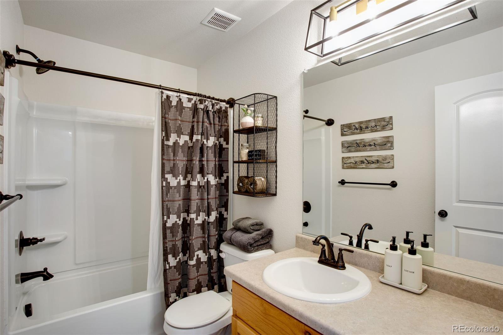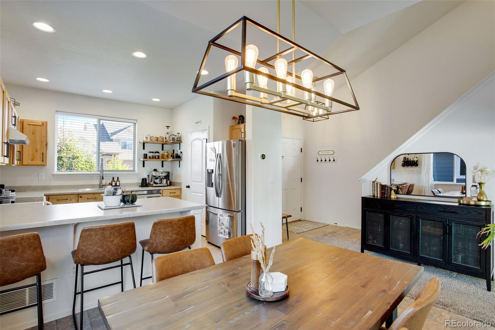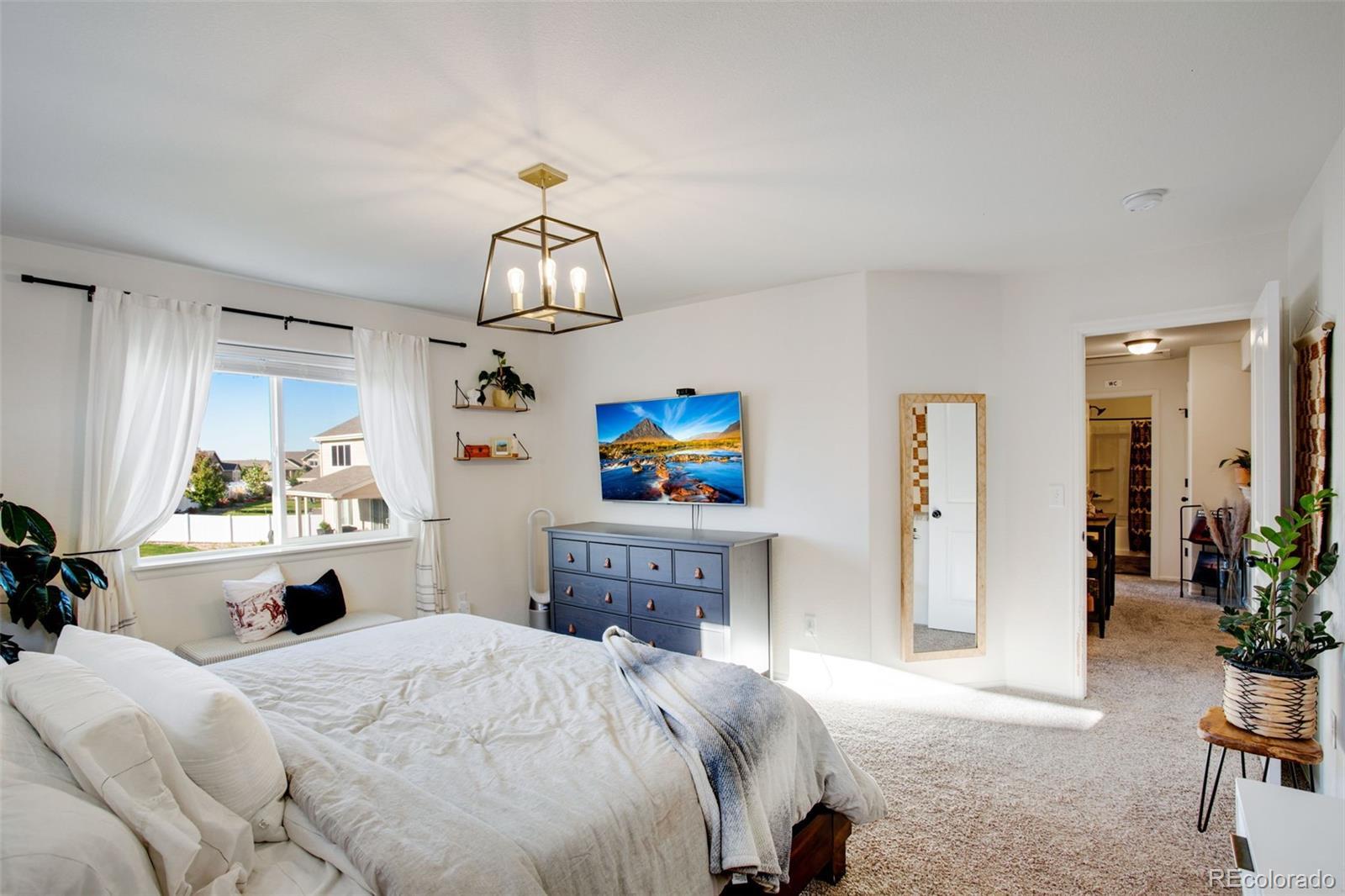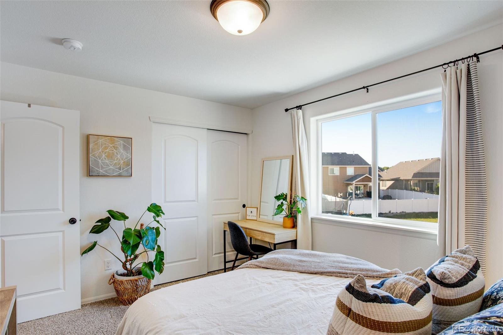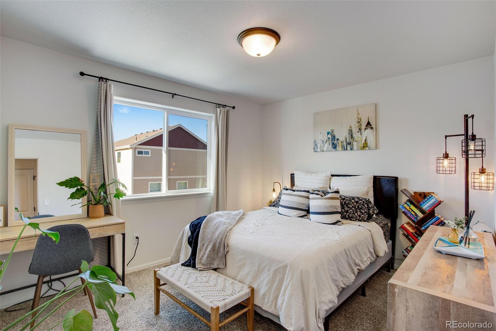 Elegant living in this better than new home with thoughtful upgrades included throughout. This home has 3 large bedrooms and 3 well-appointed bathrooms, the layout is perfect for entertaining and quiet nights in. Recent upgrades elevate every room: upgraded wood-style flooring, carpet, extended patio, plus all-new light fixtures, custom shelving, ceiling fans, and window coverings. The windows throughout bring in all the natural light you could want and create opportunity for soaking in Colorado's changing seasons. Downstairs, the un-finished basement is ready for your improvement. Additional highlights include a tandem 3-car garage and landscaping that offers beauty and convenience without too much effort. Come see what the neighborhood has to offer with surrounding conveniences, parks, pool, and more! Whether you're gathering with friends or finding your own quiet corner, this home is for you!