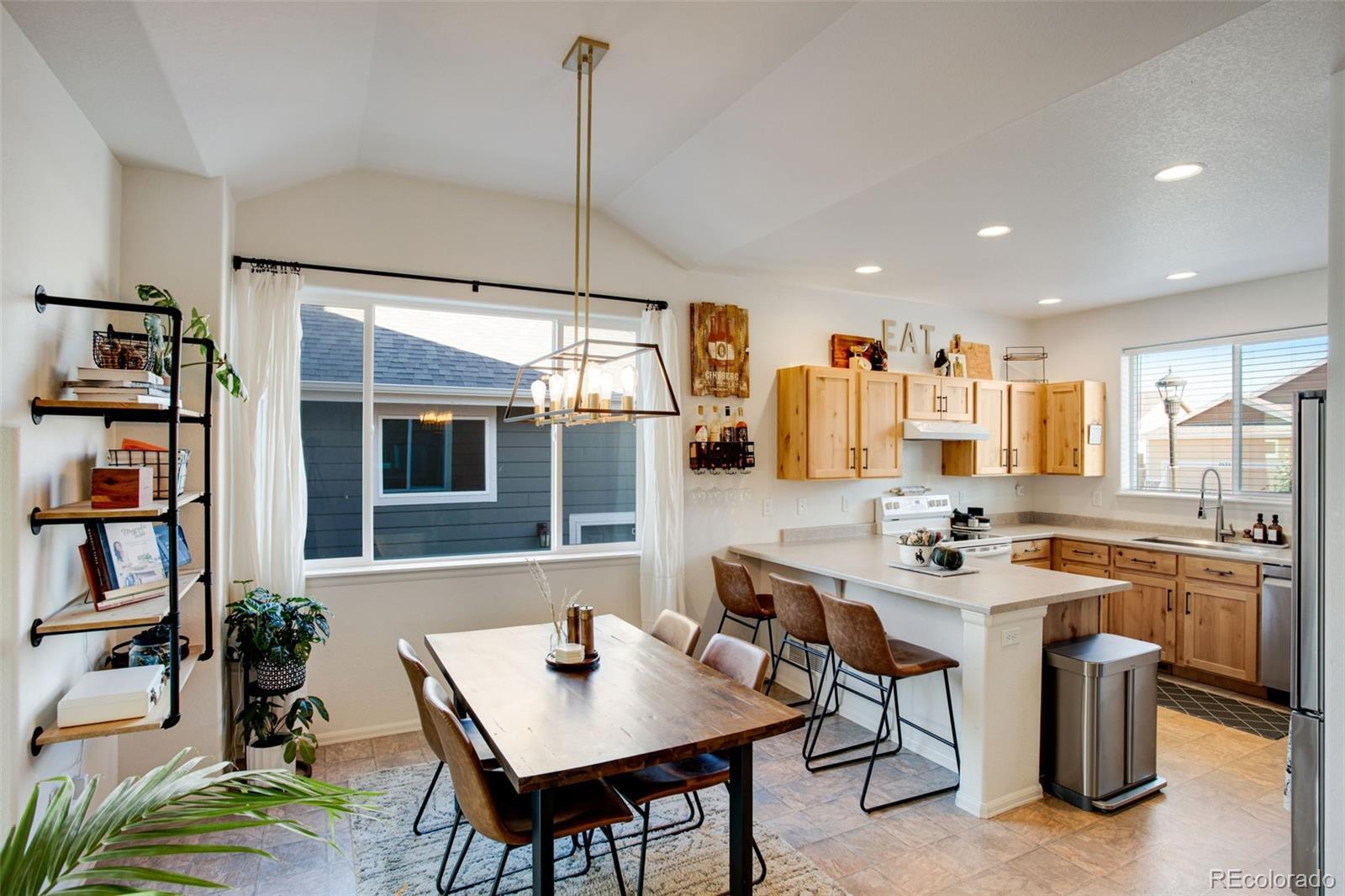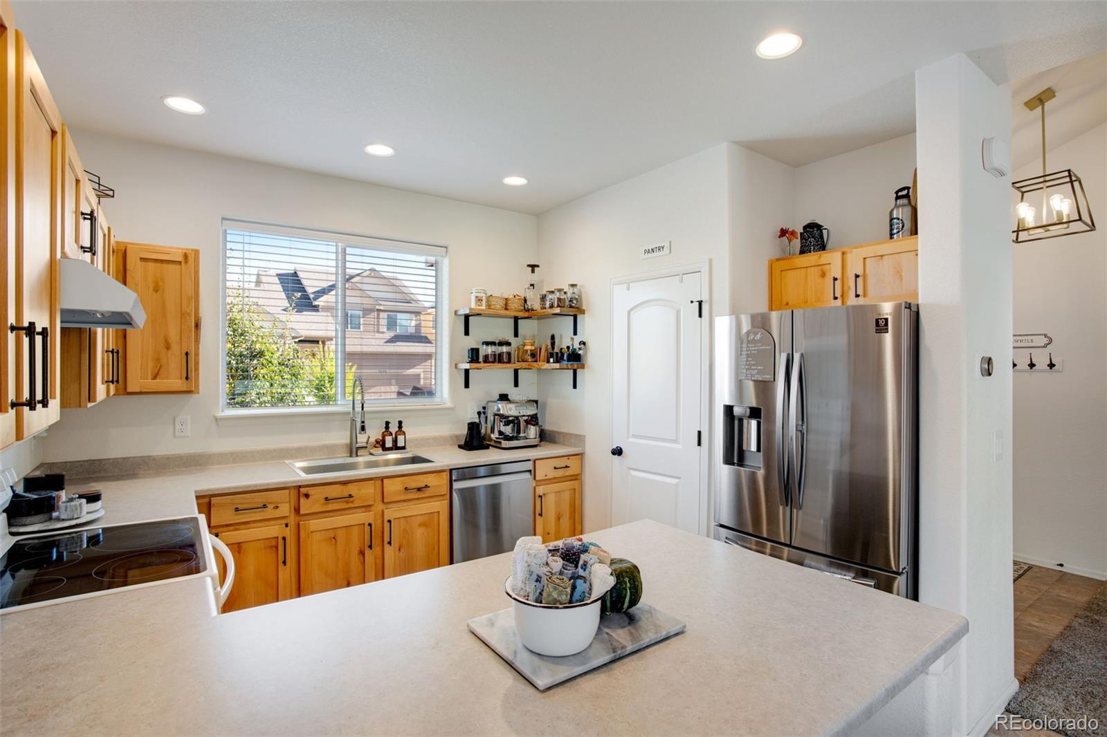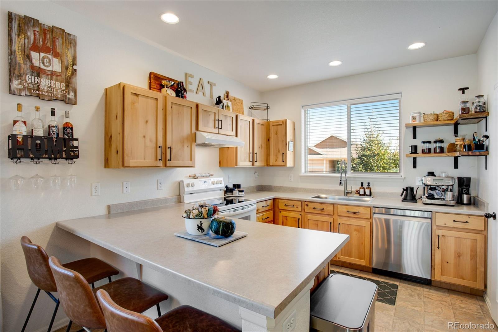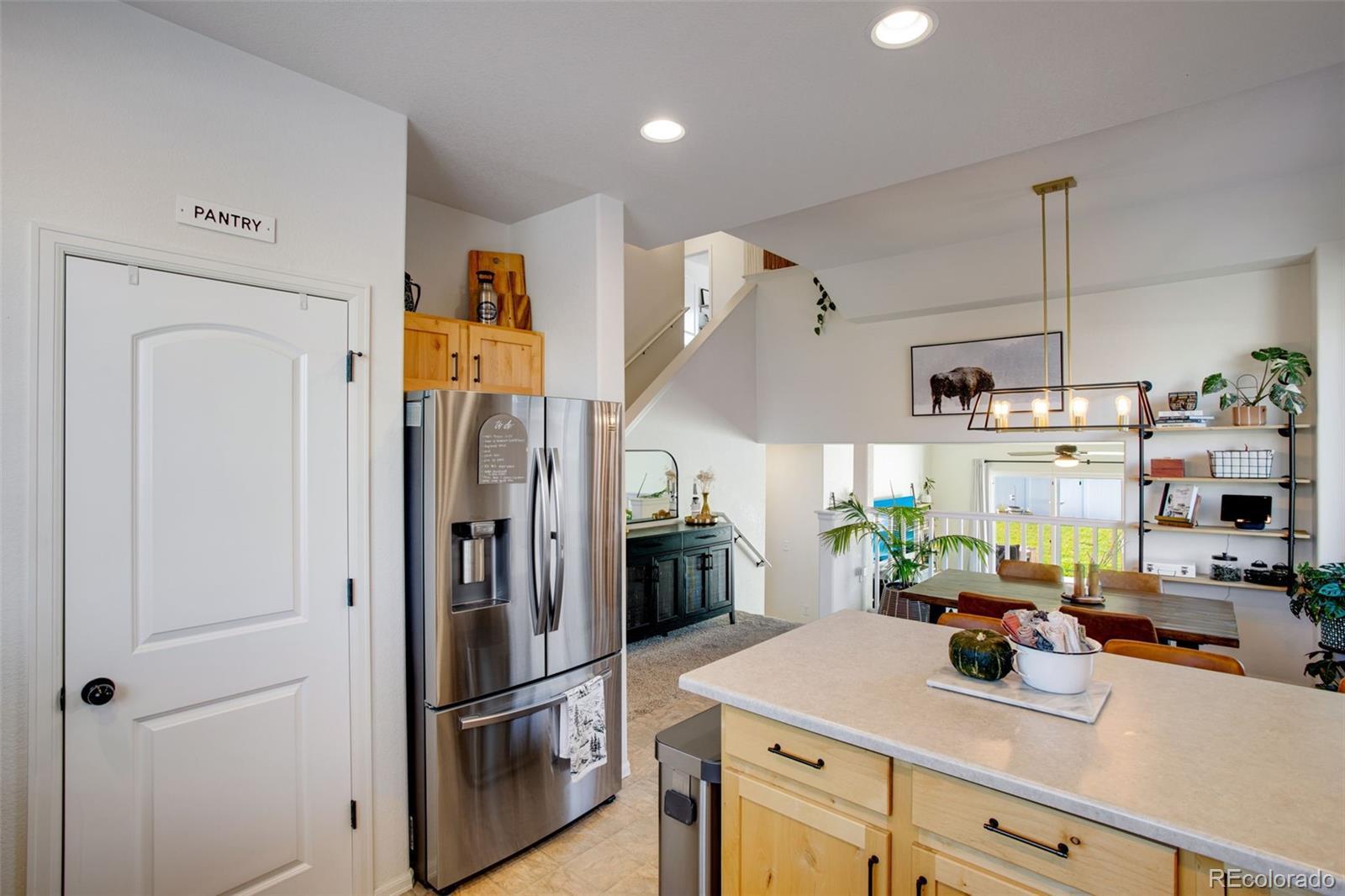 Elegant living in this better than new home with thoughtful upgrades included throughout. This home has 3 large bedrooms and 3 well-appointed bathrooms, the layout is perfect for entertaining and quiet nights in. Recent upgrades elevate every room: upgraded wood-style flooring, carpet, extended patio, plus all-new light fixtures, custom shelving, ceiling fans, and window coverings. The windows throughout bring in all the natural light you could want and create opportunity for soaking in Colorado's changing seasons. Downstairs, the un-finished basement is ready for your improvement. Additional highlights include a tandem 3-car garage and landscaping that offers beauty and convenience without too much effort. Come see what the neighborhood has to offer with surrounding conveniences, parks, pool, and more! Whether you're gathering with friends or finding your own quiet corner, this home is for you!