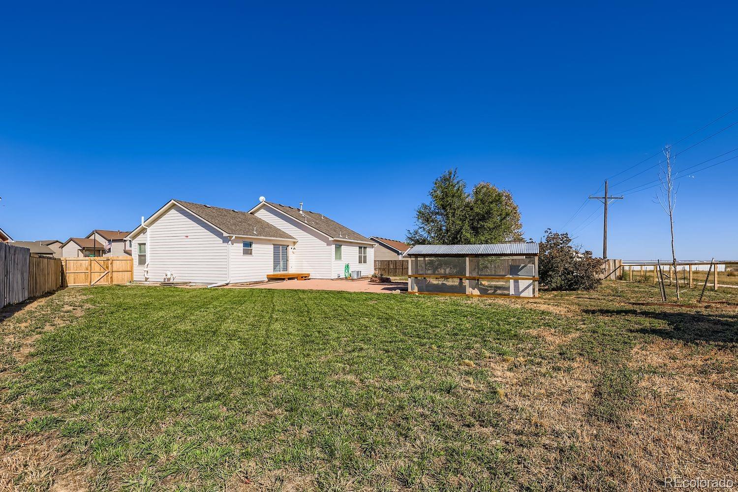 Welcome to this charming 3 bedroom, 2 bathroom ranch-style home located in the heart of Keenesburg. Featuring 1,208 Square Feet of stylish living space on the main floor- this home offers an open and functional layout designed for easy living. The spacious living area flows into a well-appointed kitchen and dining space- ideal for relaxing or entertaining. The primary suite offers a private retreat with an en-suite bathroom and generous closet space. Two additional bedrooms provide flexibility for guests, a home office, or growing families. The unfinished basement offers an additional 1,208 Square Feet of living space for you to finish to your liking. The oversized 3-car garage offers abundant storage space for tools, cars and projects. An additional concrete pad has been poured on the East side of the home for RV parking Step outside to the large, fully fenced backyard. Offering plenty of space to relax on the patio by the fire pit with friends and family. This home backs to Open Space, so you have beautiful views of the open field behind you. The backyard offers a 8x12 shed for additional storage space, and a chicken coop to raise your own chickens! The town of Keenesburg will allow up to four chicken hens- no roosters. This home has been well maintained over the years- most recently Interior paint, carpet, LVP floors, new tile flooring in bathrooms all done in 2020. All new windows installed in 2021. A new furnace was installed in 2022, exterior paint done in 2024 and a new water heater installed 2025 Easy access to I-76 Listing agent is related to seller
