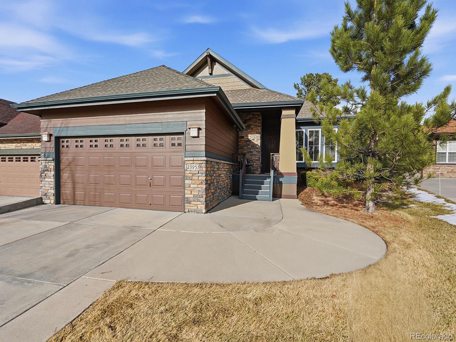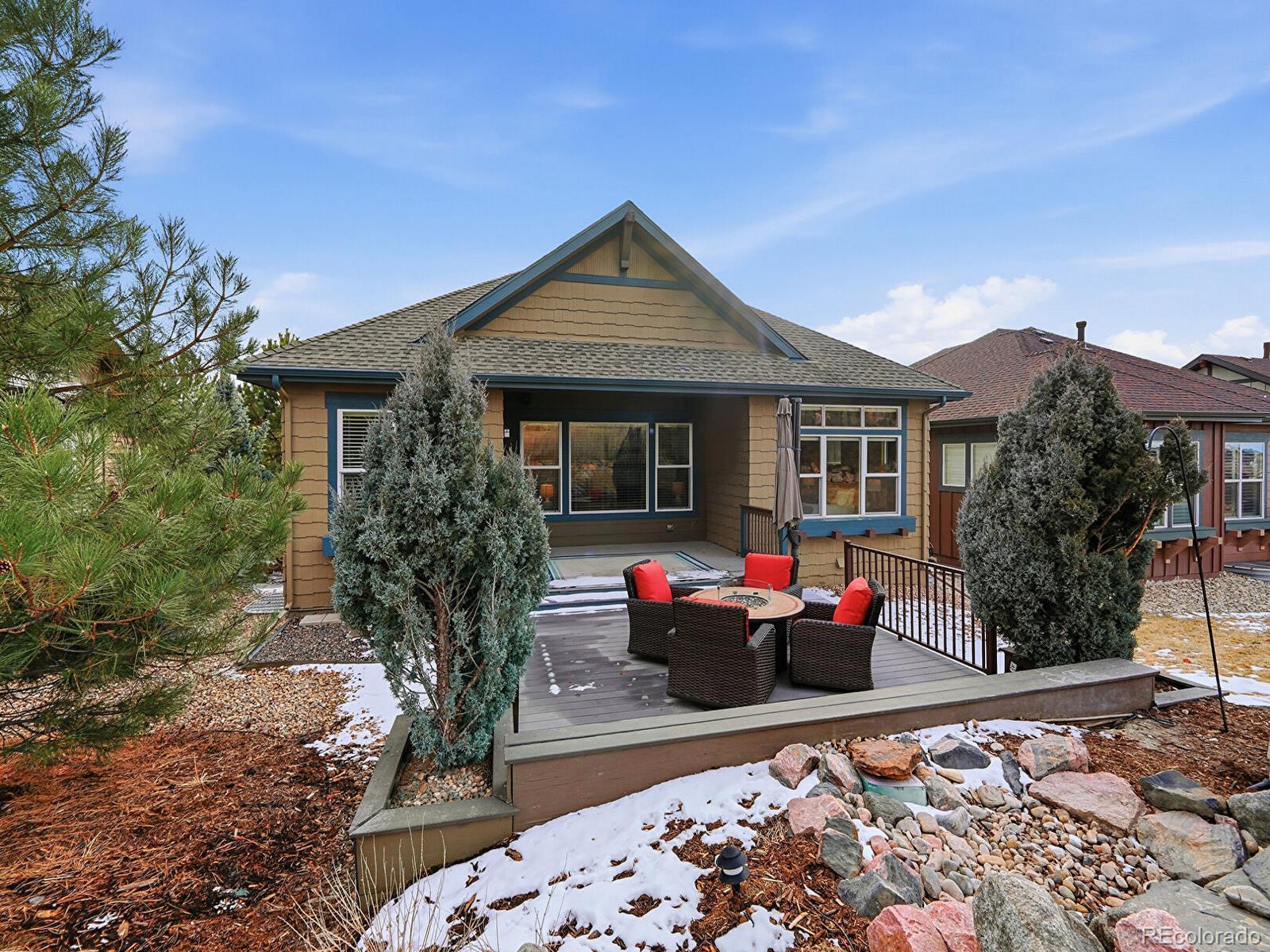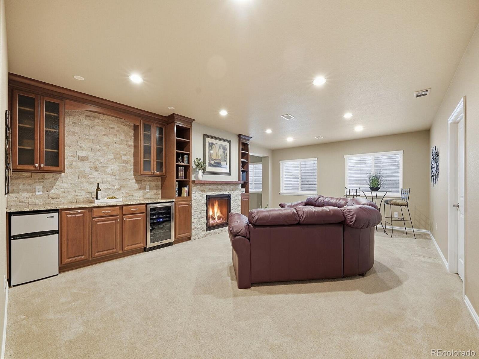 **OPEN HOUSE!! Sun 2/8, 11-1** Supremely private Tallyn’s Reach ranch with a finished basement, tucked into a quiet cul-de-sac backing to private hill space! Made for effortless main-level living, enter this 3-bed, 3-bath gem through a welcoming covered front porch into high ceilings and bright windows that span the main floor. Just off the foyer sits a flex space, currently a home office, that could easily become a formal dining room, playroom, or second living space. Enjoy movie nights or game days in the living area, boasting a cozy gas fireplace and dramatic picture window with backyard views. Make meals or memories in the adjacent kitchen, featuring granite countertops, stainless steel appliances, alongside a generous island with bar-height seating, dedicated pantry, and window-wrapped breakfast nook with deck access. Unwind in the private, main-level primary suite, where a full wall of windows and 5-piece en suite bath create a spacious retreat. The five-piece en suite includes a seated vanity, deep soaking tub, standing shower, and a walk-in closet with built-ins. A nearby main-level powder bath and a laundry/mudroom with cabinetry add everyday practicality. Downstairs, the finished basement is ready for memorable nights or relaxed weekends, complete with a rec room, finished bar, wine fridge, mini fridge, cabinetry, and a second gas fireplace. Two additional bedrooms, a full bath, and generous unfinished storage offer room to grow, host, or create. In the backyard, a covered patio with built-in sound system and an extended deck back to a gentle hillside, where a cascading water feature and local wildlife sightings create a space that feels quiet, green, and wonderfully private. Whether you’re in the mood for spotting owls and deer in the backyard or enjoying amenities right in the heart of Tallyn’s Reach, this home is set just minutes from Red-Tailed Hawk Park, Southlands Mall, and the Aurora Reservoir.